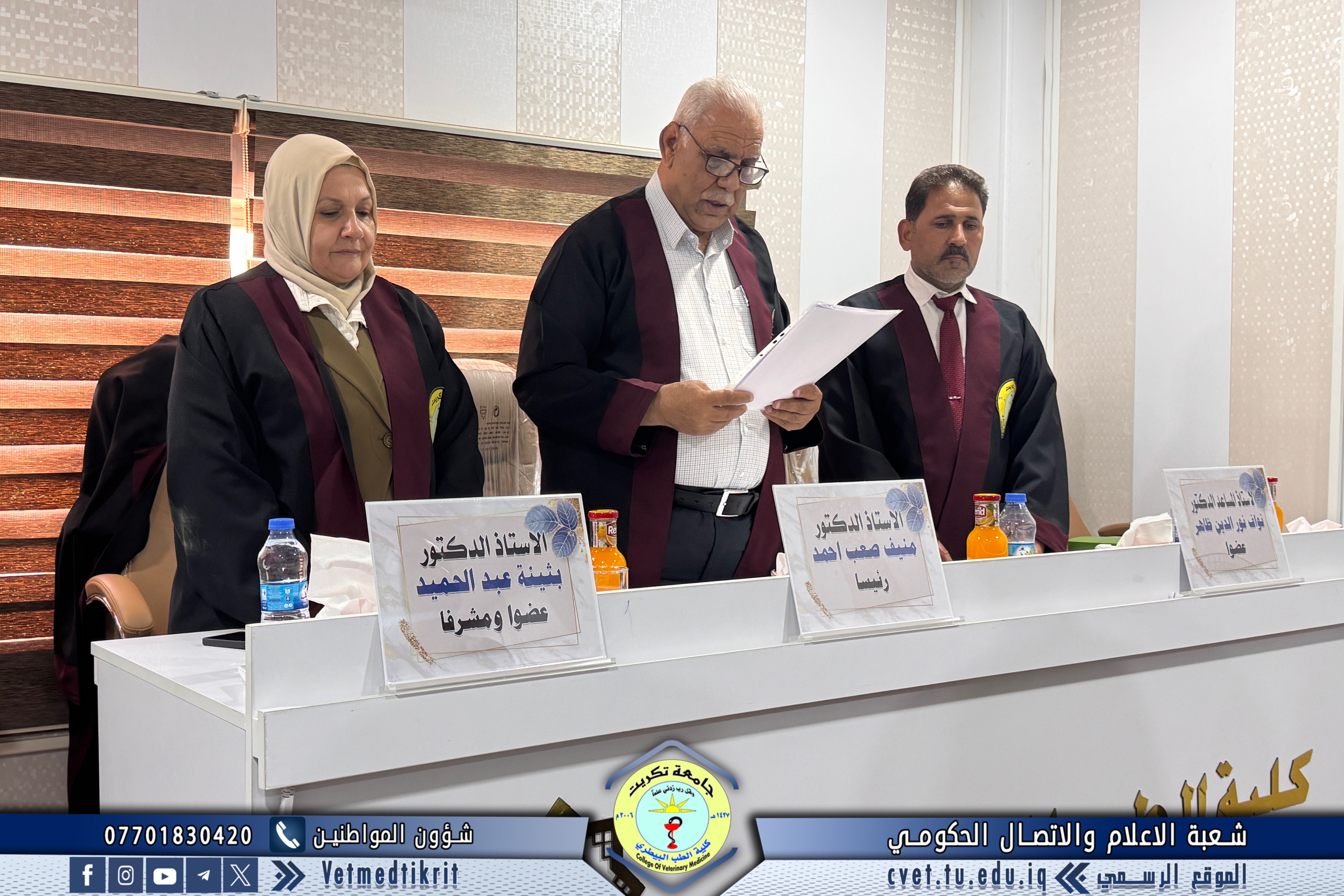 - الاستاذ الدكتور منيف صعب احمد / تخصص فسلجة حيوان / جامعة تكريت - كلية الطب البيطري / رئيسا