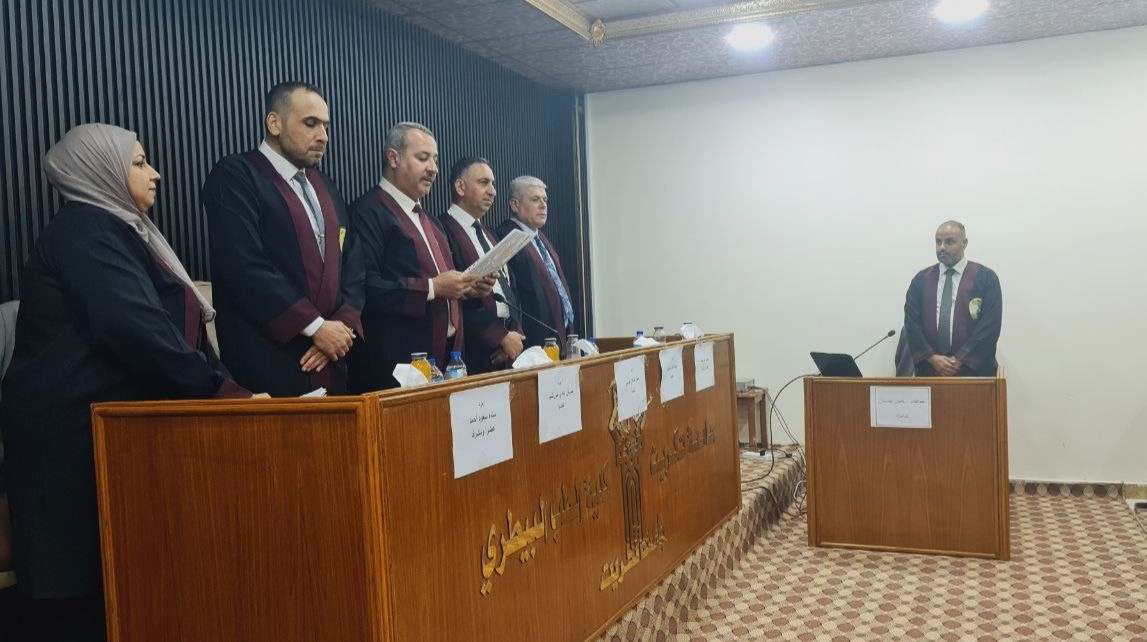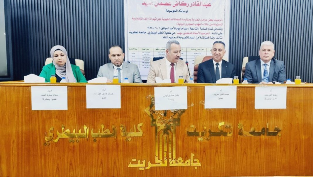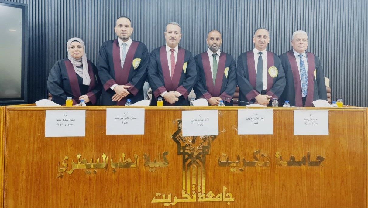 تم بعون الله تعالى في كلية الطب البيطري في جامعة تكريت مناقشة رسالة الماجستير الموسومة (تأثير مستخلص الملفوف الأبيض على الغدة الدرقية في ذكور الجرذان البالغة (دراسة نسيجية)) للطالبة (فريال احمد حسين) في تخصص (الانسجة البيطرية). حيث تألفت لجنة المناقشة من كل من: