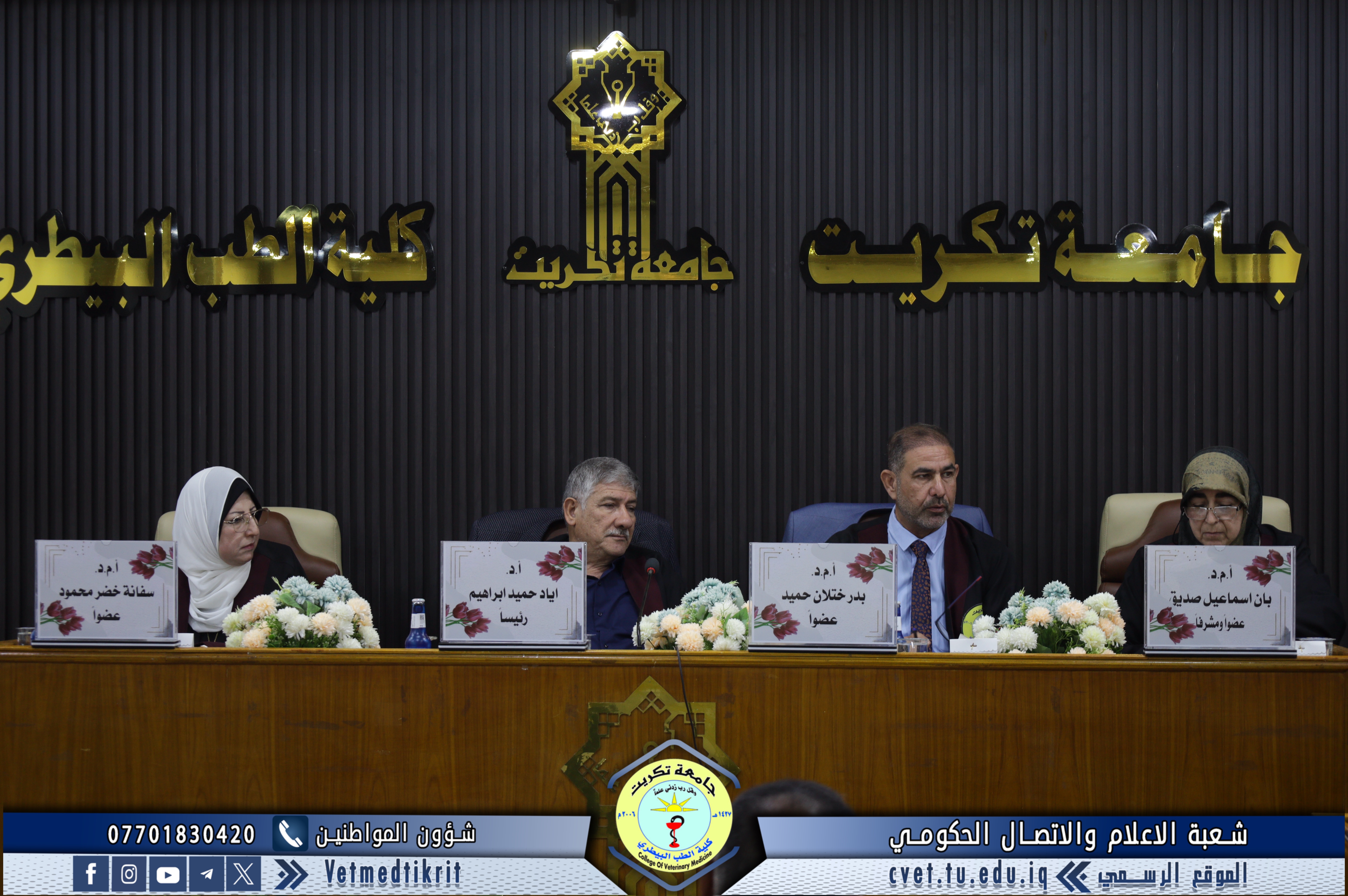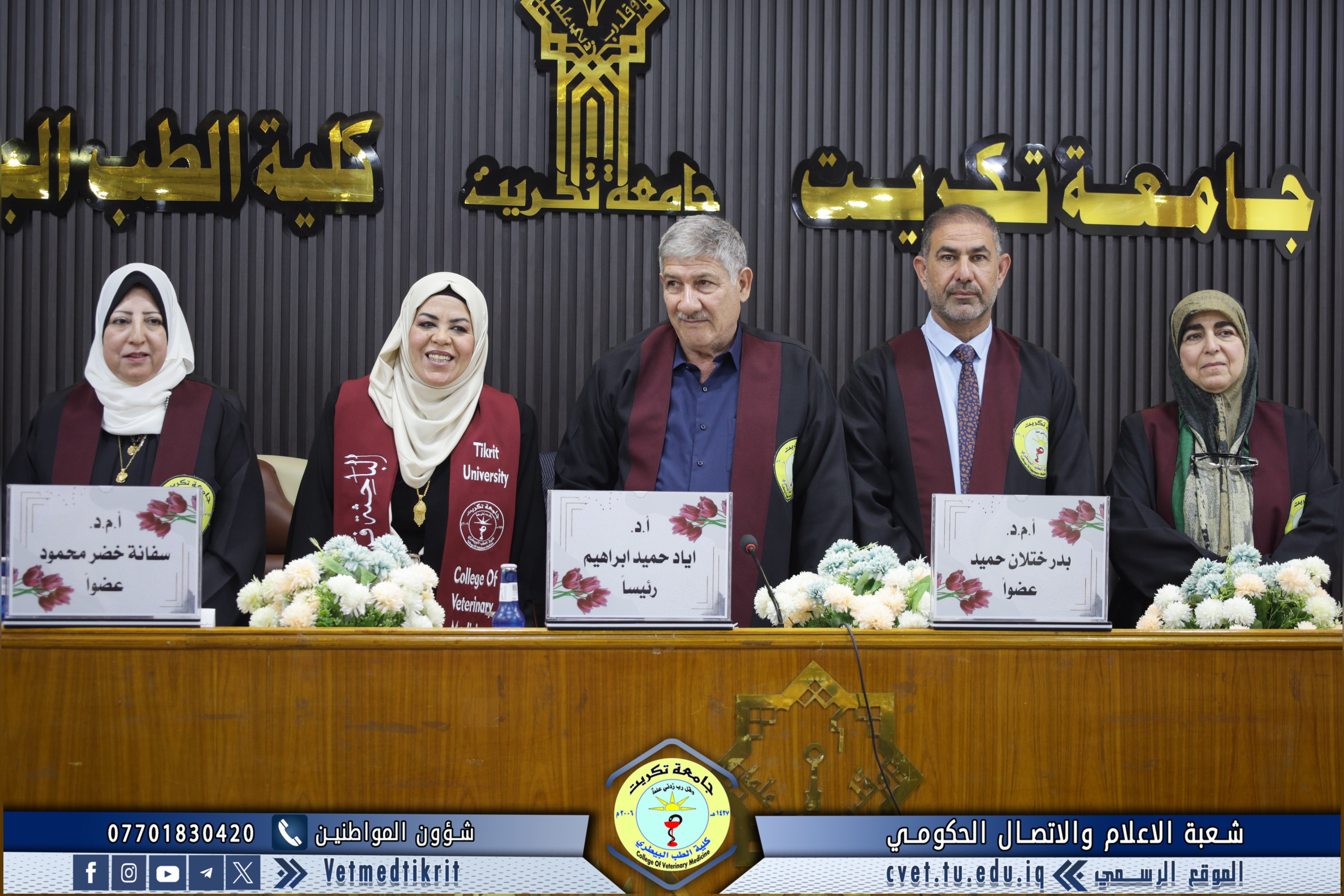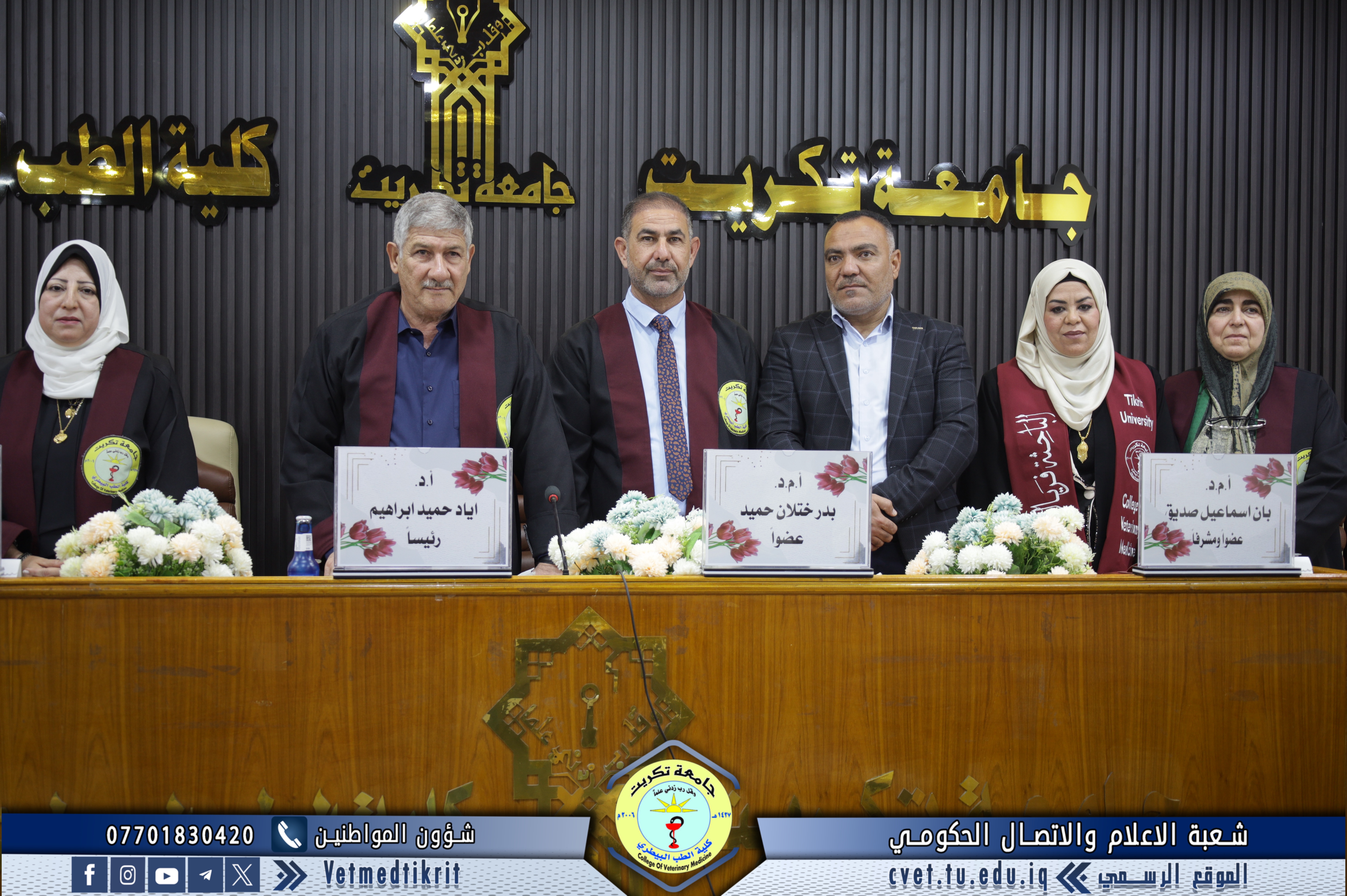 - الاستاذ الدكتور اياد حميد ابراهيم / تخصص تشريح / جامعة تكريت - كلية الطب البيطري / رئيسا