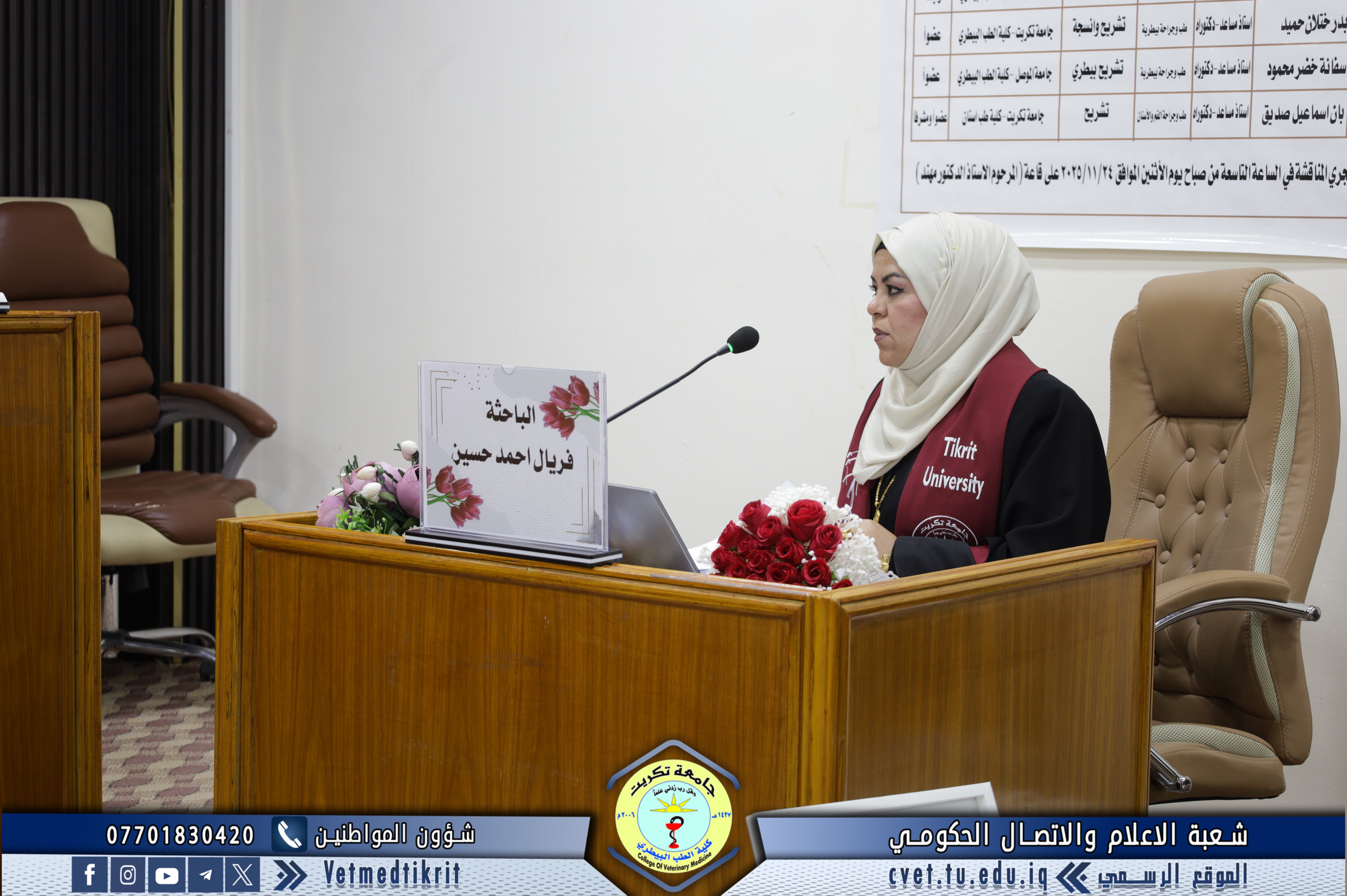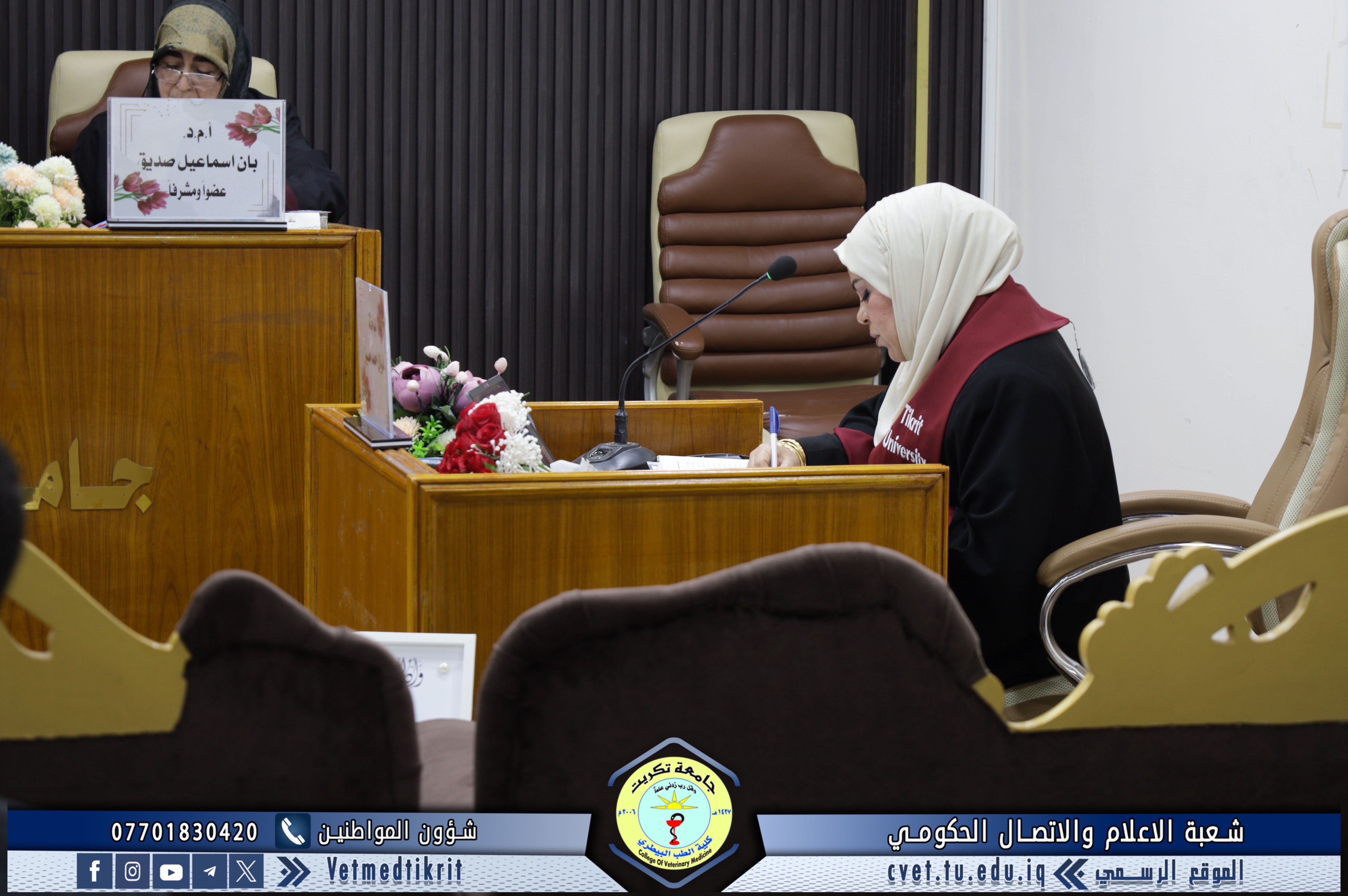 وحضر المناقشة التي اقيمت على قاعة الدكتور مهند ماهر في كلية الطب البيطري عدد من السيدات والسادة اعضاء الكادر التدريسي وجمع من الطلبة.
