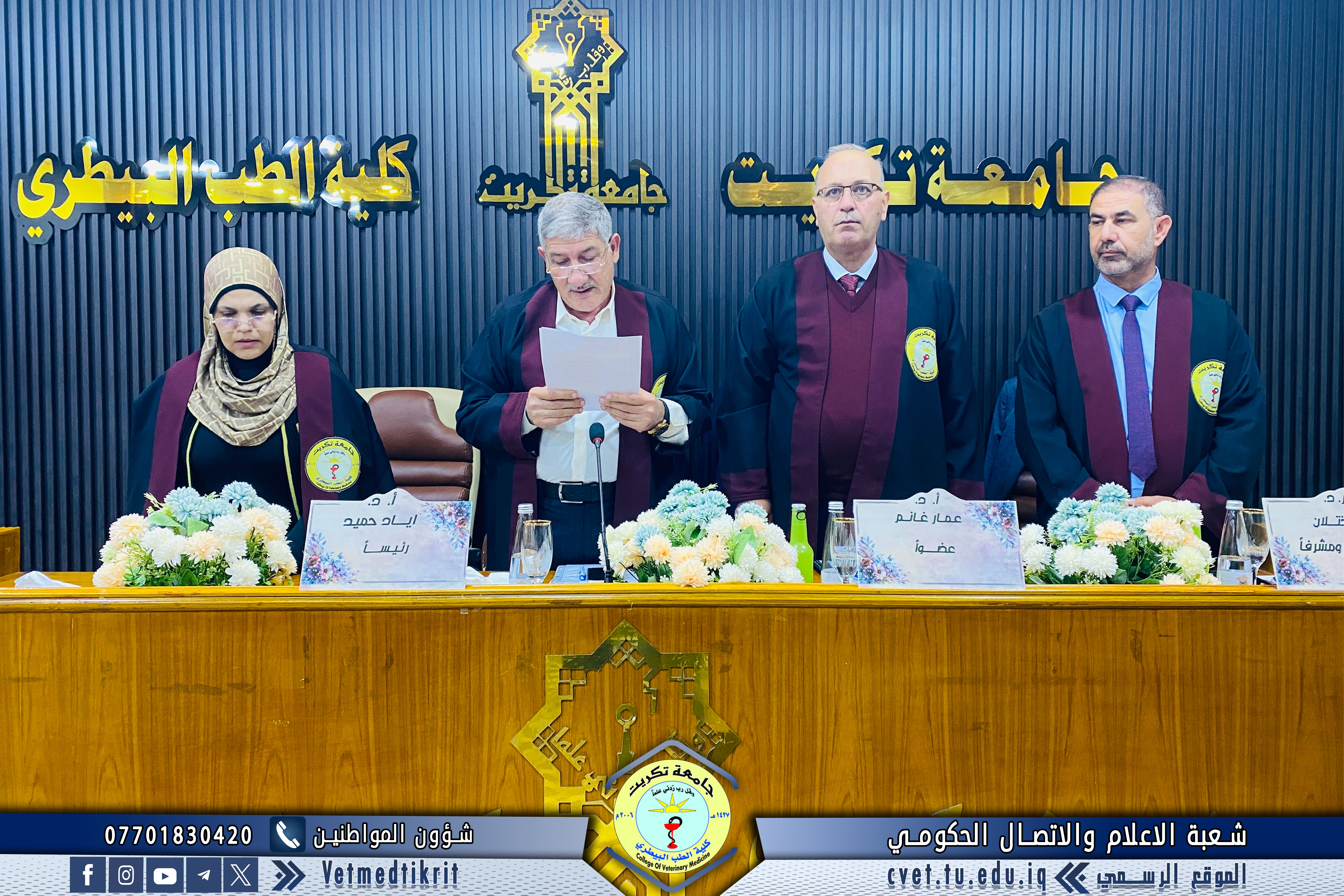 - الاستاذ الدكتور اياد حميد ابراهيم / تخصص تشريح / جامعة تكريت - كلية الطب البيطري / رئيسا
