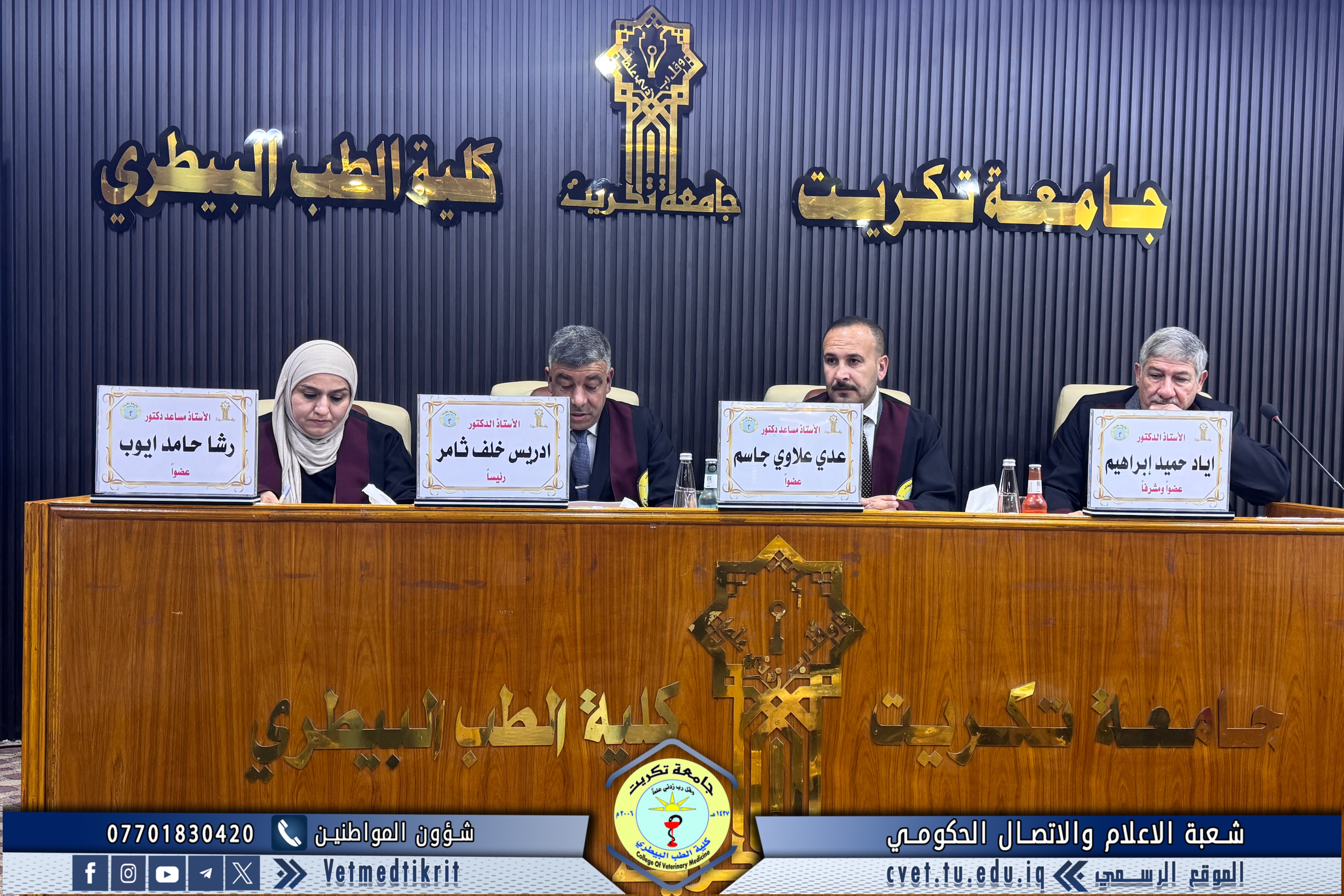 وحضر المناقشة التي اقيمت على قاعة الدكتور مهند ماهر في كلية الطب البيطري عدد من السيدات والسادة اعضاء الكادر التدريسي وجمع من الطلبة.