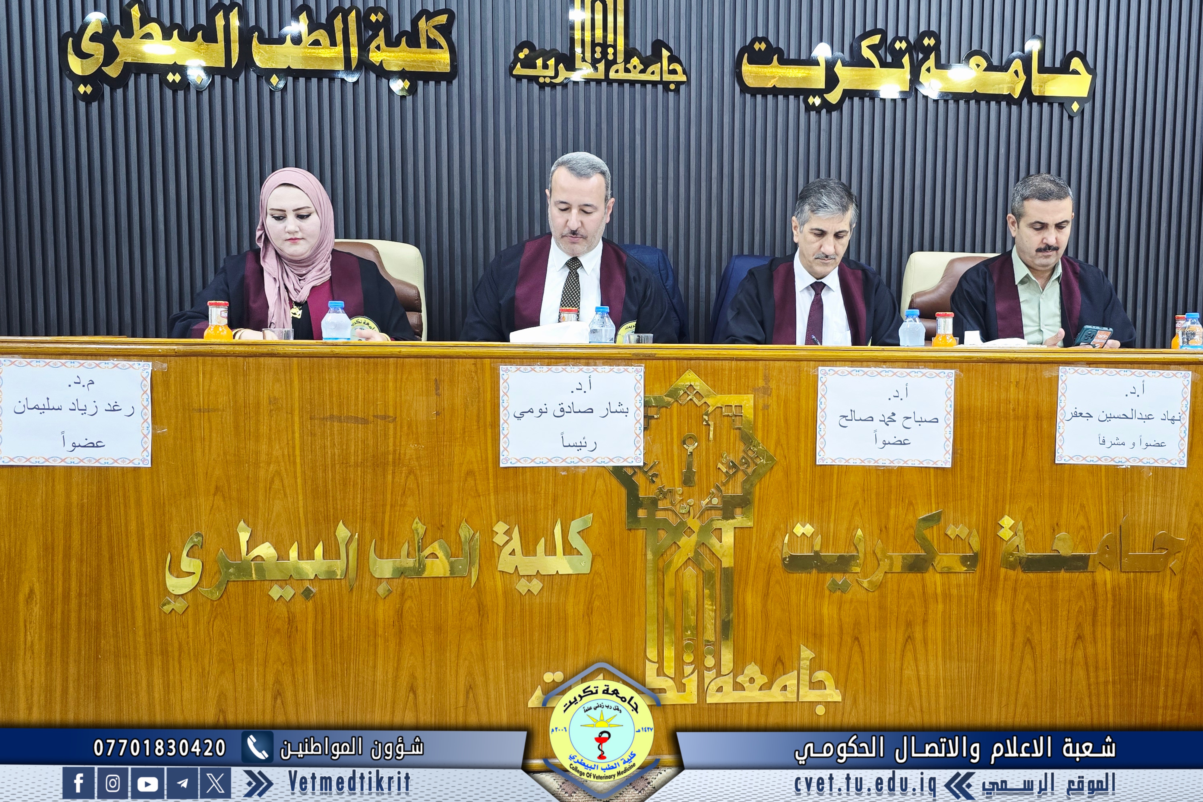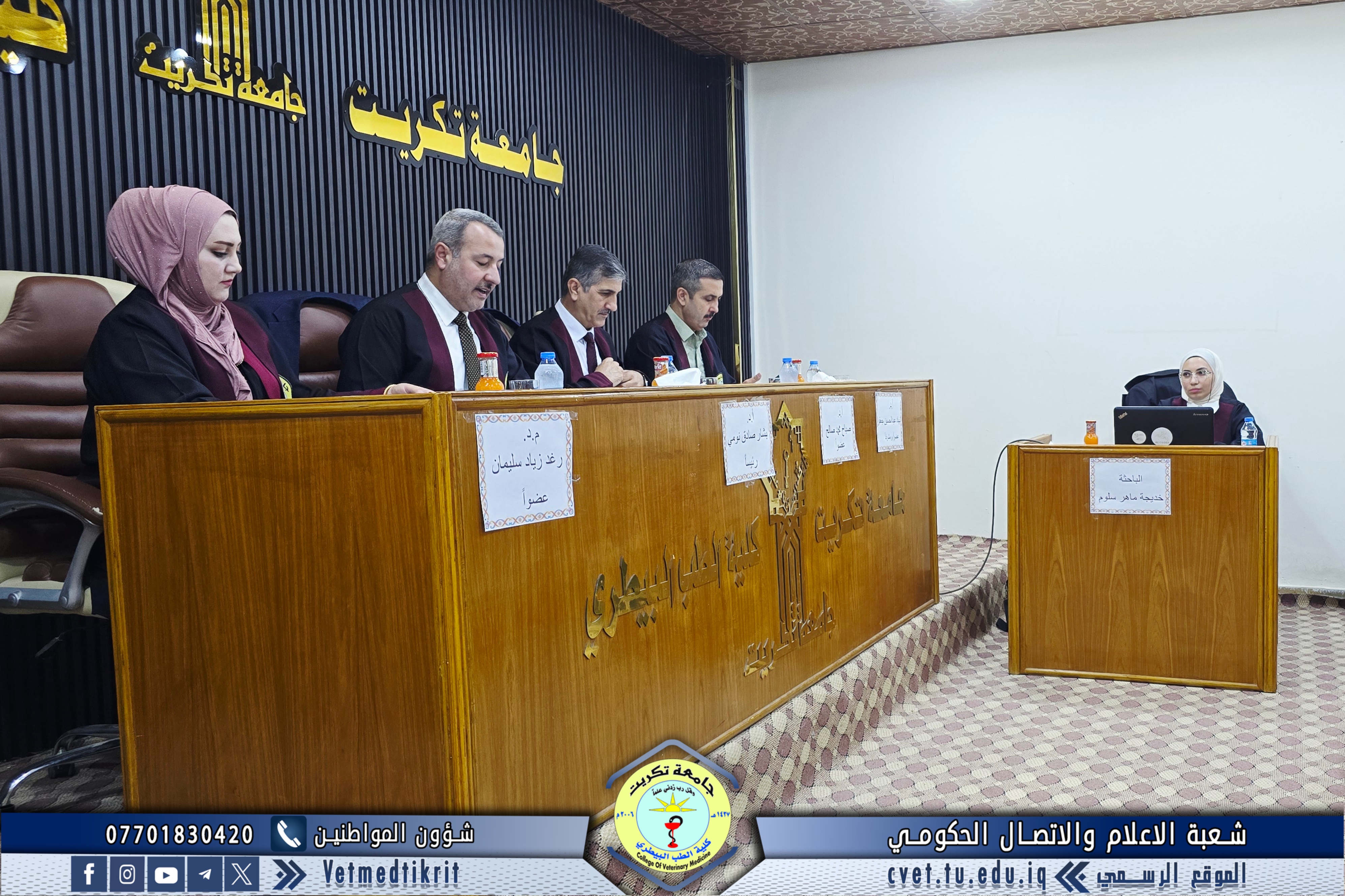 وحضر المناقشة التي اقيمت على قاعة د. مهند ماهر في كلية الطب البيطري عدد من السيدات والسادة اعضاء الكادر التدريسي وجمع من الطلبة.