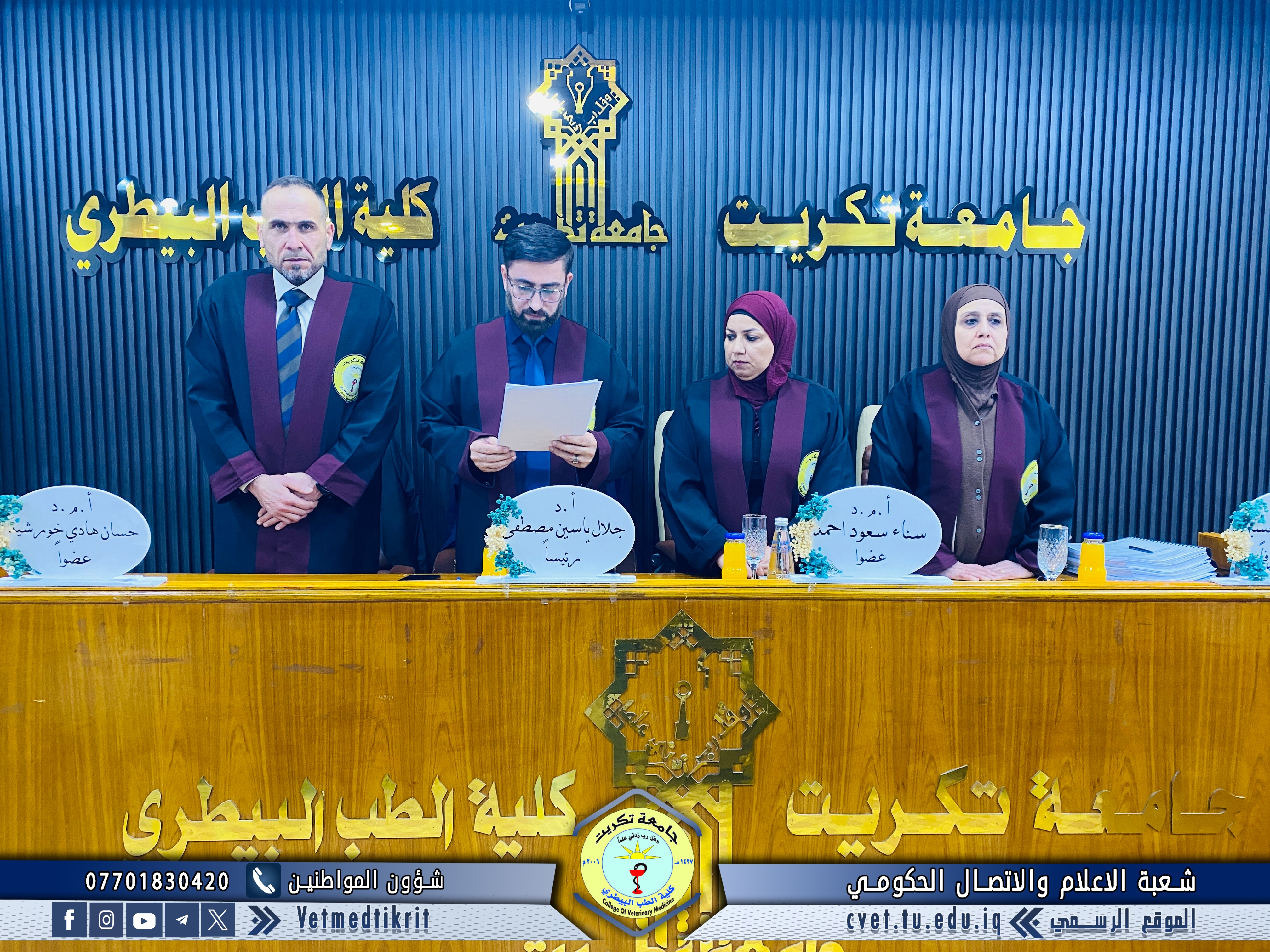 وحضر المناقشة التي اقيمت على قاعة الدكتور مهند ماهر في كلية الطب البيطري عدد من السيدات والسادة اعضاء الكادر التدريسي وجمع من الطلبة.
