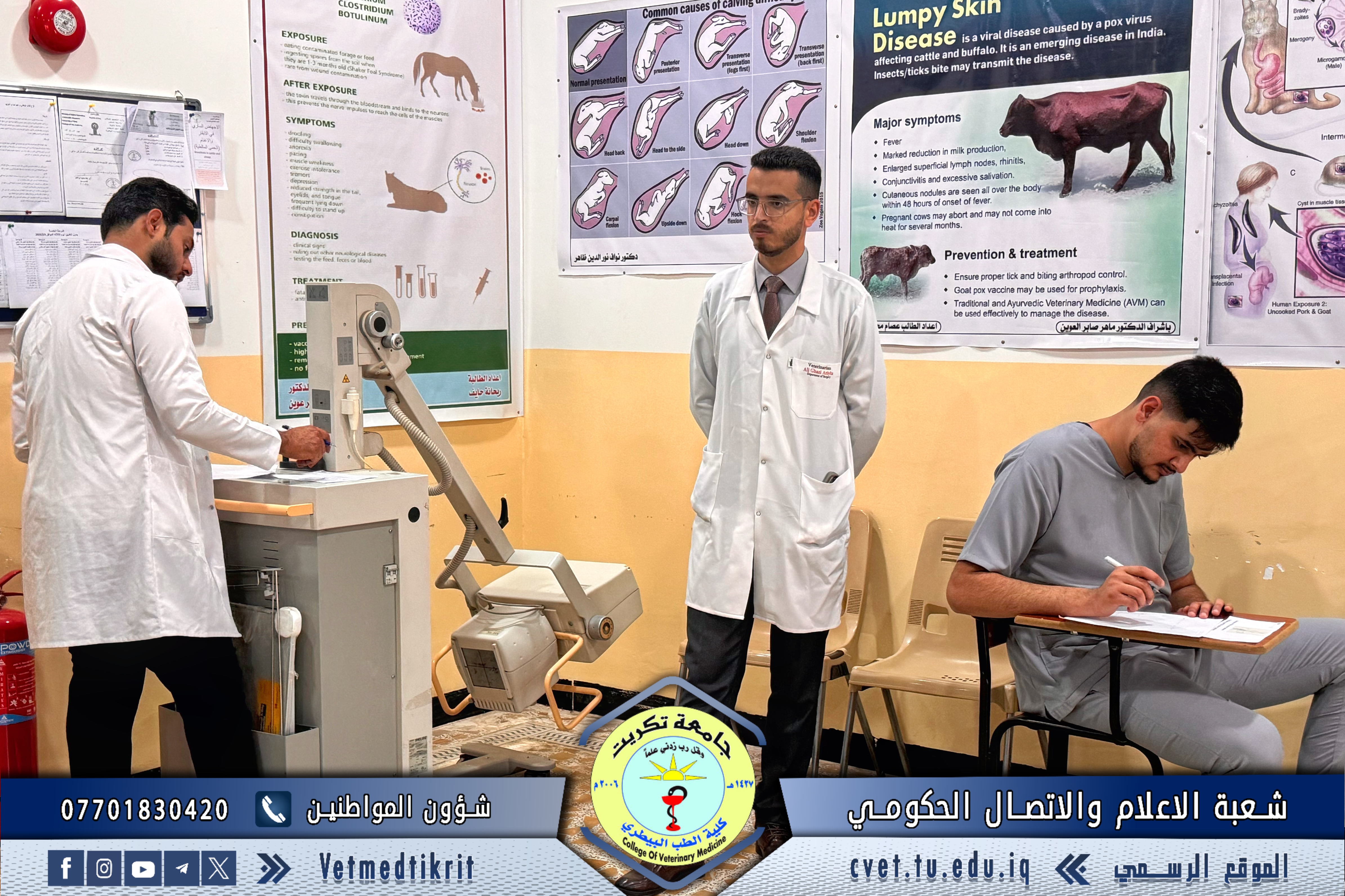 أجرت كلية الطب البيطري اليوم امتحانات مادة الجراحة العملية لطلبة المرحلة الرابعة، وذلك ضمن جدول الامتحانات العملية للفصل الدراسي الحالي. وأشرف على الامتحانات فريق من أساتذة فرع الطب الباطني والجراحة والتوليد، حيث تم اختبار مهارات الطلبة في مختلف الإجراءات الجراحية الأساسية وفق المنهج المقرر. جرت الامتحانات في مختبرات الكلية المجهزة بأحدث المعدات والأدوات الجراحية، مما أتاح للطلبة إظهار مهاراتهم العملية في ظروف مشابهة لبيئة العمل الحقيقية. أن هذه الامتحانات تأتي لتقييم قدرة الطلبة على تطبيق المعارف النظرية في الممارسة العملية، وهو ما يعد ركناً أساسياً في تكوين الطبيب البيطري المؤهل لمواجهة التحديات المهنية المستقبلية. وأبدى عدد من الطلبة ارتياحهم لسير الامتحانات وأشادوا بالتنظيم الجيد والإشراف المباشر من قبل الهيئة التدريسية، معربين عن أملهم في تحقيق نتائج متميزة تعكس جهودهم على مدار العام الدراسي.