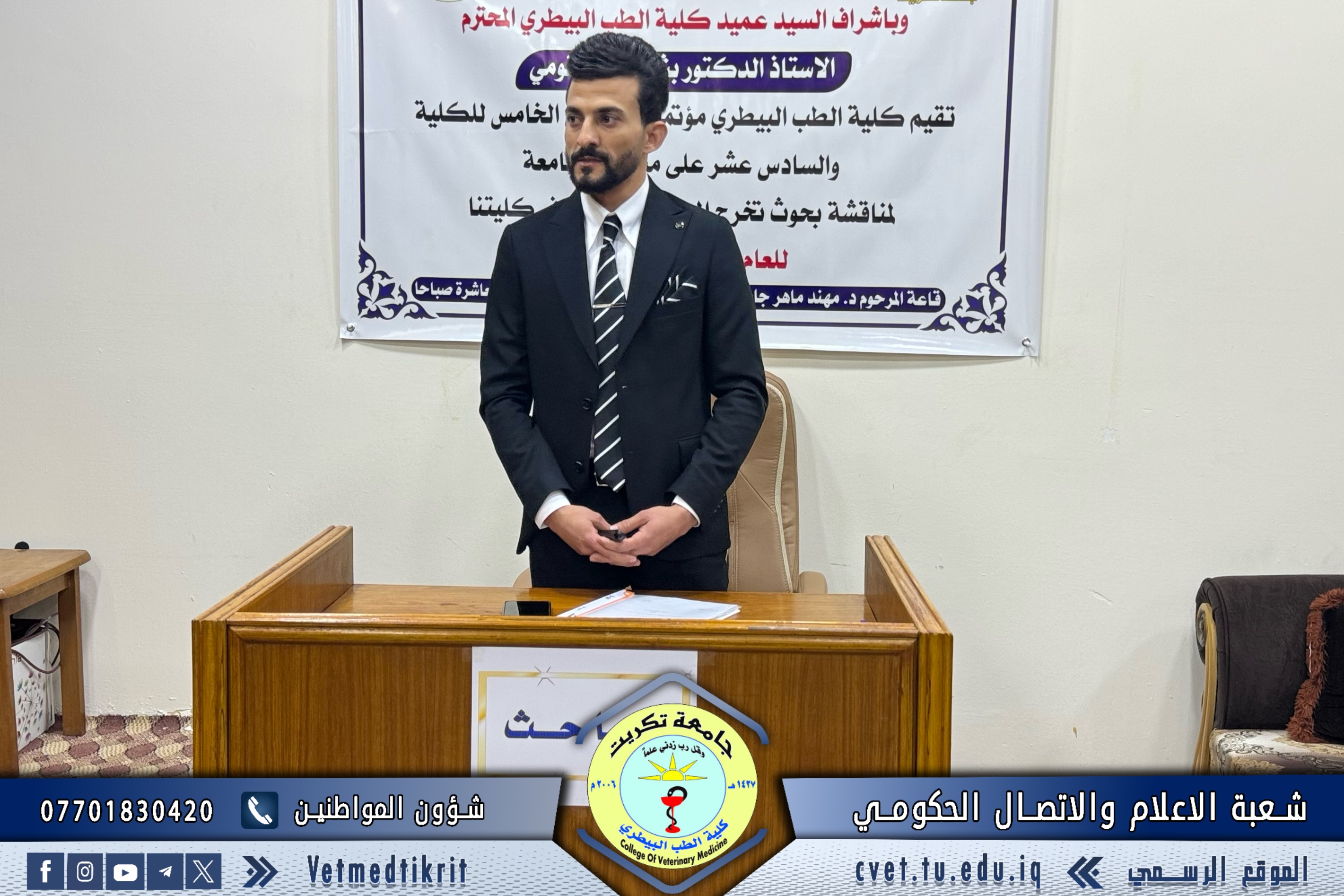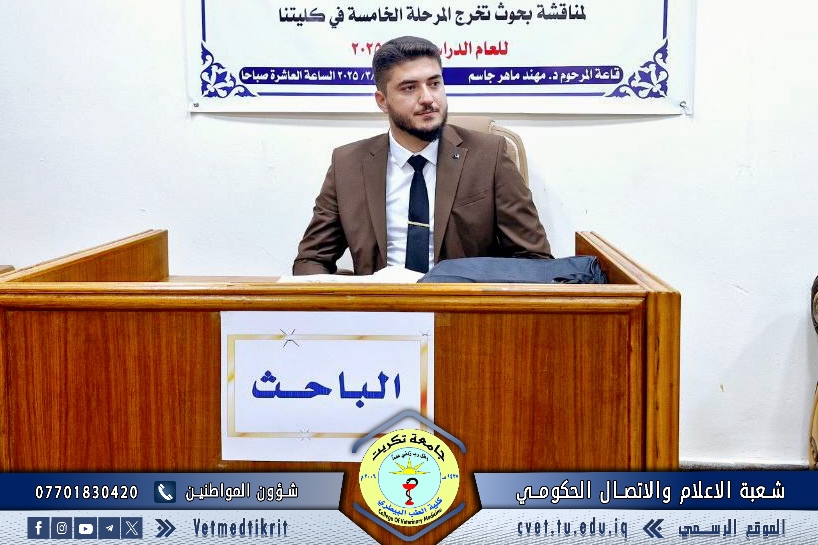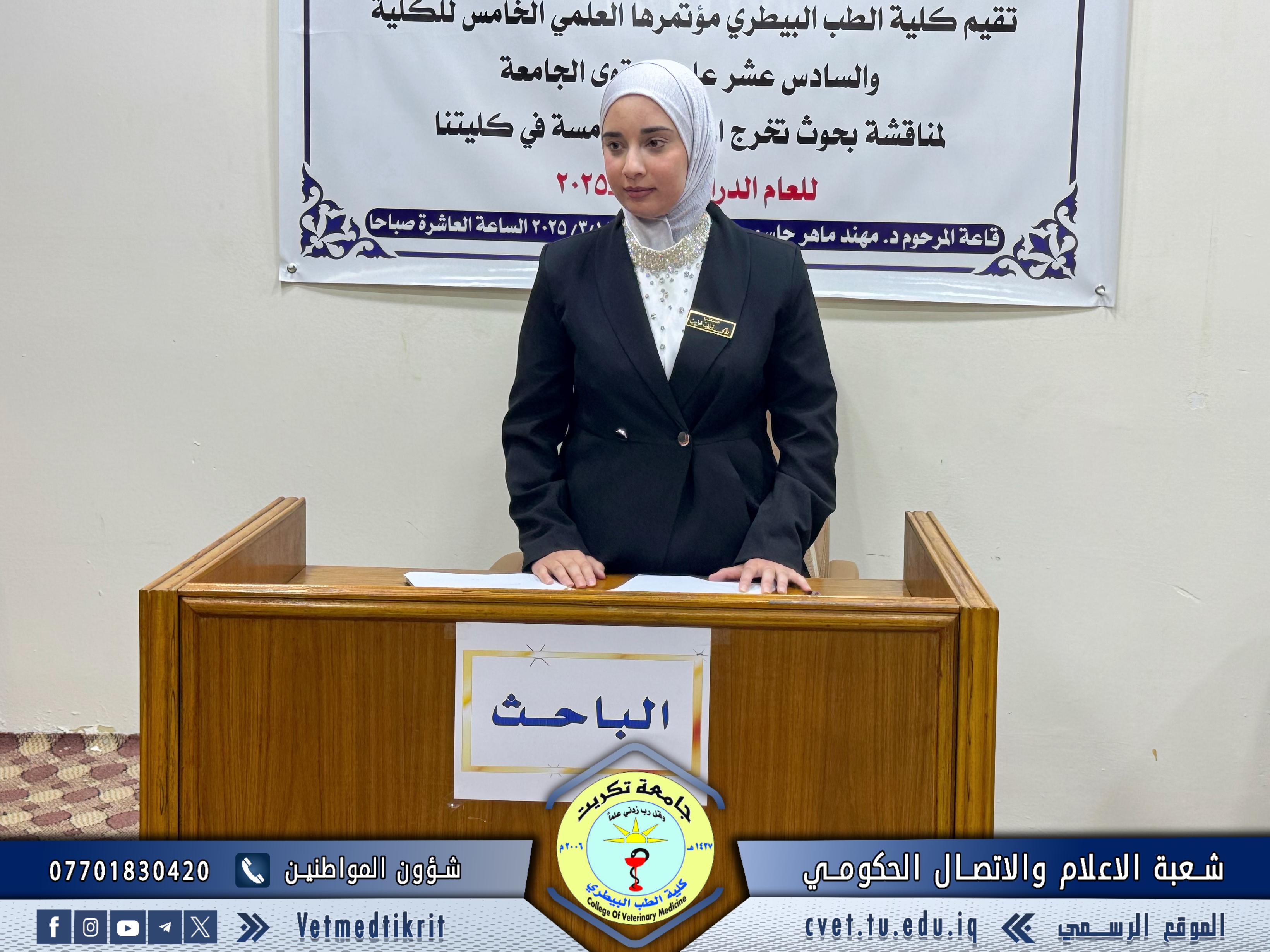 تغطية صورية لاعمال المؤتمر العلمي الخامس لكلية الطب البيطري والسادس عشر على مستوى جامعة تكريت لمناقشة بحوث تخرج الطلبة والذي اقيم على قاعة د. مهند ماهر (رحمه الله) للفترة 18 و 19/3/2025.