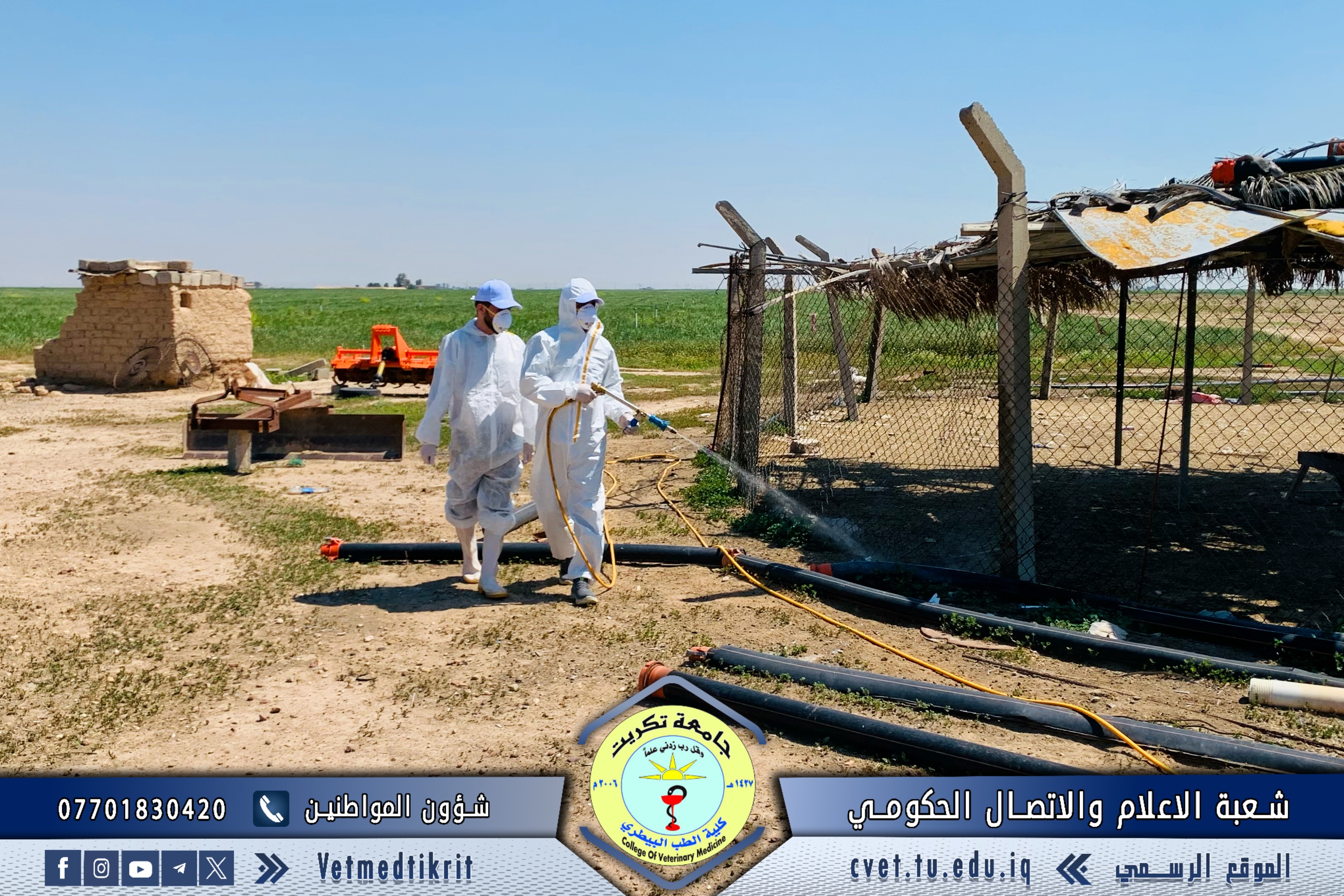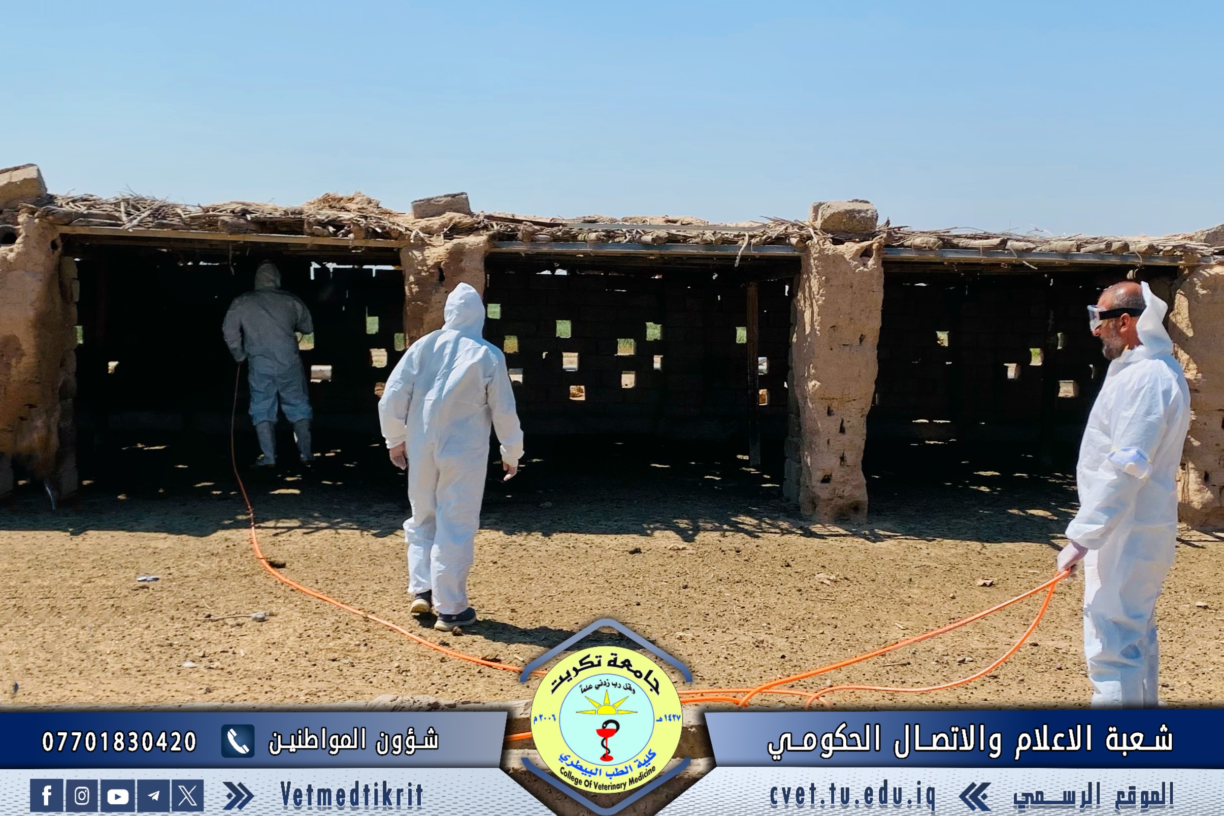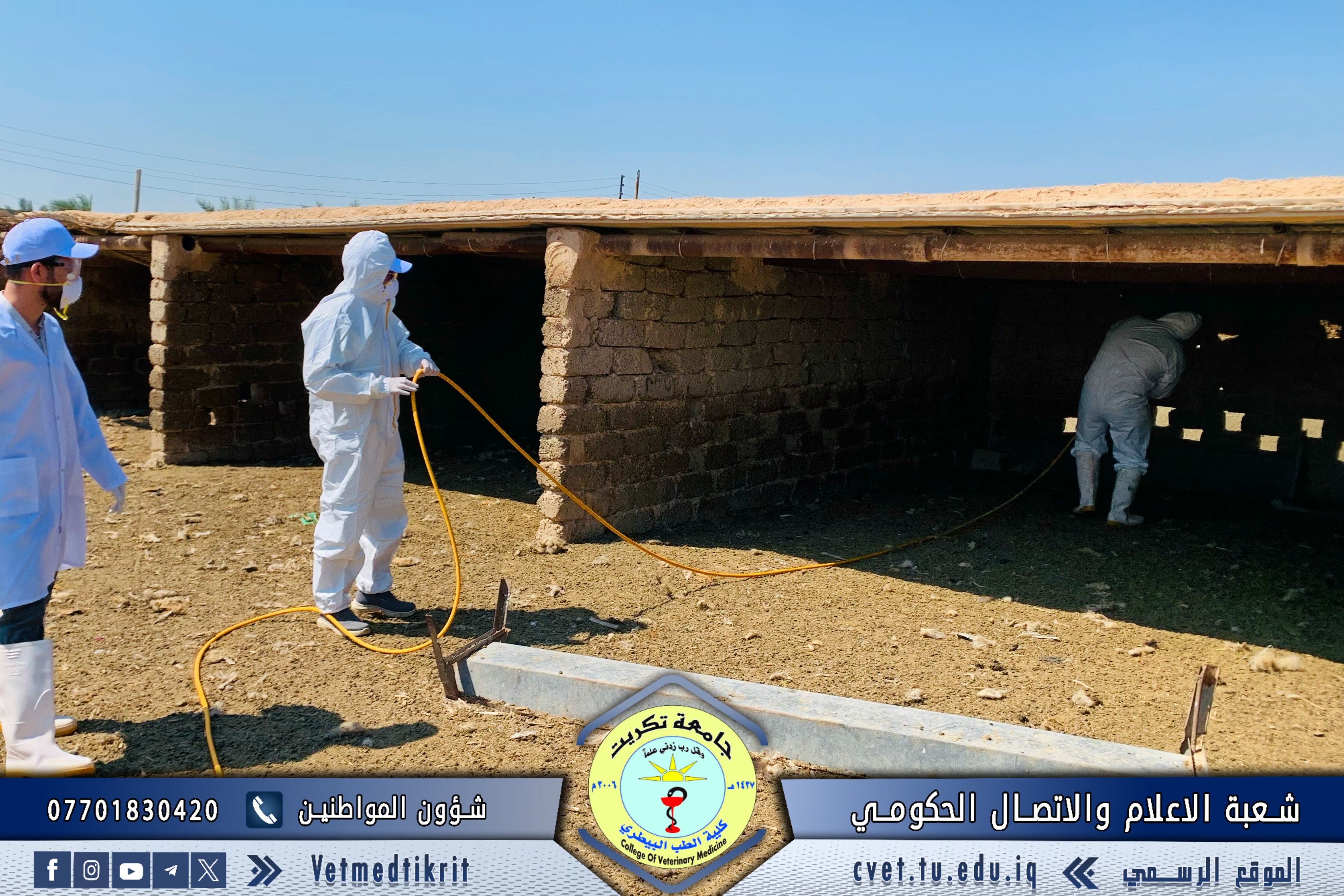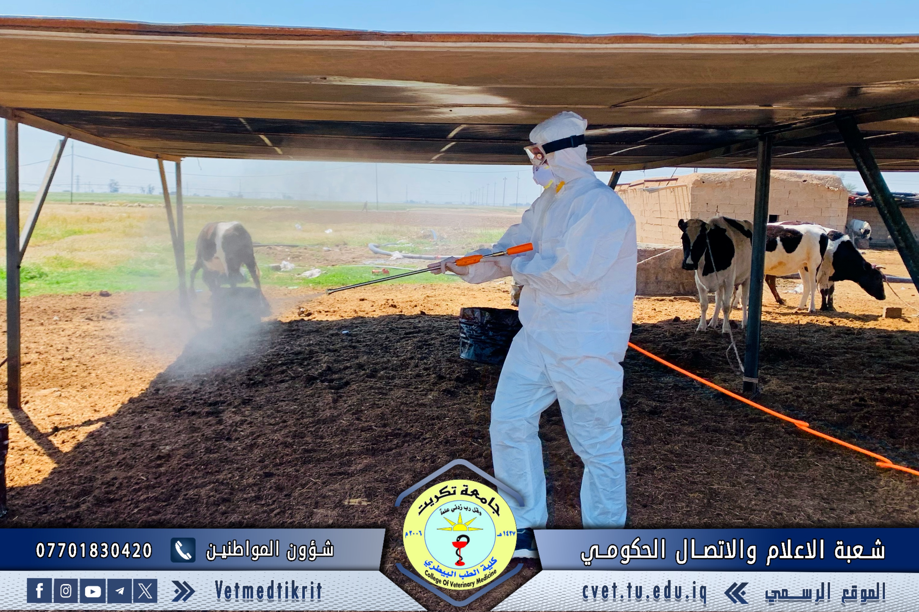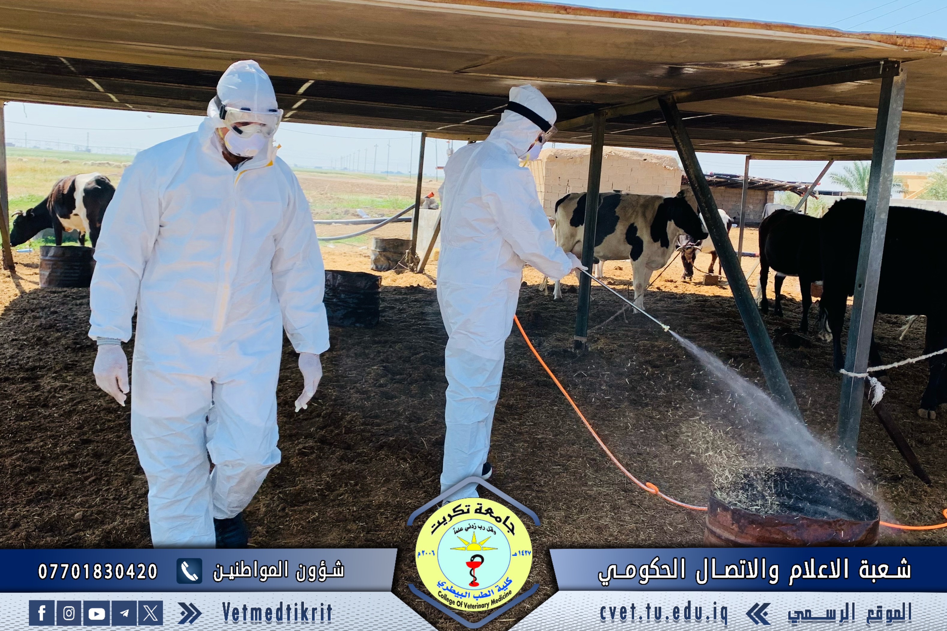 ضمن إطار رؤية كلية الطب البيطري بجامعة تكريت في دعم مؤسسات الدولة كافة، وبالتعاون المشترك مع المستشفى البيطري التعليمي في صلاح الدين، شاركت الكلية في الحملة الوطنية للرش والتغطيس التي تنظمها وزارة الزراعة متمثلة بدائرة البيطرة، ويشرف على تنفيذها المستشفى البيطري التعليمي في صلاح الدين. حيث تم تشكيل فريق مساند من كلية الطب البيطري للمساهمة في دعم وإسناد الفرق الجوالة التابعة للمستشفى البيطري، بهدف تغطية الحملة في جميع مناطق محافظة صلاح الدين للرش والتغطيس والتعفير ضد الامراض بين قطعان الابقار والماشية. علما ان الحملة مستمره لمدة شهر كامل.