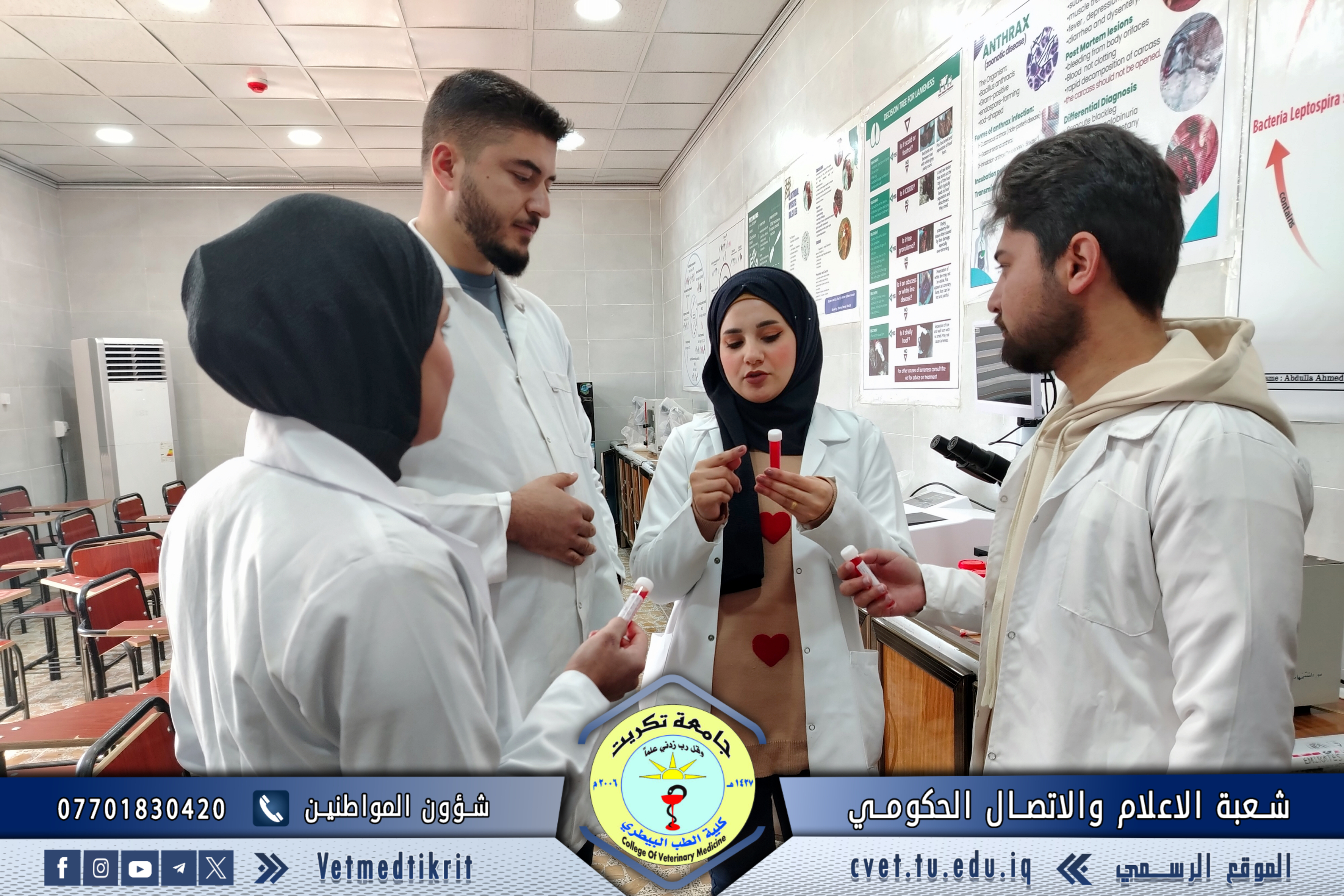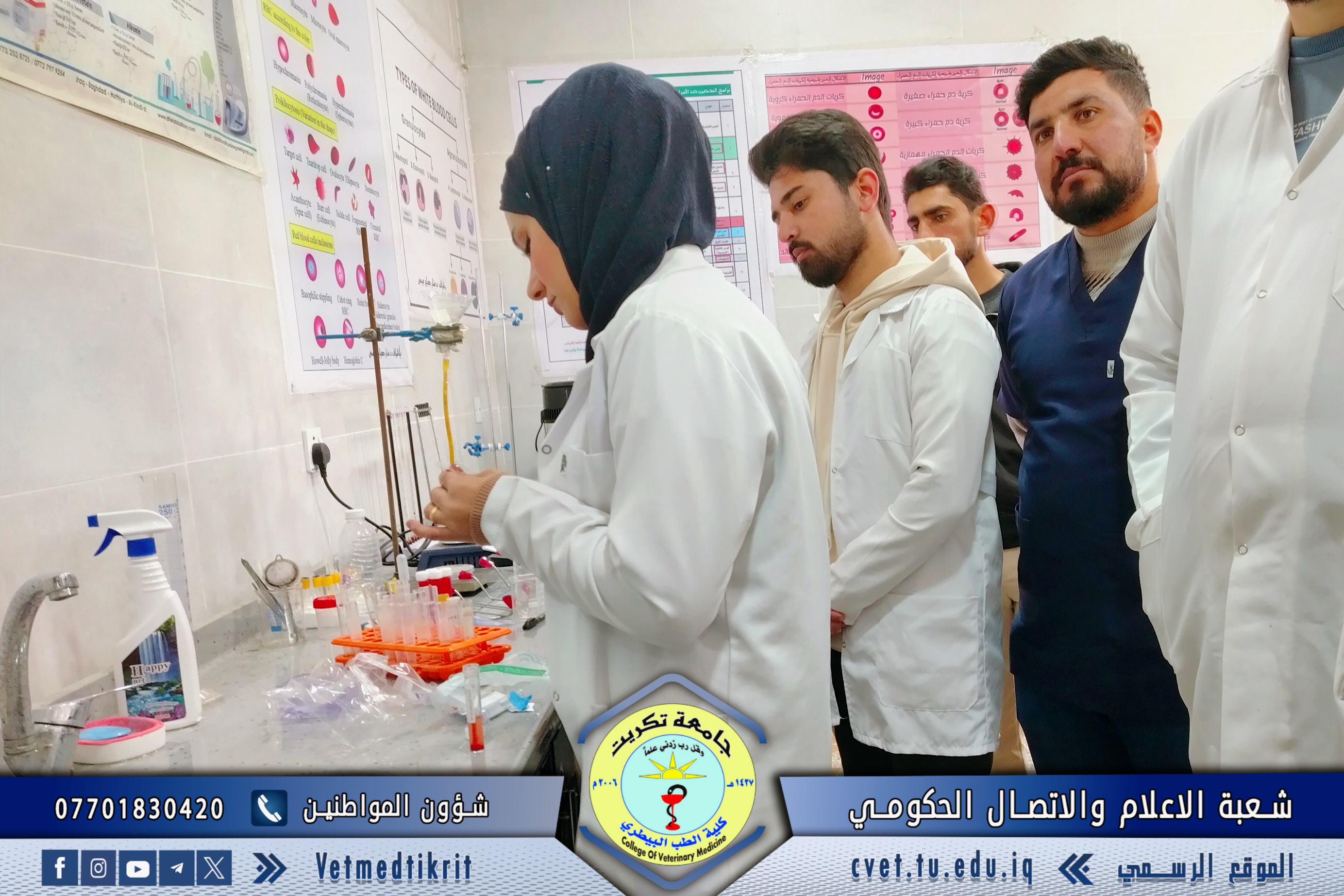 أجرى طلبة المرحلة الخامسة في كلية الطب البيطري بجامعة تكريت تطبيقاً عملياً في مختبر أمراض الدواجن حول اختبار التلزن الدموي للكشف عن فيروس النيوكاسل، وذلك ضمن المنهاج العملي لمادة أمراض الدواجن.