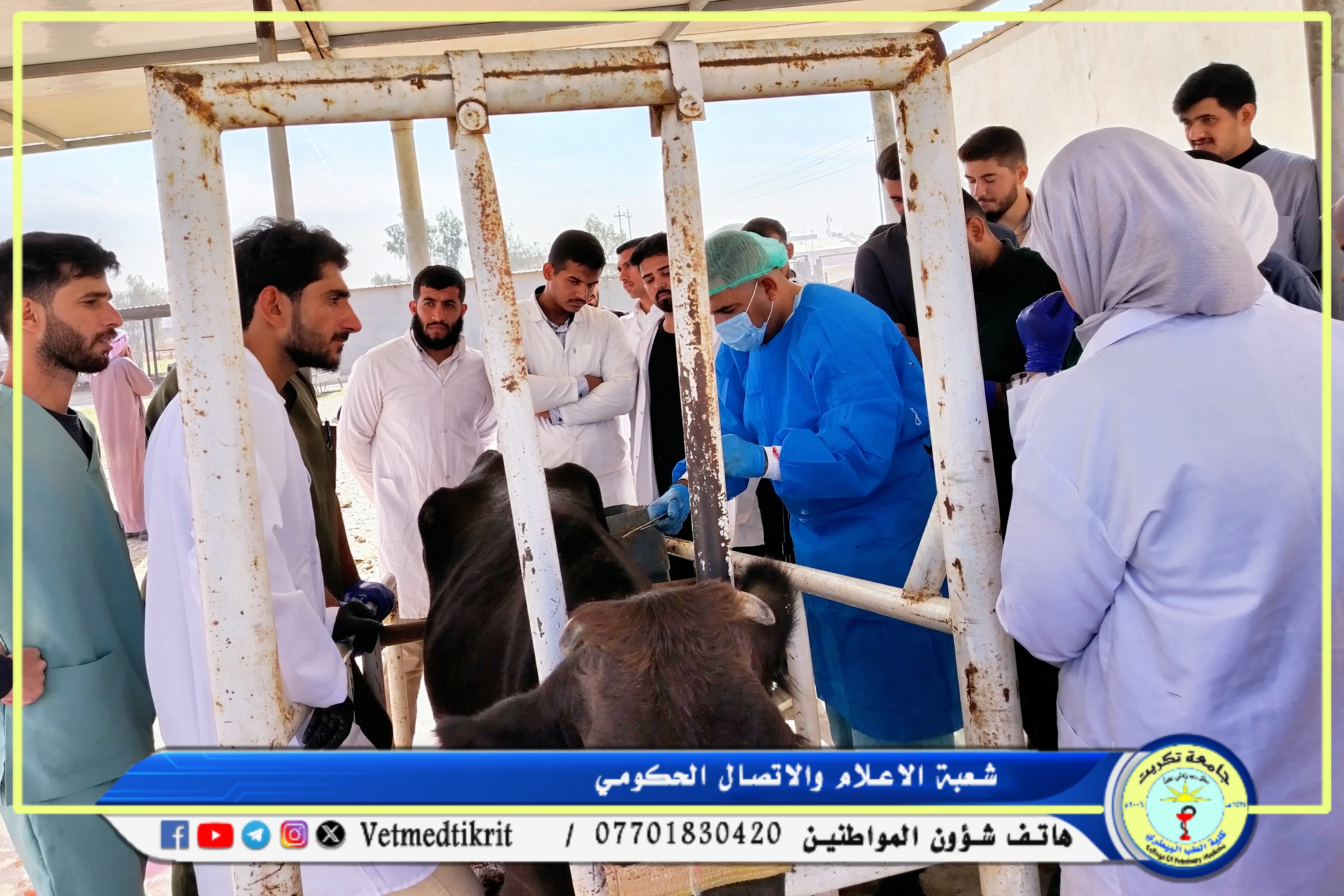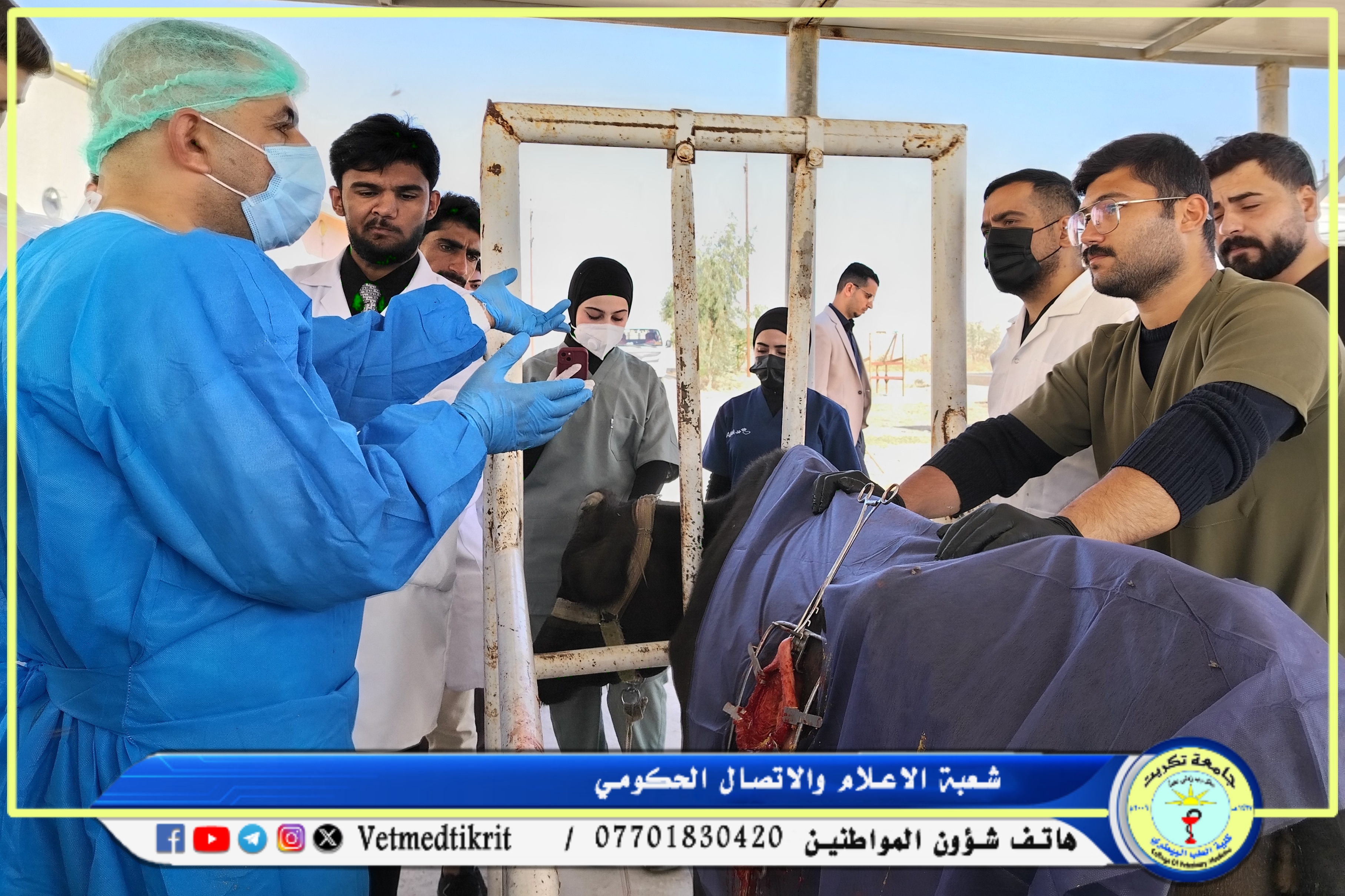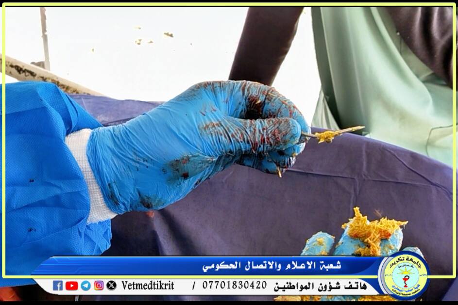 ضمن نشاطات خدمة المجتمع التي تقدمها كلية الطب البيطري بجامعة تكريت لمجتمع محافظة صلاح الدين، استقبلت وحدة العيادة الخارجية حالة بقرة تعاني من انقطاع الشهية، وقلة الحركة، وارتفاع في درجة الحرارة. تم فحص الحيوان بعناية، وبعد التشخيص، قرر الفريق الطبي إجراء عملية فتح الكرش (Rumenotomy) لاستخراج الأجسام الغريبة التي كانت مستقرة داخله وذلك تحت إشراف الدكتور منتصر محمد هلال، وبدعم ومشاركة طلبة المرحلة الخامسة، تمت العملية بنجاح حيث تم استخراج العديد من الأجسام الغريبة، ثم تم اعادة غلق العضلات وخياطة الجلد، كما تم تزويد الحيوان بالعلاجات اللازمة بعد العملية لضمان تعافيه التام.