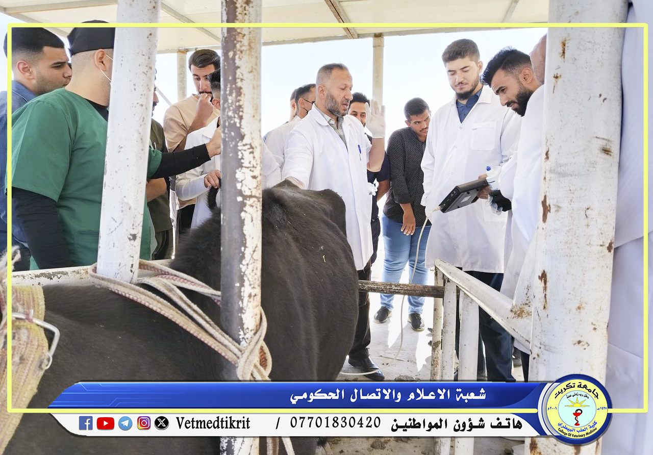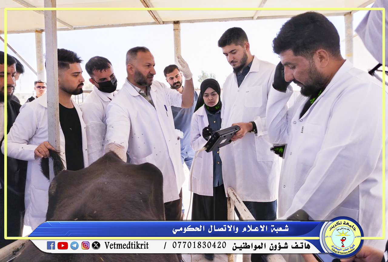 في إطار المبادرات المجانية التي تهدف إلى دعم المجتمع المحلي وتجسيدًا لرؤية رئاسة جامعة تكريت وعمادة كلية الطب البيطري بتعزيز الخدمات البيطرية والمساهمة في تطوير القطاع الزراعي في المنطقة، استقبلت وحدة العيادة الخارجية حالة جديدة تتعلق بفحص بقرة باستخدام جهاز السونار لتحديد إمكانية وجود حمل. تم إجراء الفحص تحت إشراف الدكتور ميثم عبد الإله، وبمشاركة طلاب المرحلة الخامسة في الكلية كجزء من منهج التطبيق البيطري التعليم لتدريب الطلبة على استخدام اجهزة الفحص بالموجات فوق الصوتية.