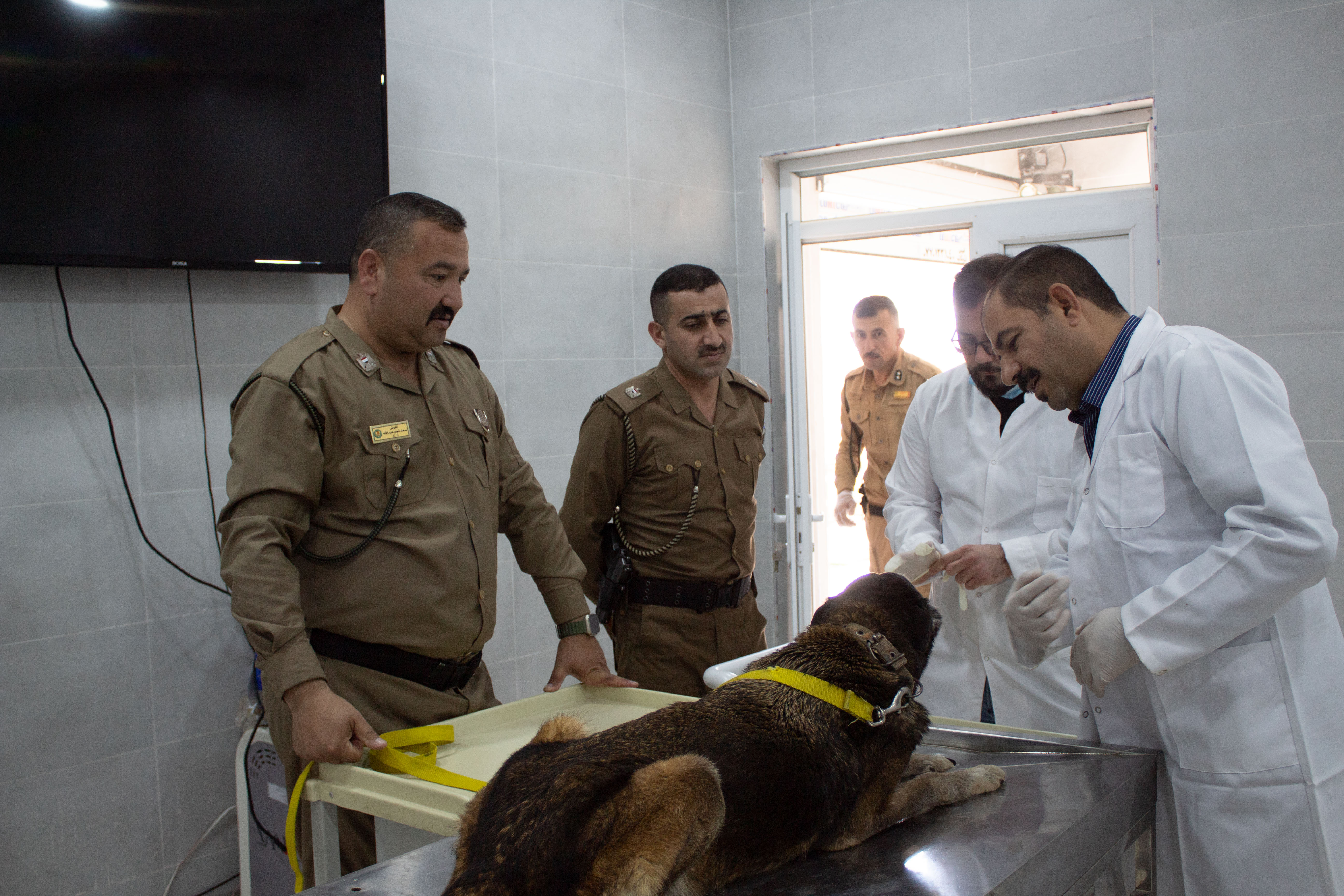 ضمن نشاطات كلية الطب البيطري بجامعة تكريت لخدمة مجتمع محافظة صلاح الدين بشكل عام والقوات الامنية بصورة خاصة، استقبلت وحدة العيادة البيطرية الخارجية حالة بيطرية تابعة لمديرية ادارة وشؤون الكلاب البوليسية K-9 التابعة لقيادة شرطة صلاح الدين تعاني من ضعف النظر في العينين والتهاب اللثة وتنخر الاسنان والضعف العام، وتم على الفور تشخيص الحالة ووصف العلاج المناسب لها مع توجيه التعليمات للمدرب. تم تشخيص وعلاج الحالة بواسطة الدكتور منتصر محمد هلال والطبيب البيطري موسى دخيل والطبيب البيطري سيف احمد والطبيب البيطري ميرفت امين بمشاركة طلبة المرحلة الخامسة كجزء من منهج التطبيق البيطري لطلبة المراحل المنتهية في الكلية.