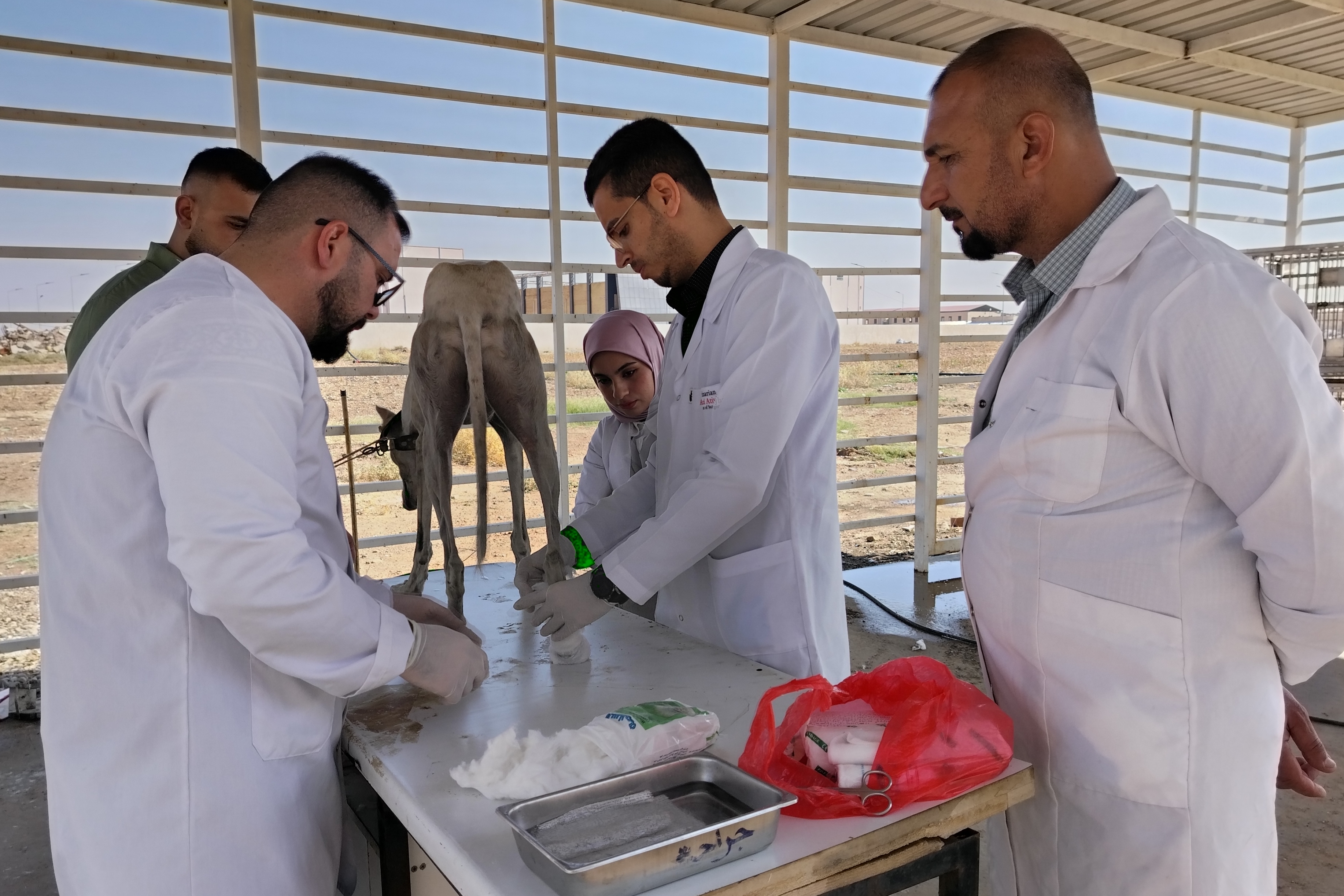 ضمن نشاطات خدمة المجتمع التي تقدمها كلية الطب البيطري بجامعة تكريت لمجتمع محافظة صلاح الدين بشكل عام، استقبلت وحدة العيادة الخارجية التابعة للكلية حالة كلب صيد يعاني من كسر في الساق السفلى، حيث قام الفريق الطبي المكون من الدكتور علي غازي، والدكتورة هبة عبد العزيز، والدكتور عبد القادر هادي، والطبيب البيطري سيف أحمد، بتحديد موقع الكسر وإجراء عملية تثبيت عاجلة للساق، إلى جانب تقديم العلاجات اللازمة لضمان استقرار حالة الحيوان وتعافيه. من الجدير بالذكر ان الوحدة تستقبل كافة الحالات البيطرية على مدار الاسبوع وبشكل مجاني.