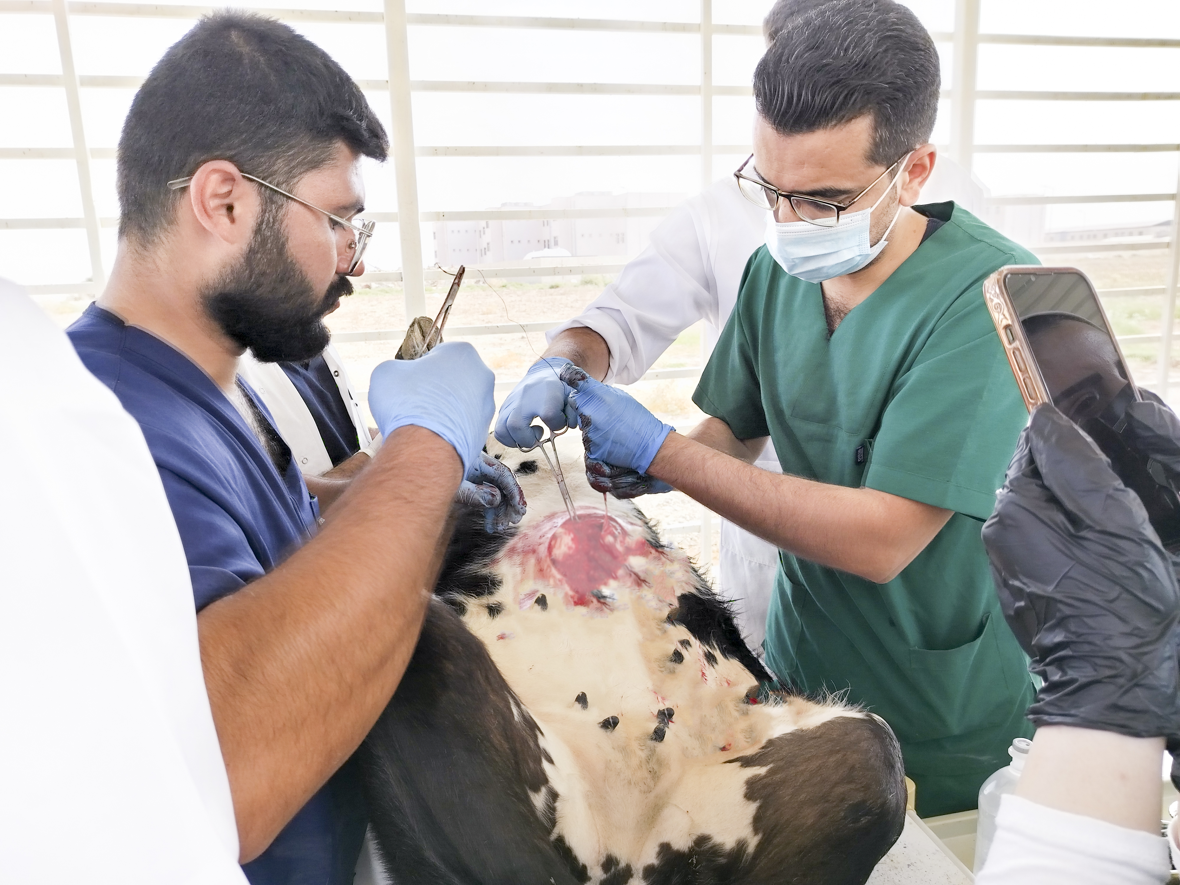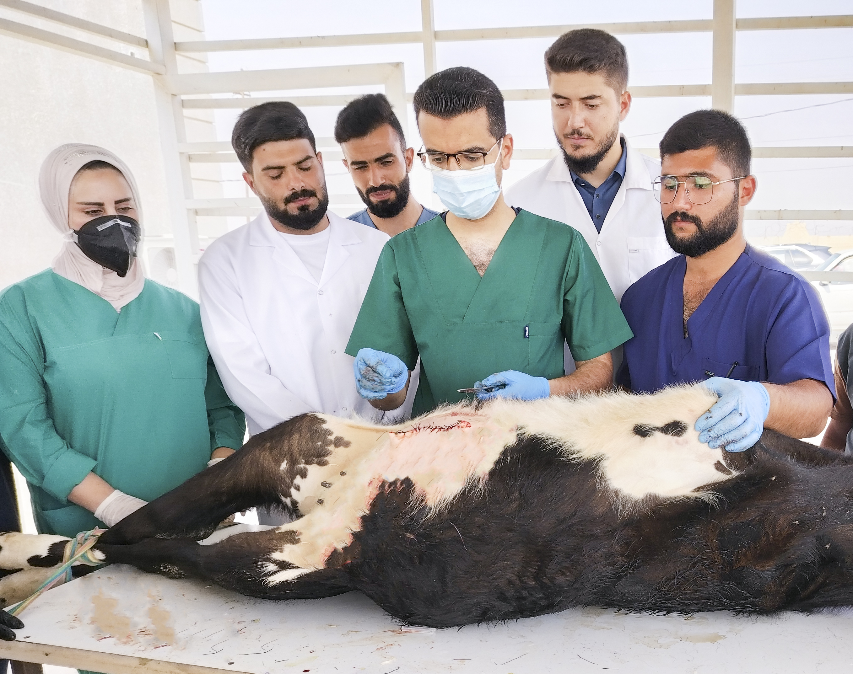 في خطوة تعكس التفاعل بين التعليم والممارسة العملية، وتحت إشراف الدكتور علي غازي عطية والدكتورة هبة عبد العزيز شيخو، وبمشاركة طلبة المرحلة الخامسة قامت وحدة العيادة الخارجية بمعالجة عجل صغير يعاني من فتق في منطقة السرة. وقد أجريت للعجل عملية جراحية تضمنت فتح منطقة الفتق، ومن ثم إعادة تشكيل عضلات البطن باستخدام التقنيات الجراحية اللازمة، تلاها خياطة منطقة العملية. اتاحت هذه الحالة الفرصة القيمة في تعزيز قدرات الطلبة وتعمق فهمهم للتحديات التي تواجهها الحيوانات في مجال الطب البيطري.