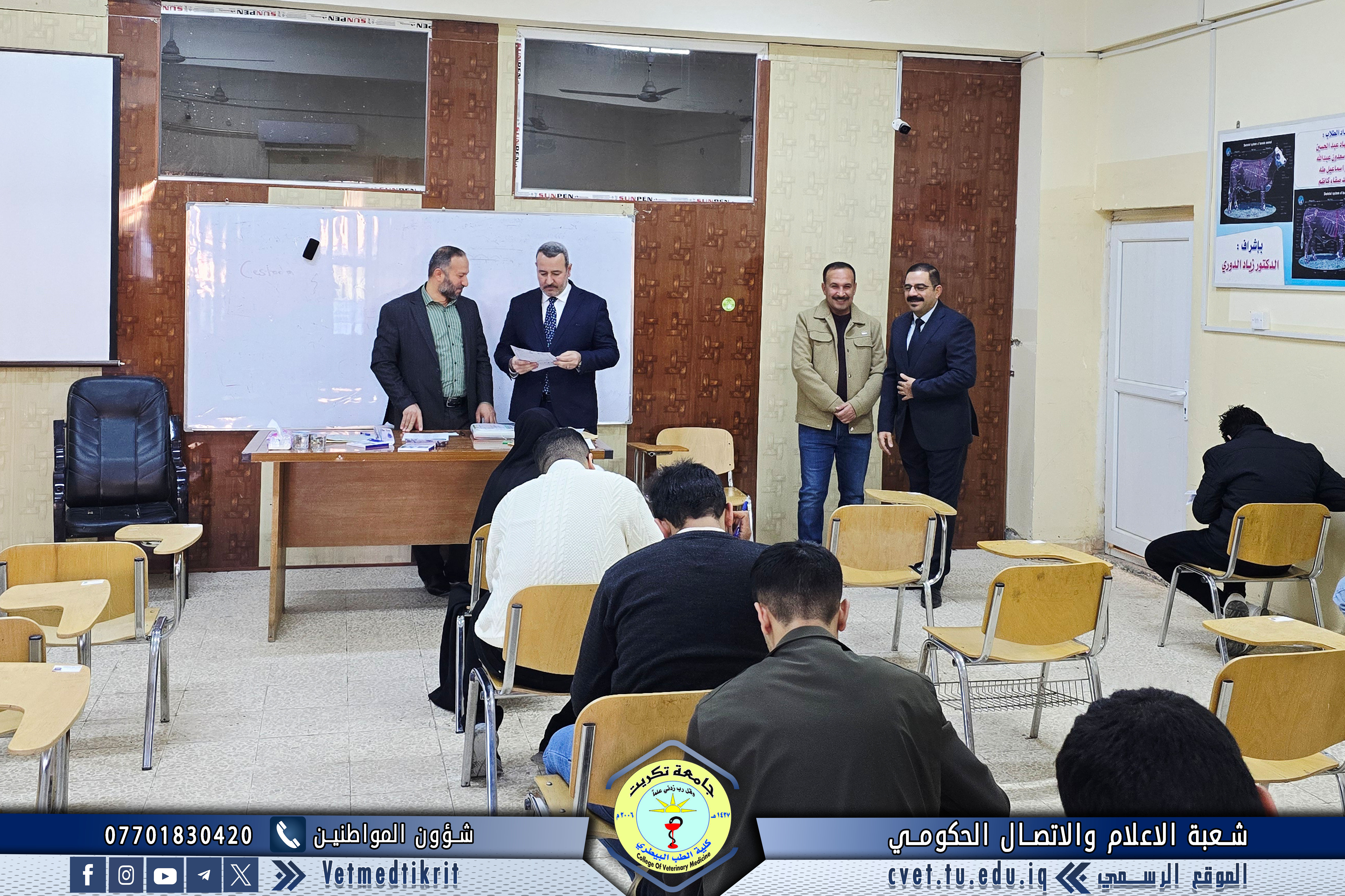 تتابع عمادة كلية الطب البيطري في جامعة تكريت سير الامتحانات النهائية للفصل الدراسي الأول للعام الدراسي 2025–2026 لطلبة الدراسات الأولية للمراحل فوق الأولى، وذلك في إطار حرصها على توفير أجواء امتحانية ملائمة تضمن انسيابية الأداء والالتزام بالتعليمات الجامعية.