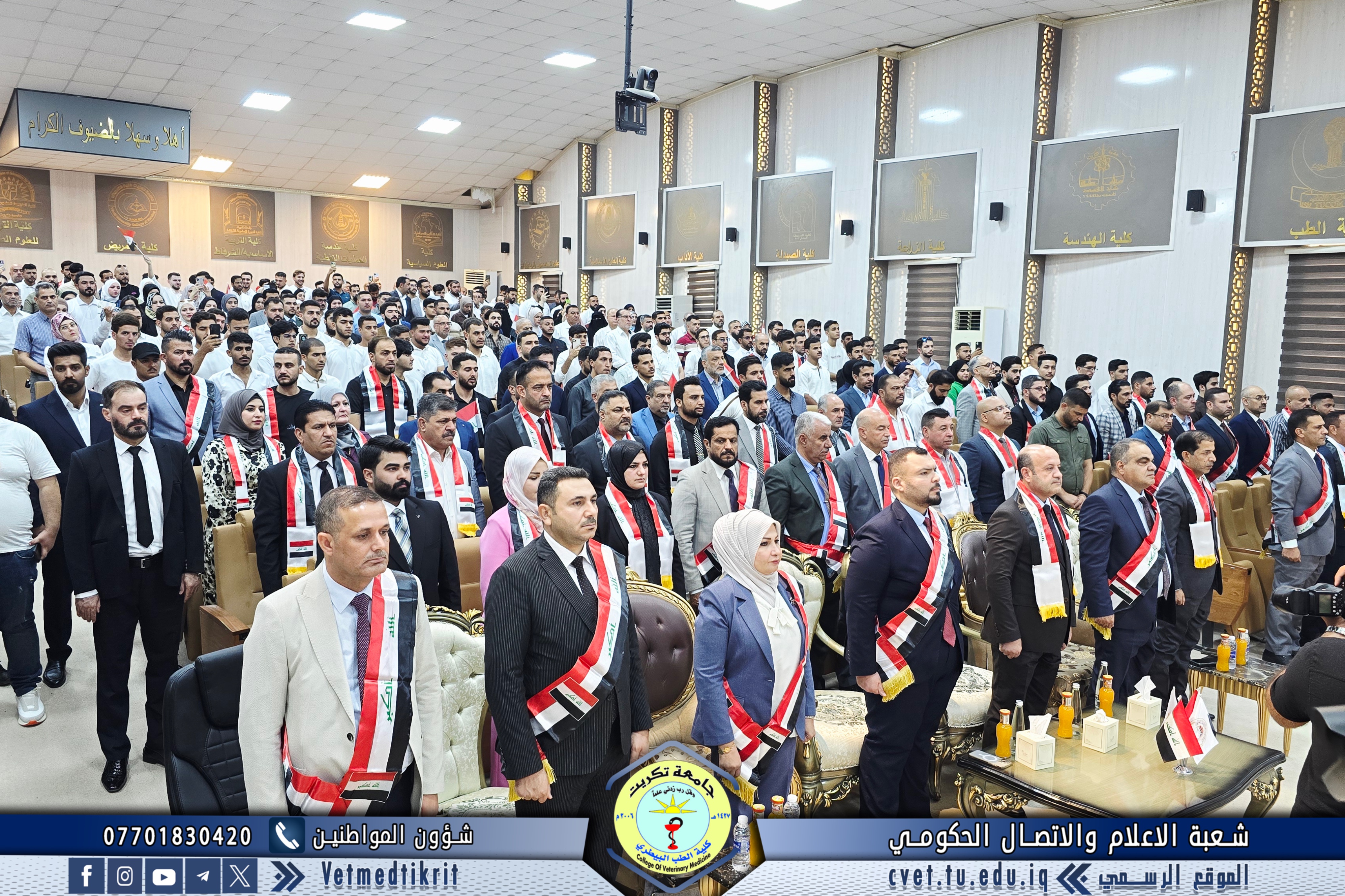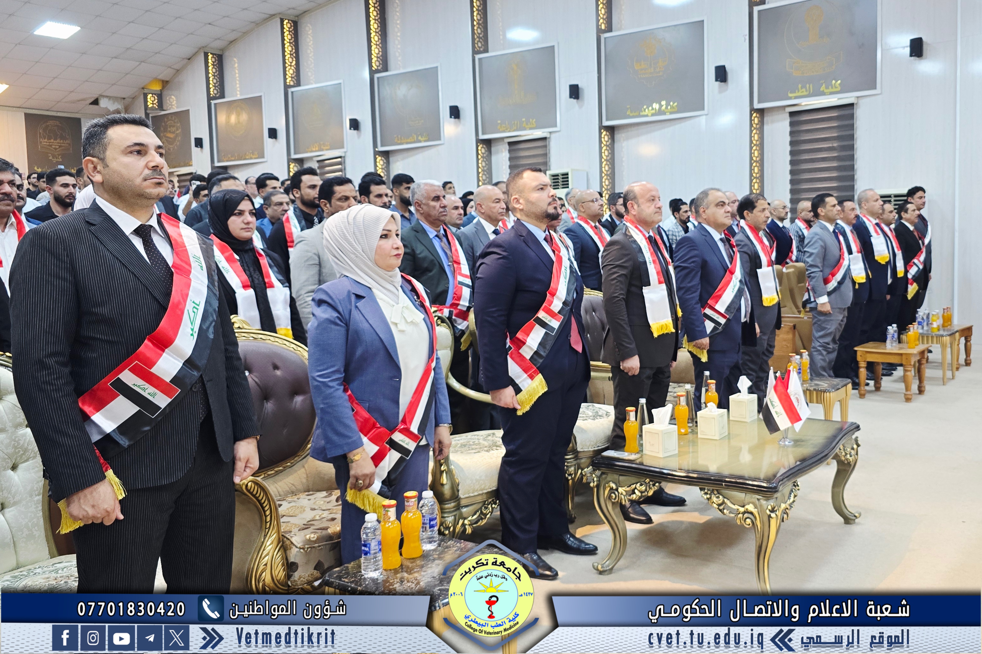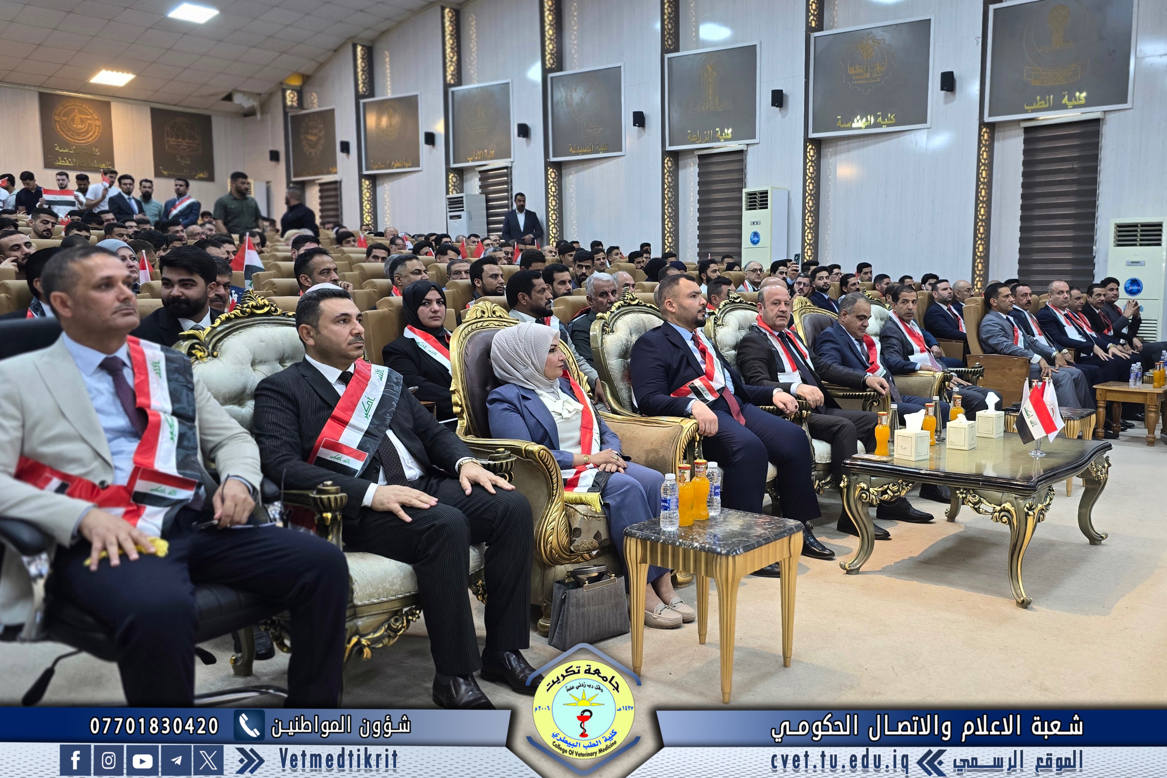 برعاية السيد رئيس جامعة تكريت الأستاذ الدكتور وعد محمود رؤوف، شاركت كلية الطب البيطري في فعاليات الاحتفال المركزي بالعيد الوطني العراقي الذي أقامته الجامعة على قاعة الخوارزمي في كلية الهندسة، وذلك احتفاءً بالمناسبة الوطنية العزيزة التي تجسد وحدة الشعب العراقي واعتزازه بتاريخه المجيد. وحضر الاحتفال الأستاذ الدكتور بشار صادق نومي عميد كلية الطب البيطري، يرافقه السادة معاوني العميد ورؤساء الفروع العلمية، وعدد من أعضاء الهيئة التدريسية والإدارية، فضلاً عن جمع من طلبة الكلية الذين شاركوا بحماس يعكس روح الانتماء والفخر الوطني. تضمن الحفل كلماتٍ وعروضاً احتفالية سلّطت الضوء على مسيرة العراق التاريخية ونهضته العلمية والثقافية، مؤكدين أن هذه المناسبة تمثل فرصة لتعزيز قيم المواطنة والانتماء بين أوساط الطلبة والمنتسبين في جامعة تكريت. وفي ختام الاحتفال، عبّر عميد كلية الطب البيطري عن اعتزازه بالمشاركة في هذه الفعالية الوطنية، مؤكداً أن الكلية ماضية في دعم جميع الأنشطة التي تعزز روح الانتماء للوطن وتغرس القيم الوطنية في نفوس الطلبة.