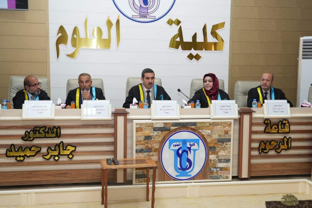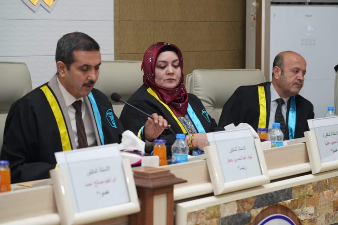 بعضوية واشراف الاستاذ الدكتور وعد محمود رؤوف رئيس جامعة تكريت المحترم، شارك الاستاذ الدكتور نهاد عيد الحسين جعفر كرئيس للجنة مناقشة اطروحة الدكتوراه الموسومة (التوصيف الجزيئي للبكتريا السالبة لصبغة كرام المقاومة للكاربابينم والمعزولة من اصابات الحروق والجروح وتقييم الفعالية المضادة لمستخلص اوراق السدر ومسك الغزال ضد هذه العزلات) للطالبة (سارة احمد حسن) من قسم علوم الحياة في كلية العلوم، وذلك في المناقشة التي اقيمت على قاعة الدكتور جابر حميد في كلية العلوم بتاريخ 2024/6/13.
