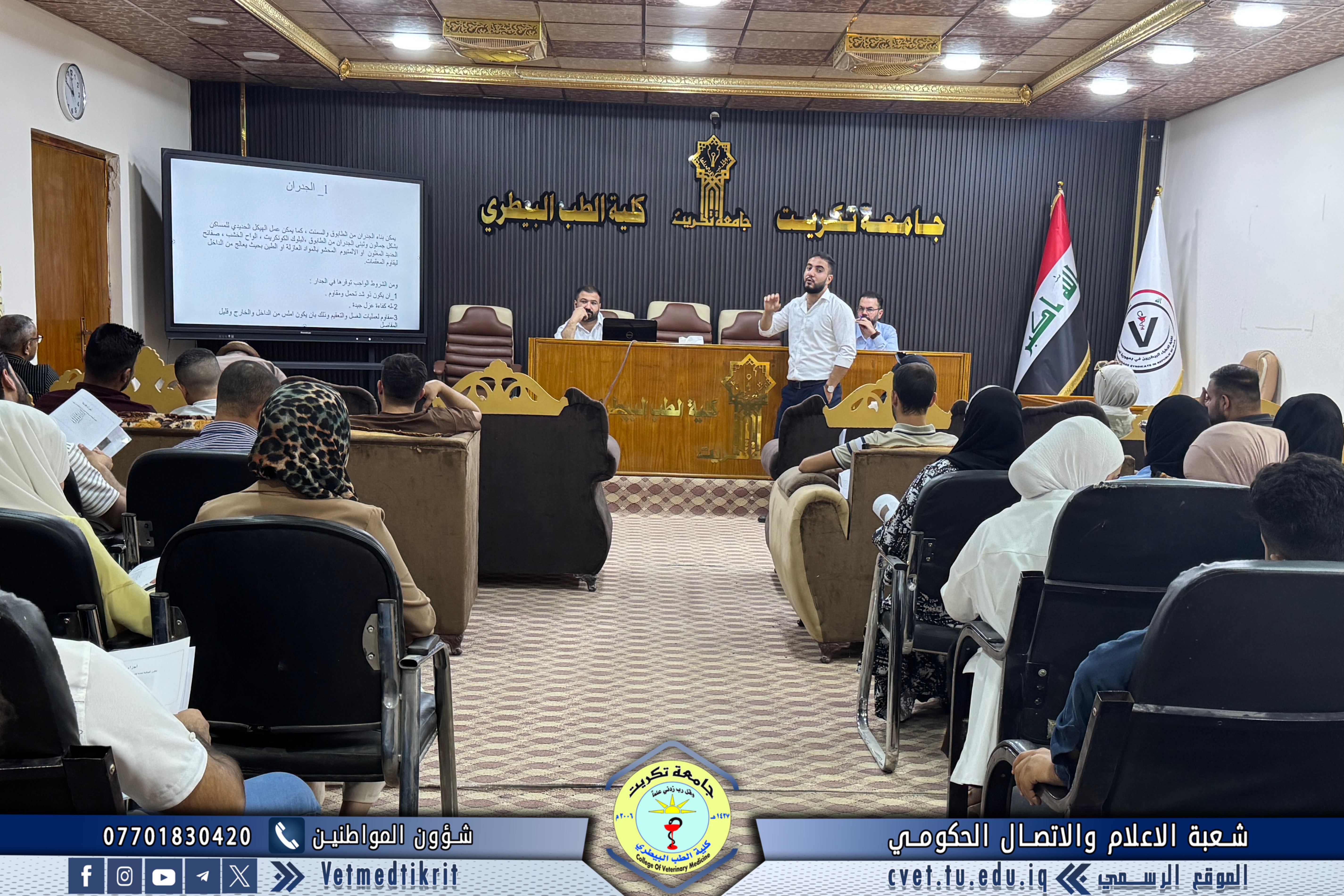استضافت قاعة المرحوم د. مهند ماهر في كلية الطب البيطري بجامعة تكريت، دورة الإشراف الصحي البيطري الثانية على مستوى محافظة صلاح الدين، والتي اقامتها نقابة الأطباء البيطريين في المحافظة بالتعاون مع كلية الطب البيطري والمستشفى البيطري التعليمي في صلاح الدين بمشاركة واسعة من الأطباء البيطريين وخريجي الكلية. تعد هذه الدورة محطة تدريبية مهمة تهدف إلى رفع كفاءة الأطباء البيطريين في مجال الإشراف الصحي البيطري، وتعزيز المعلومات العلمية والتطبيقية في متابعة الصحة الحيوانية وسلامة الغذاء. كما أتاحت الدورة فرصة للتواصل المباشر بين الأطباء البيطريين والخريجين مع أساتذتهم وزملائهم، وفتح باب النقاش وتبادل الخبرات حول أهم التحديات الميدانية والحلول العلمية المعتمدة في القطاع البيطري. وتأتي هذه الفعالية ضمن جهود الكلية بالتنسيق مع النقابة في دعم خريجيها وتطوير مهاراتهم المهنية بما يواكب متطلبات سوق العمل ويخدم المجتمع المحلي.