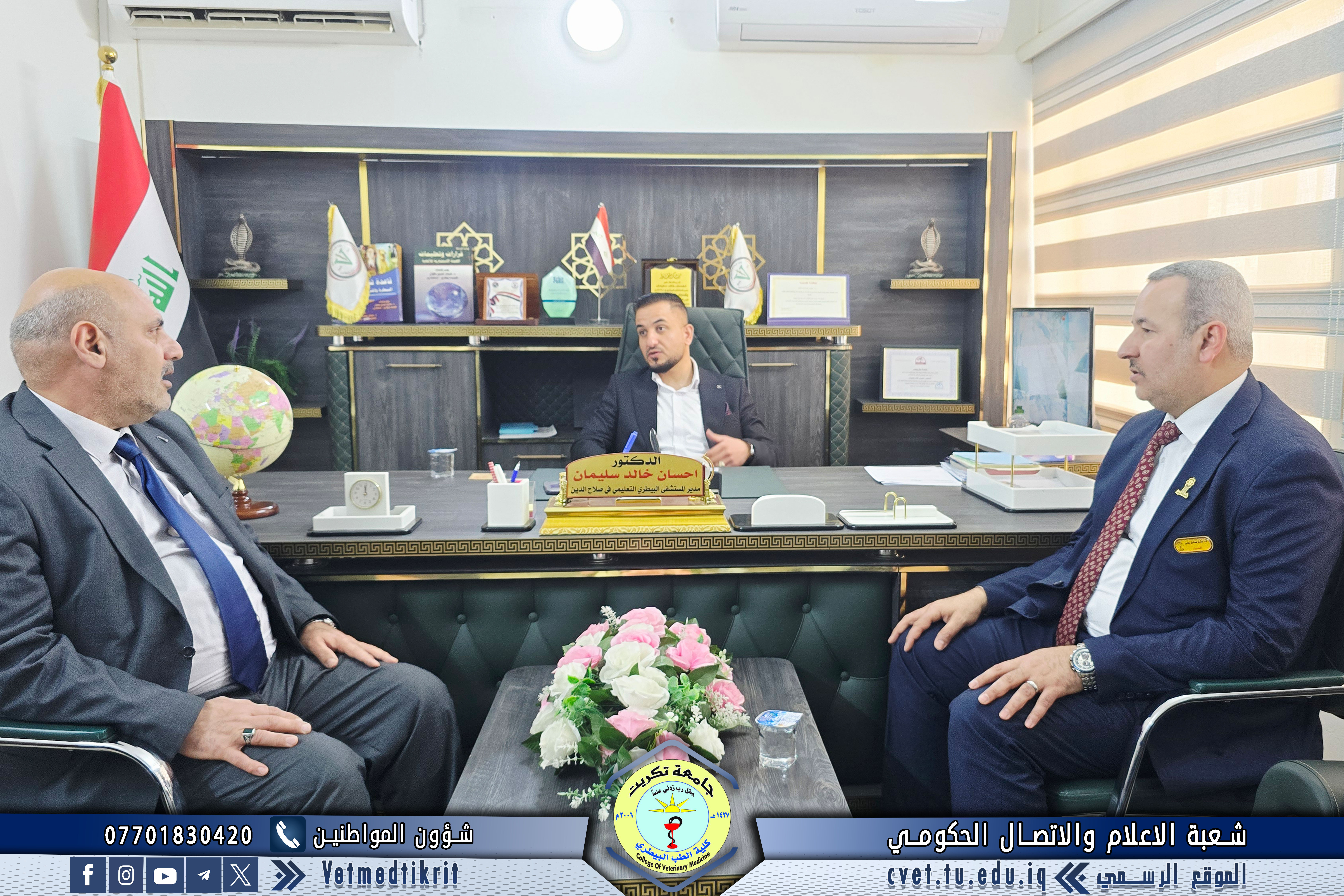 وفي ختام الزيارة، أشاد السيد العميد بجهود أعضاء الفريق الوزاري واهتمامهم بدعم مشروع استحداث المستشفى البيطري التعليمي، مؤكدًا أن هذه الخطوة تمثل إضافة نوعية تعزز مكانة الكلية وتسهم في الارتقاء بالتعليم البيطري وخدمة المجتمع في محافظة صلاح الدين والعراق عمومًا.
