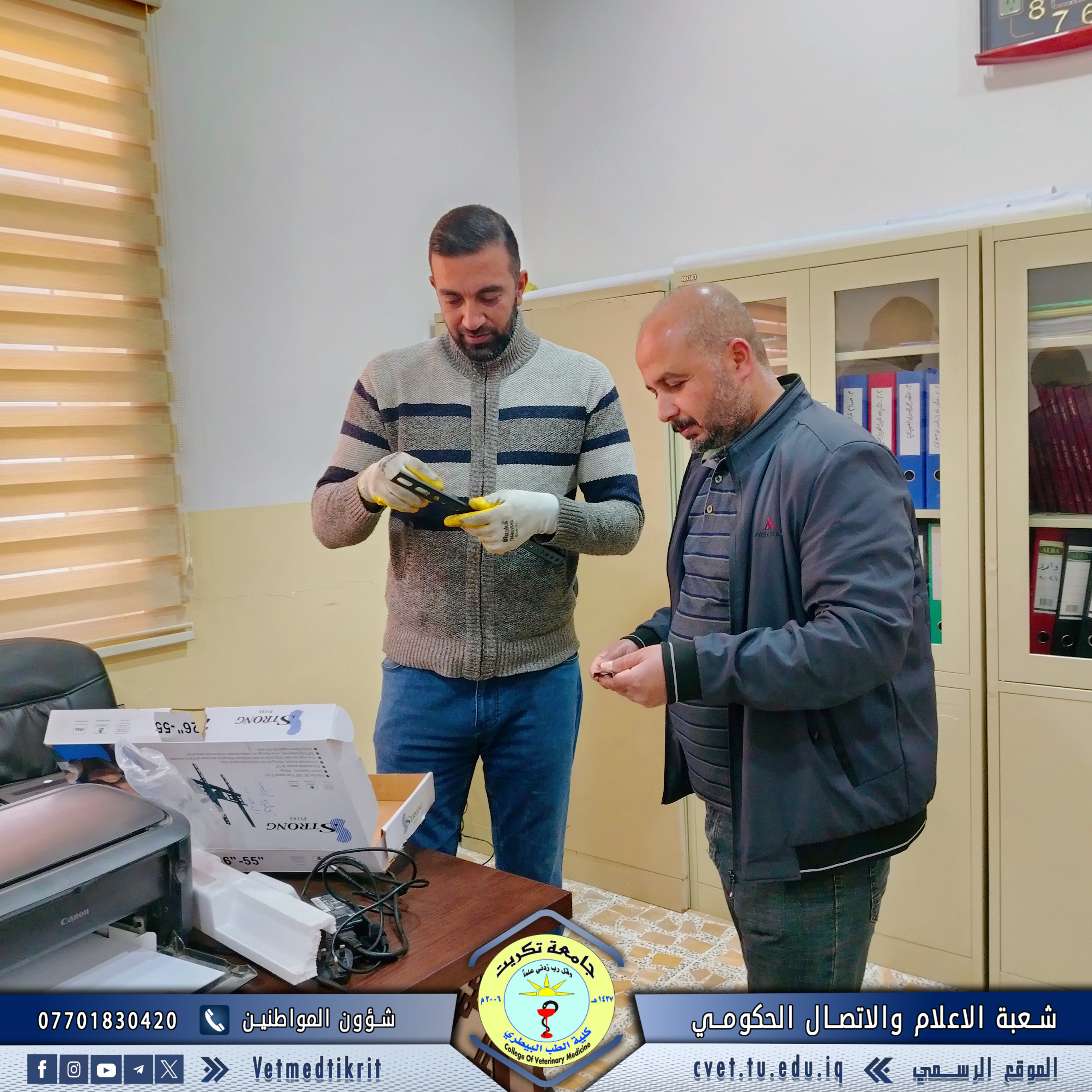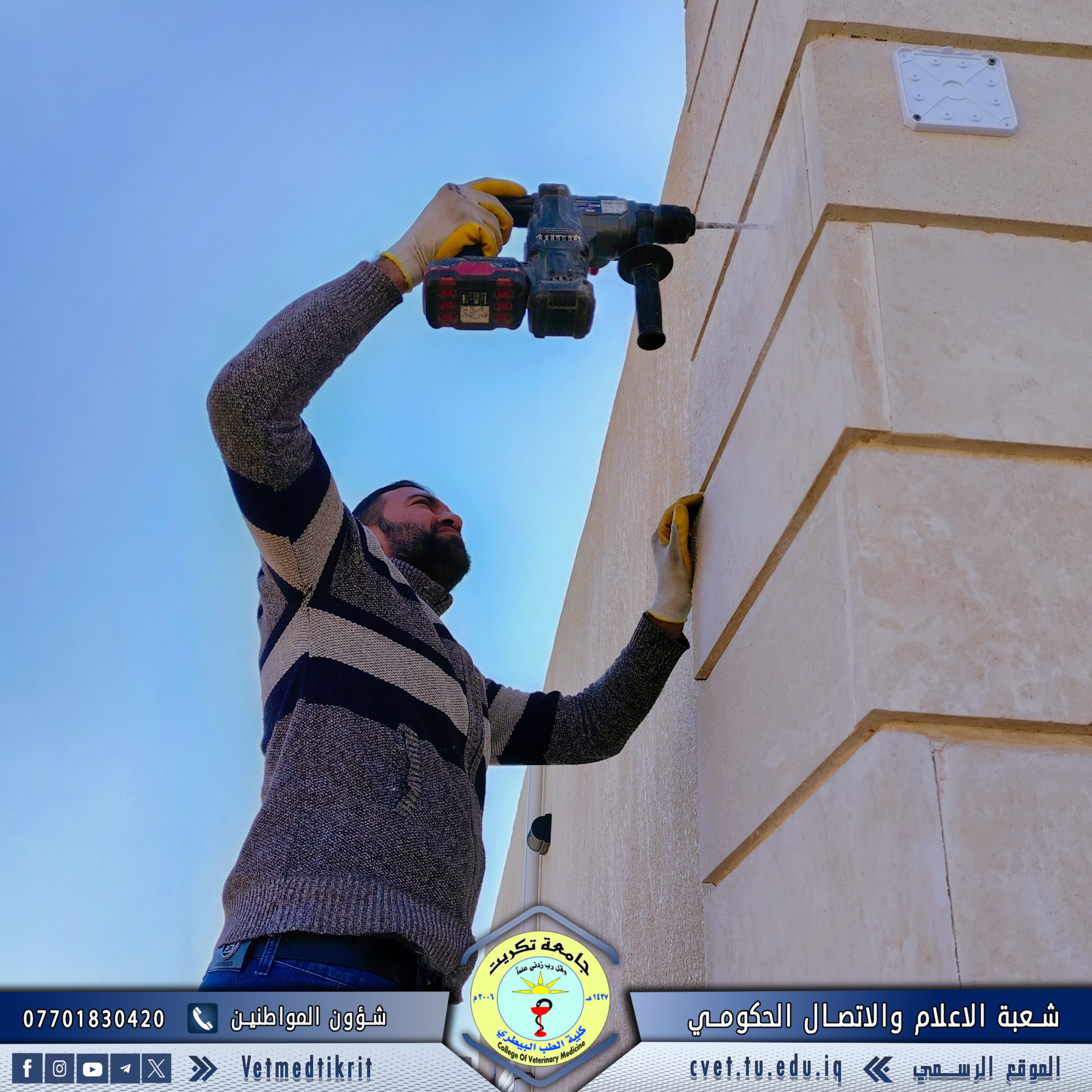 برعاية واشراف كل من الاستاذ الدكتور بشار صادق نومي عميد كلية الطب البيطري بجامعة تكريت والاستاذ المساعد الدكتور اسامة حميد شهاب معاون العميد للشؤون الادارية وضمن جهود دعم العملية التعليمية تواصل شعبة الصيانة في الكلية جهودها في تطوير البنية التحتية، حيث أنجزت مؤخراً تثبيت نظام متكامل لكاميرات المراقبة في مبنى وحدة العيادة الخارجية، بهدف تعزيز الأمن ومتابعة الأنشطة. كما قامت بصيانة عدد من الأجهزة الحقلية المهمة داخل البيت الحيواني لضمان استمرارية العمل وتحقيق الكفاءة المطلوبة. تأتي هذه الخطوات ضمن استراتيجية الكلية للارتقاء بالخدمات المقدمة، بما يسهم في توفير بيئة تعليمية وعملية متكاملة تلبي احتياجات الطلبة والكوادر الأكاديمية.