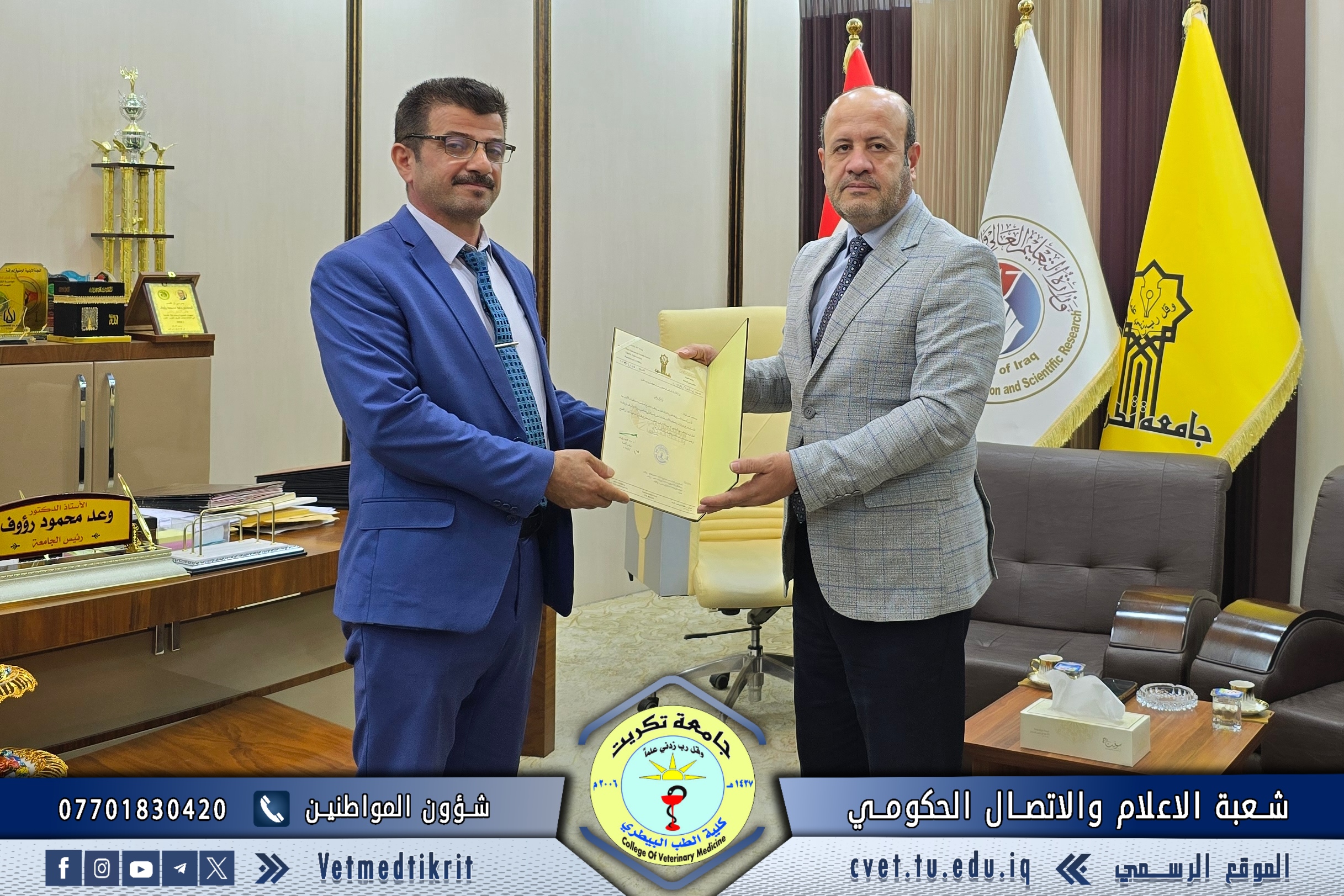 استقبلت كلية الطب البيطري في جامعة تكريت اللجنة الوزارية المشكلة من قبل وزارة التعليم العالي والبحث العلمي للنظر في استحداث برنامج الماجستير في تخصص الفسلجة، وذلك ضمن سعي الكلية لتوسيع برامج الدراسات العليا وتطوير البحث العلمي في التخصصات البيطرية.
