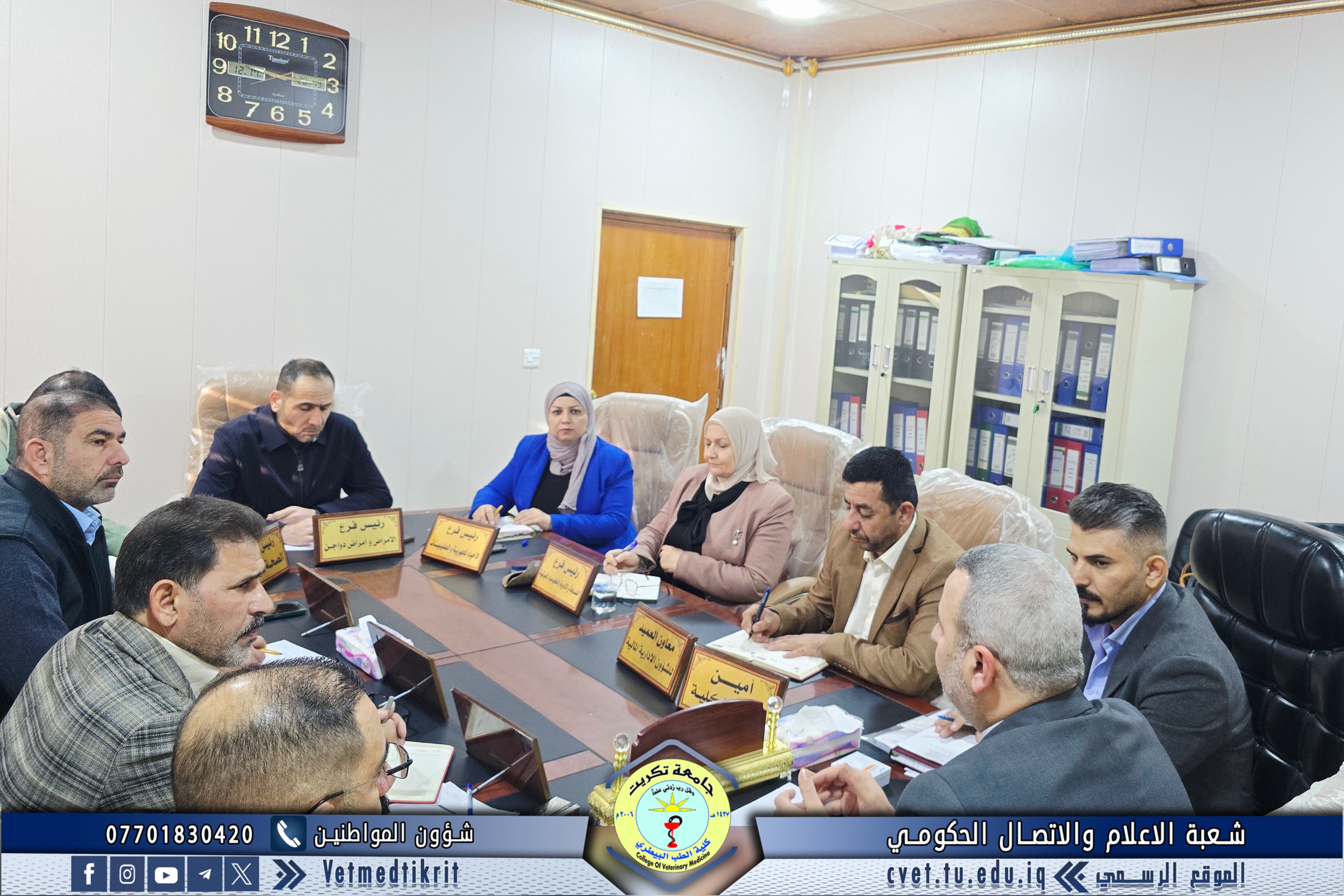عقد مجلس كلية الطب البيطري في جامعة تكريت جلسته السابعة للعام الدراسي 2025–2026، برئاسة الأستاذ الدكتور بشار صادق نومي عميد الكلية، وبحضور السادة معاوني العميد، والسيدات والسادة رؤساء الفروع العلمية.