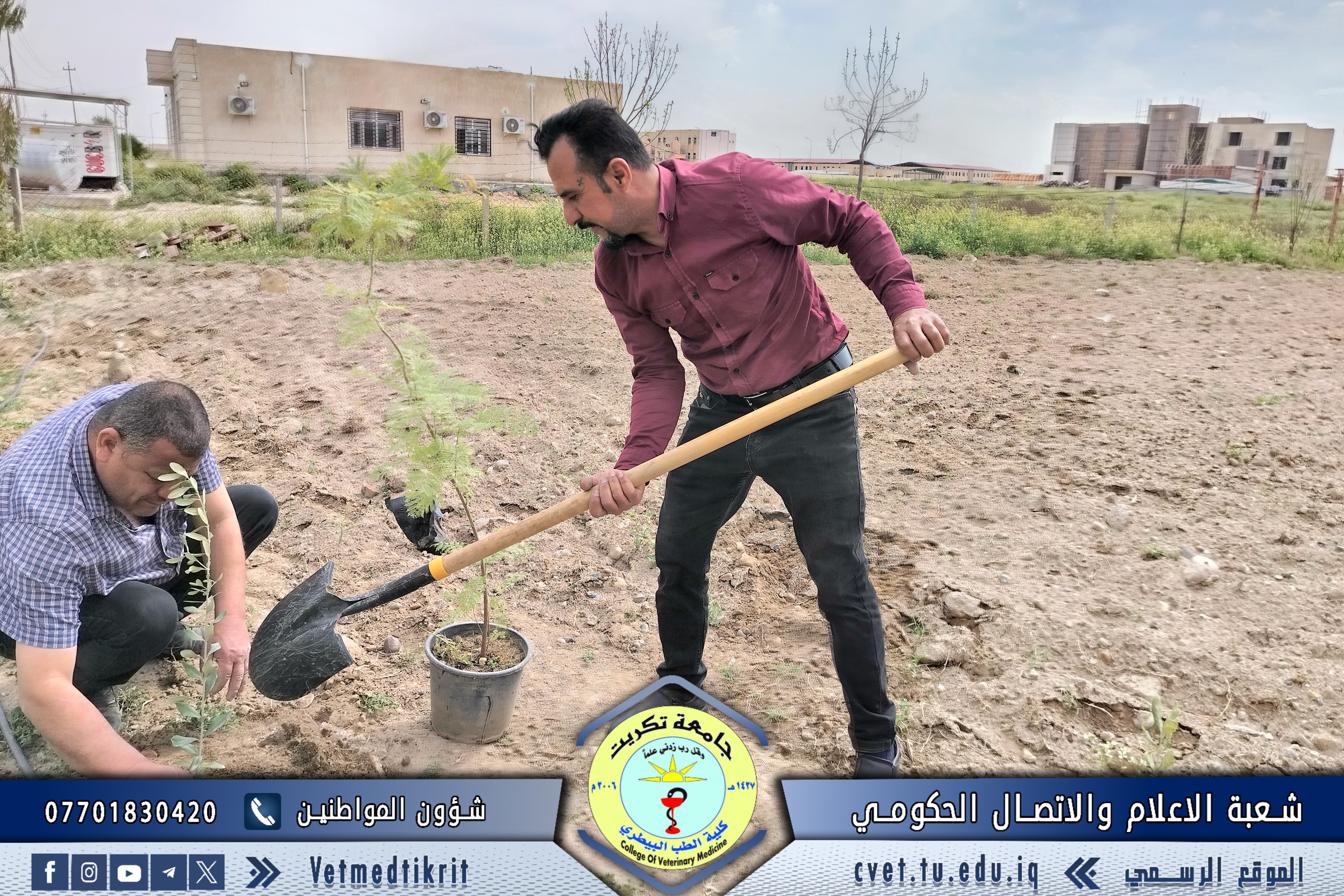 في إطار الجهود المبذولة لتعزيز الاستدامة البيئية وتحسين المشهد الطبيعي داخل الحرم الجامعي، نظّمت كلية الطب البيطري في جامعة تكريت حملة تشجير واسعة شملت أروقة الكلية والبيت الحيواني، بمشاركة نخبة من أساتذتها وكوادرها التدريسية. وقد شهدت الحملة مشاركة كل من الأستاذ الدكتور بشار صادق نومي عميد الكلية، والأستاذ المساعد الدكتور منتصر محمد هلال معاون العميد للشؤون العلمية، والأستاذ المساعد الدكتور أسامة حميد شهاب معاون العميد للشؤون الإدارية، إلى جانب عدد من السادة التدريسيين الذين ساهموا بشكل فاعل في زراعة الشتلات والعناية بها. وتضمنت الحملة غرس أنواع مختلفة من الأشجار، من بينها الأكاسيا والزيتون والأوكالبتوس والقوغ، لما لها من فوائد بيئية وجمالية، فضلًا عن دورها في تحسين جودة الهواء وتوفير بيئة أكثر صحة داخل الحرم الجامعي.