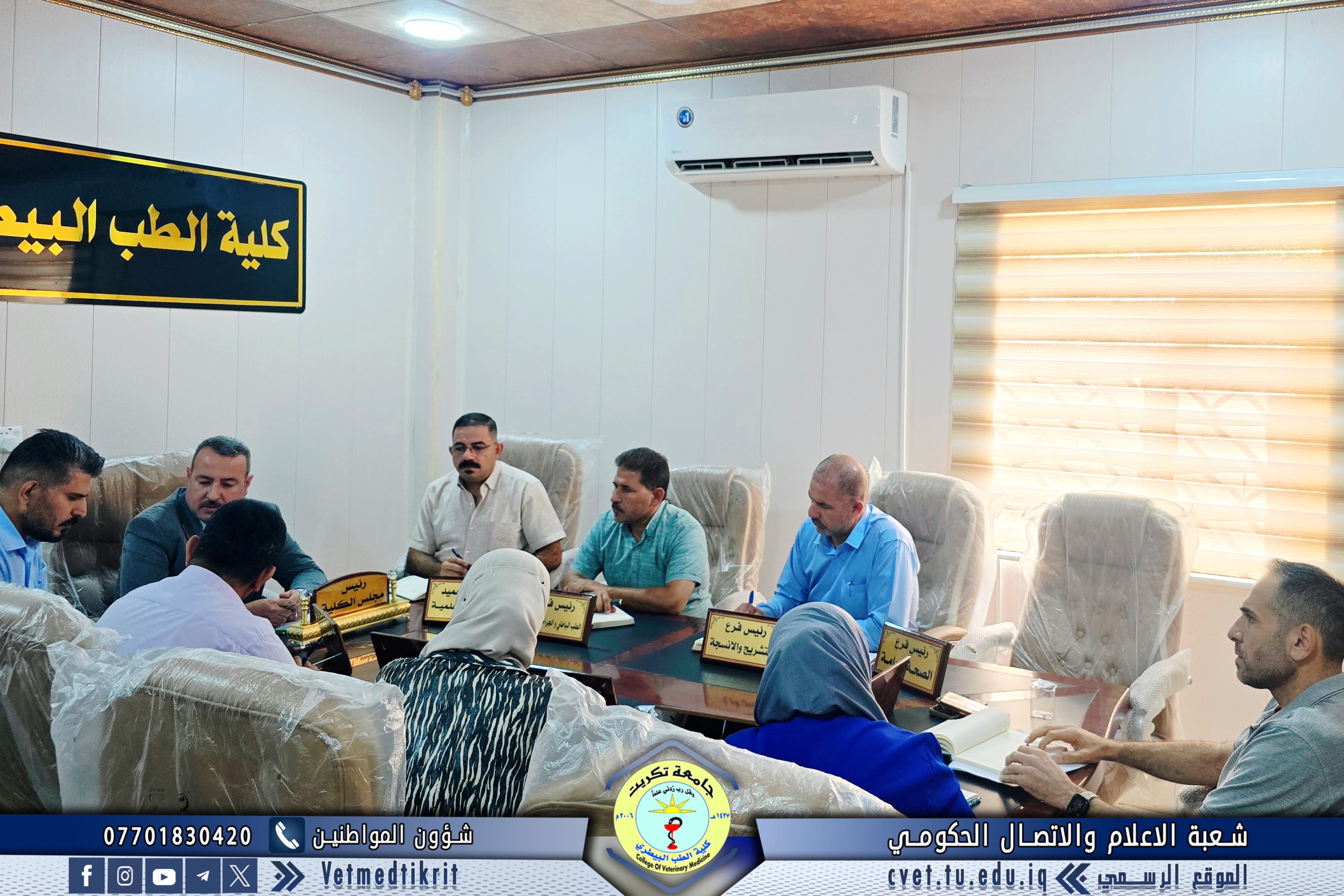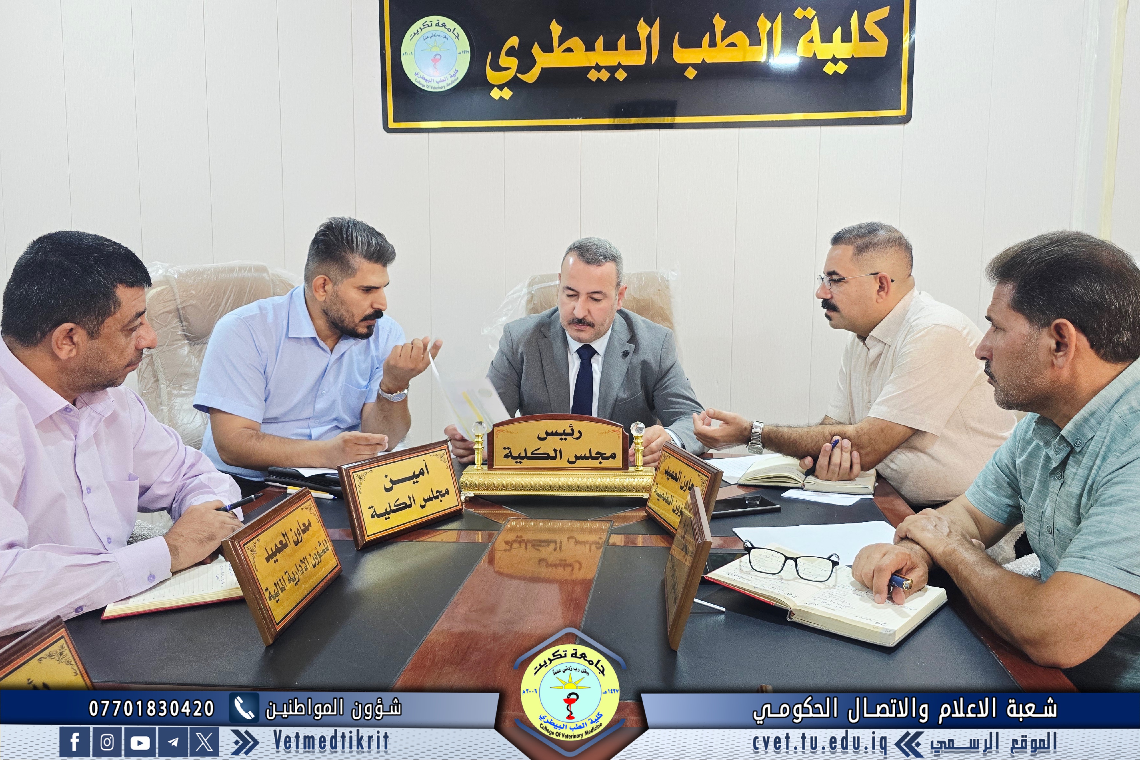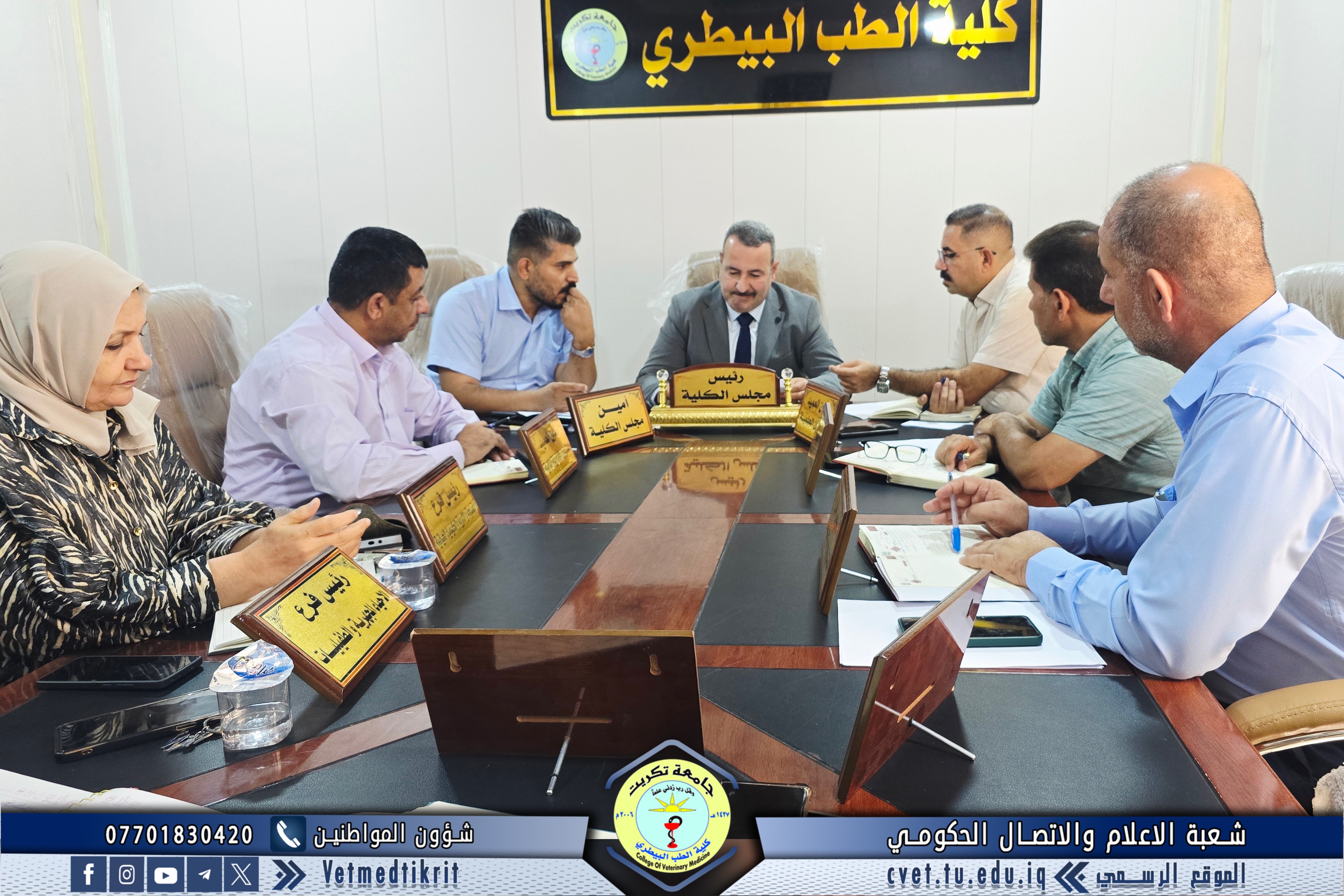 عقد مجلس كلية الطب البيطري في جامعة تكريت جلسته الثانية للعام الدراسي 2025-2026 برئاسة الأستاذ الدكتور بشار صادق نومي عميد الكلية، وبحضور السادة المعاونين والسيدات والسادة رؤساء الفروع العلمية. في مستهل الاجتماع رحب السيد العميد بالحضور متمنياً لهم عاماً دراسياً مليئا بالتوفيق والنجاح، ثم ناقش المجلس عدداً من القضايا المدرجة على جدول الأعمال، أبرزها موضوع بداية دوام طلبة الكلية، وتهيئة الكلية لاستقبالهم، حيث اكد الحاضرون ان الكلية على اتم الجاهزية لاستقبال الطلبة وبدء عام دراسي مثمر وملئ بالانجازات، كما ناقش المجلس عددا من الامور الاخرى التي تخص الكادر التدريسي والاداري بشكل عام. ويأتي انعقاد المجلس في إطار سعي الكلية لمواصلة مسيرتها العلمية والأكاديمية بخطوات مدروسة نحو التميز وضمان الجودة في الأداء التعليمي.