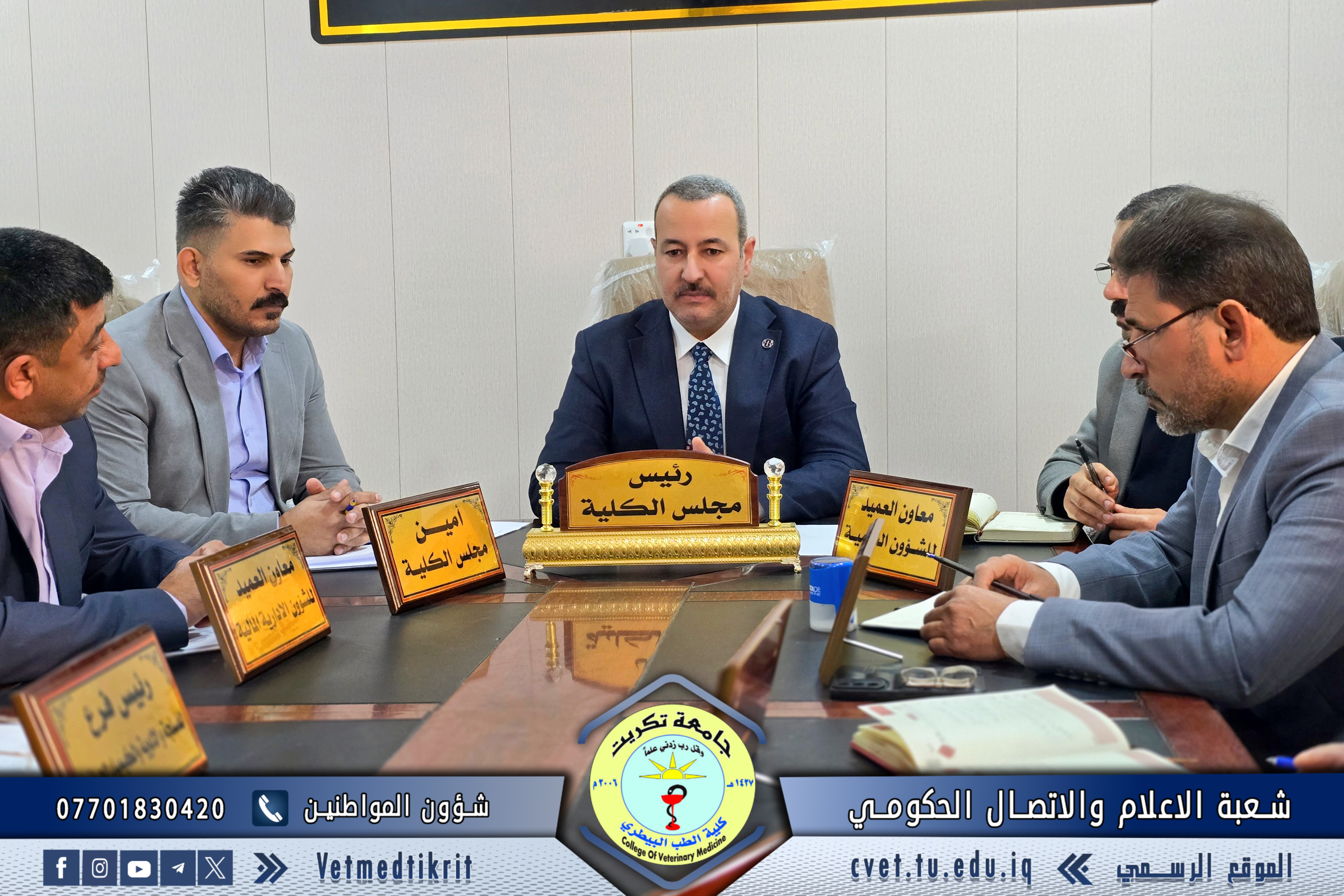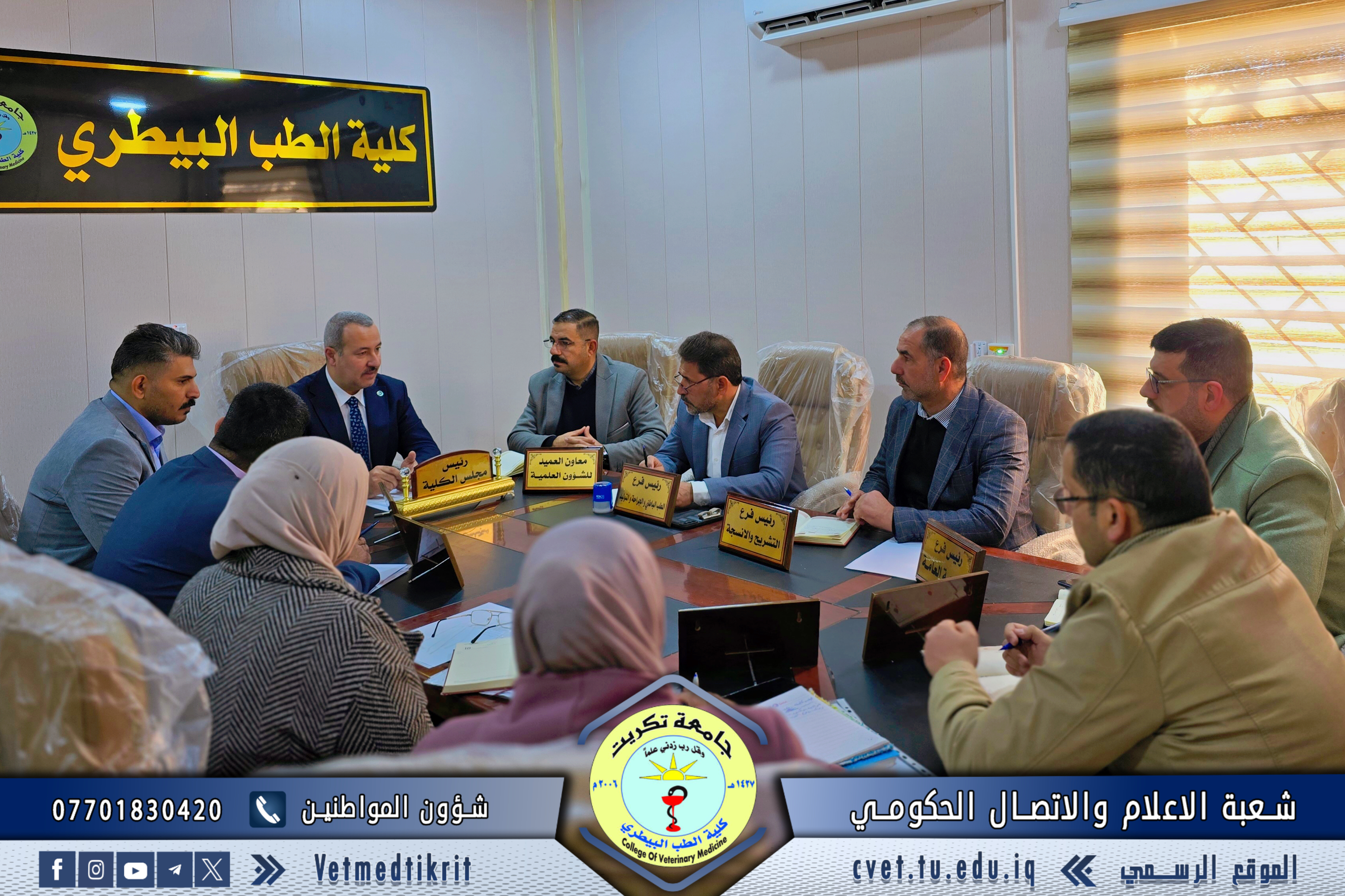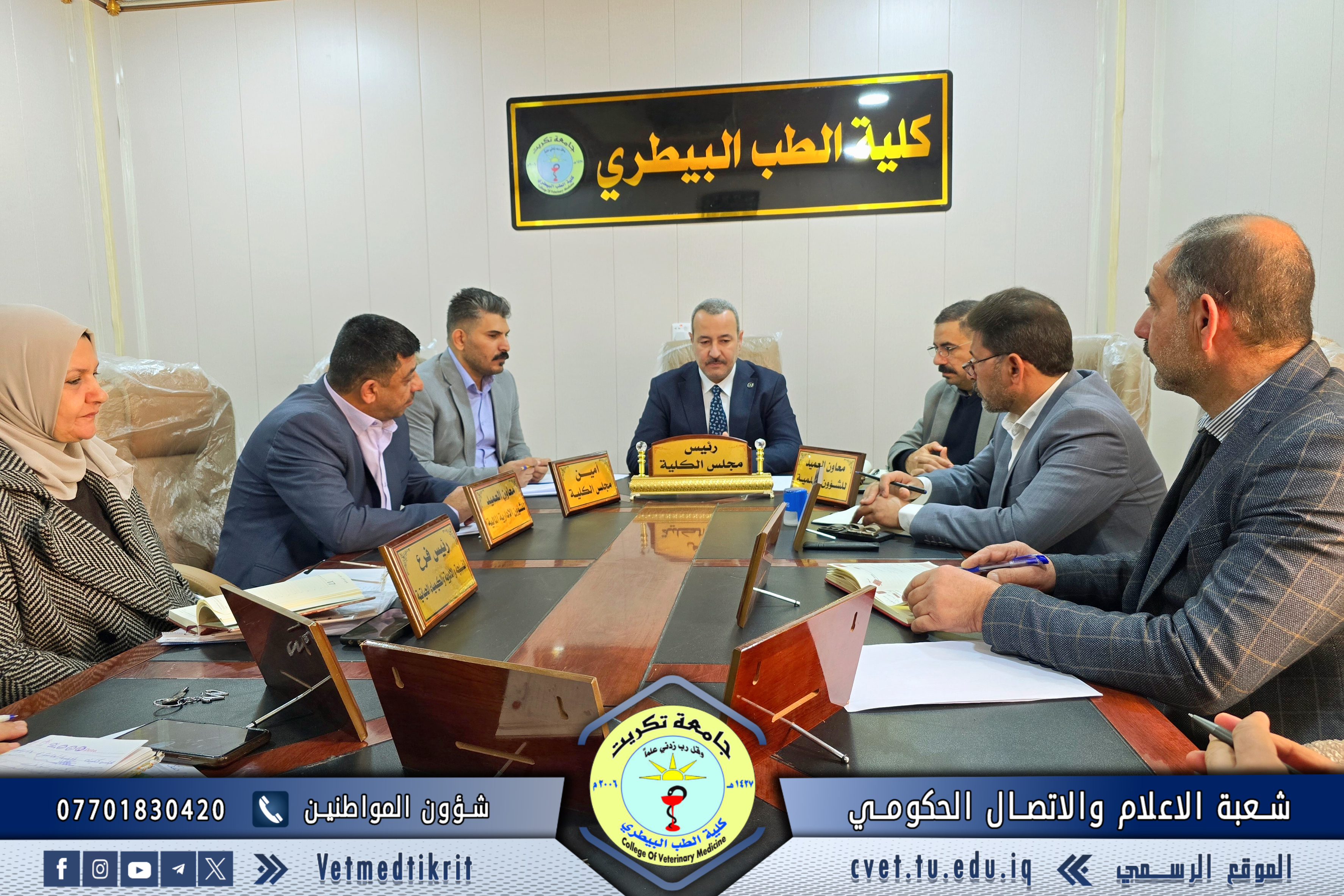 برئاسة الاستاذ الدكتور بشار صادق نومي عميد لية الطب البيطري بجامعة تكريت، عقد مجلس الكلية جلسته الاعتيادية ليوم الاثنين الموافق 24/2/2025 بحضور السادة معاوني العميد للشؤون العلمية والادارية والسيدات والسادة رؤساء الفروع العلمية والسيد امين المجلس والسيد رئيس اللجنة الامتحانية للمرحلة الاولى، تم خلال الاجتماع مناقشة عدد من الامور من اهمها الاستعدادات لاستقبال اللجنة الوزارية المكلفة بتقييم الكلية للحصول على الاعتمادية لمؤسسات التعليم البيطري. حيث اكد رؤساء الفروع جاهزية الكلية بكافة قاعاتها ومختبراتها لاستقبال اللجنة مؤكدين على التميز الذي وصلت اليه الكلية علميا واكاديميا مما يؤهلها لنيل الاعتمادية مشيدين بجهود عمادة الكلية في الارتقاء الدائم بمستوى الكلية. كما تم خلال الجلسة مناقشة موضوع امتحانات نهاية الفصل الدراسي الاول للمرحلة الاولى بالاضافة الى العديد من الامور التي تخص الكلية والطلبة بشكل عام.
