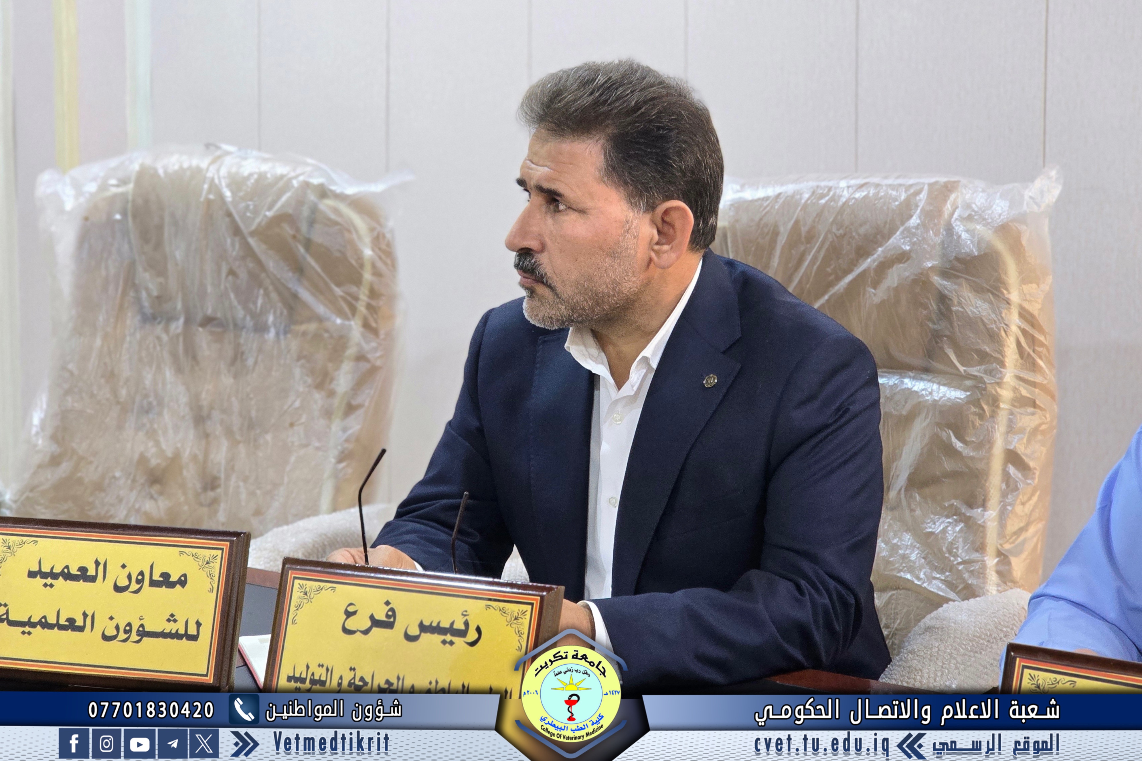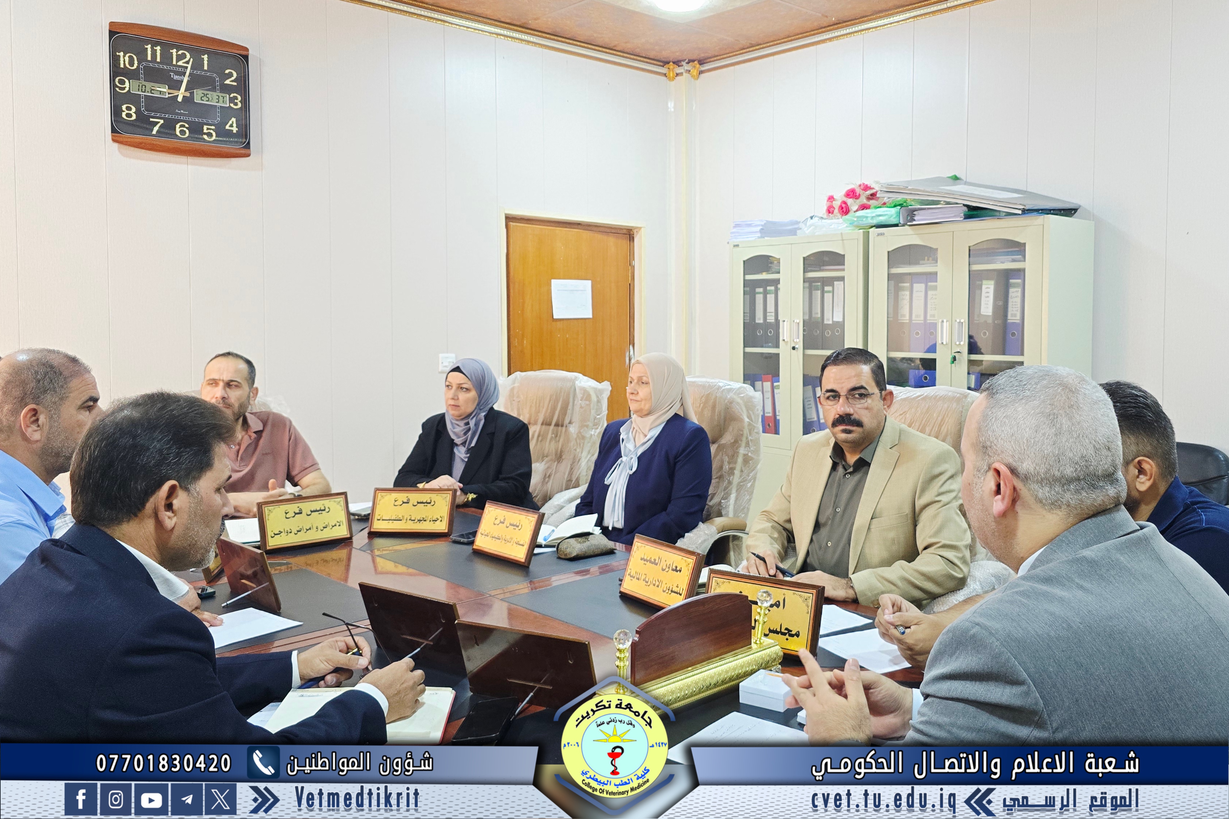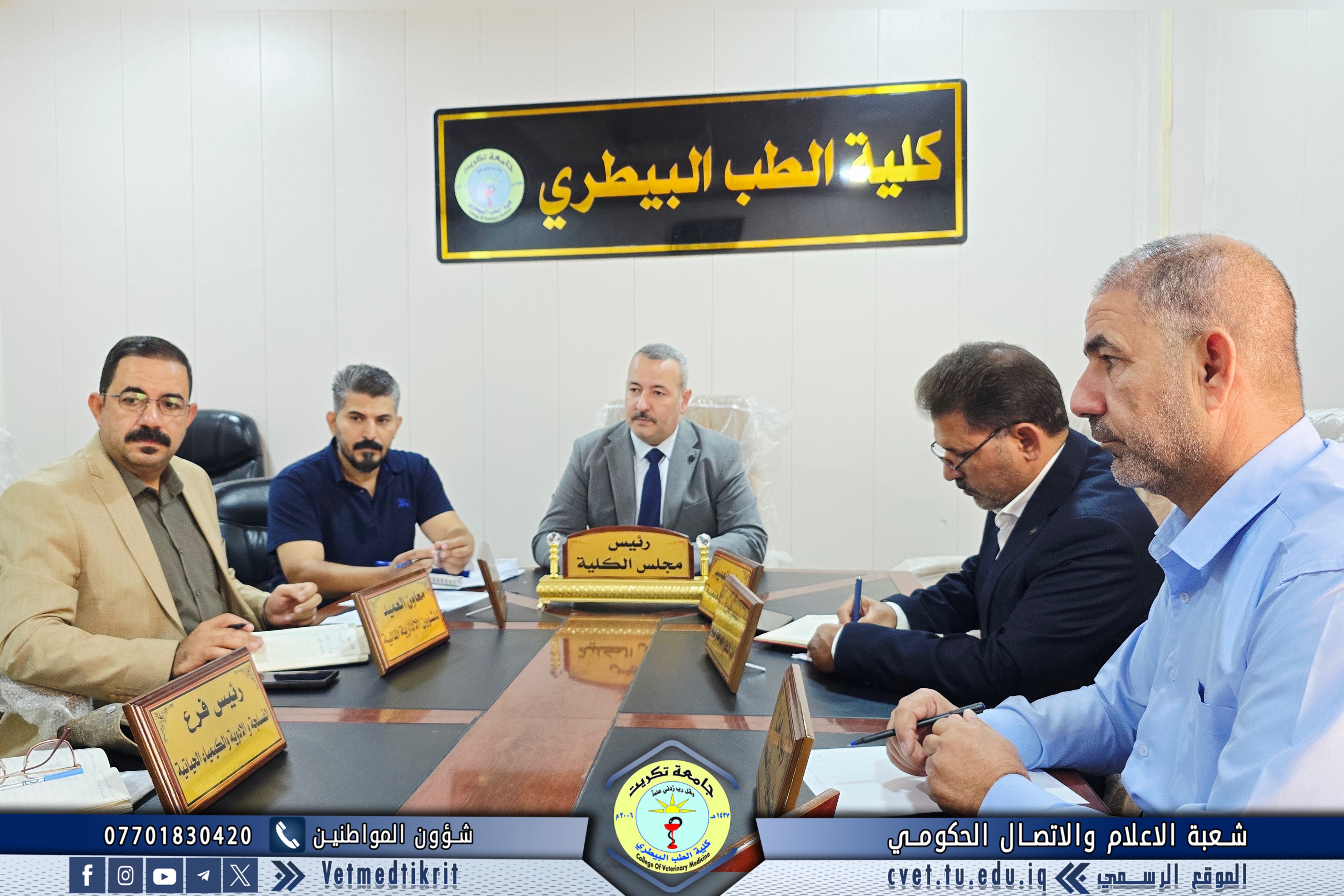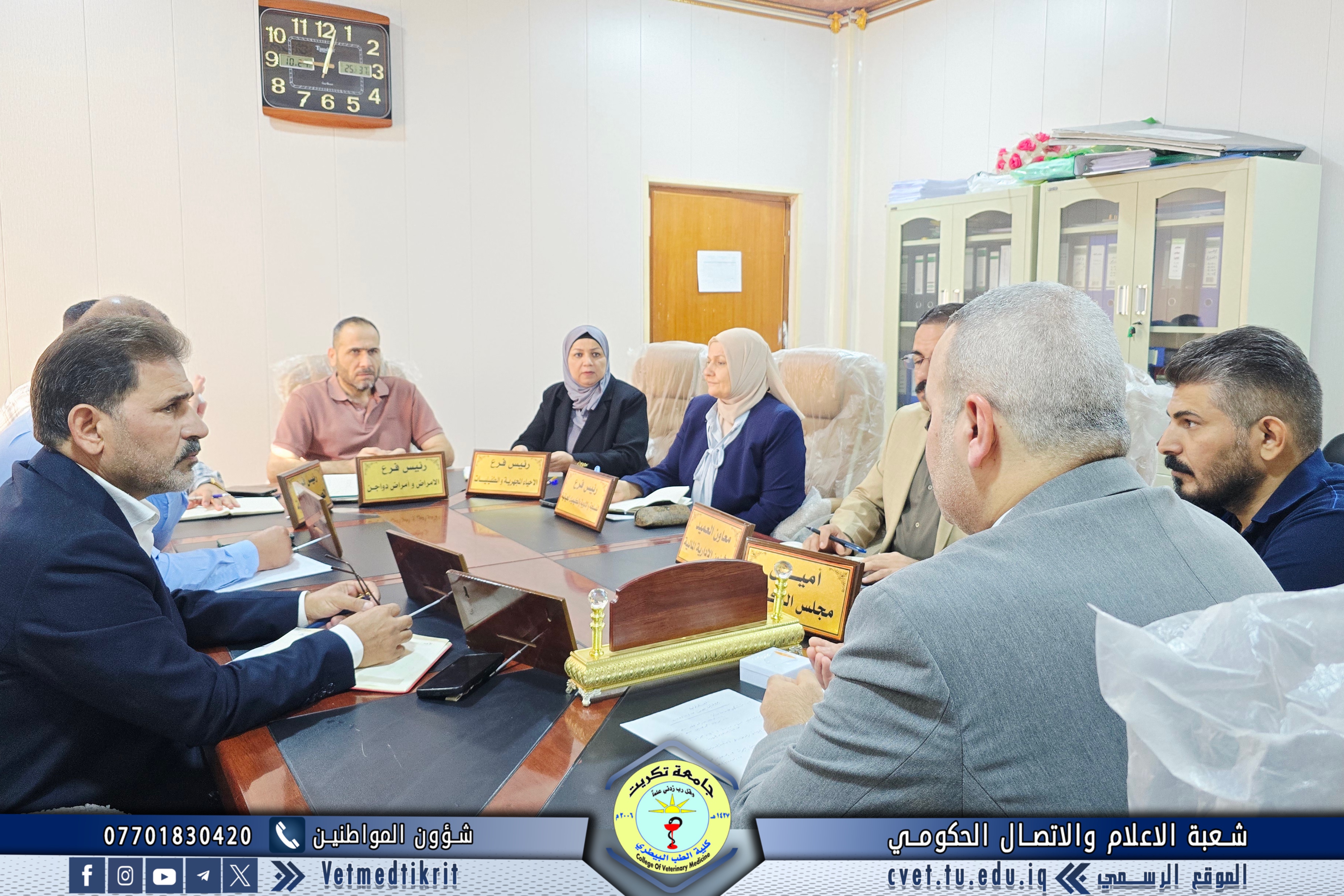 عقد مجلس كلية الطب البيطري في جامعة تكريت جلسته الرابعة للعام الدراسي 2025-2026 برئاسة الأستاذ الدكتور بشار صادق نومي عميد الكلية، وبحضور السادة المعاونين والسيدات والسادة رؤساء الفروع العلمية. في مستهل الاجتماع رحب السيد العميد بالحضور متمنياً لهم التوفيق والنجاح، ثم ناقش المجلس عدداً من القضايا المدرجة على جدول الأعمال، أبرزها استعدادات الكلية لاستقبال الطلبة المقبولين للعام الدراسي الحالي ،ومنح شهادة الماجستير لعدد من الطلبة، وتحديد مناقشة بحوث التخرج لطلبة المرحلة الخامسة، وعدد من الامور الاخرى التي تهم الكلية بشكل عام. ويأتي انعقاد المجلس في إطار سعي الكلية لمواصلة مسيرتها العلمية والأكاديمية بخطوات مدروسة نحو التميز وضمان الجودة في الأداء التعليمي