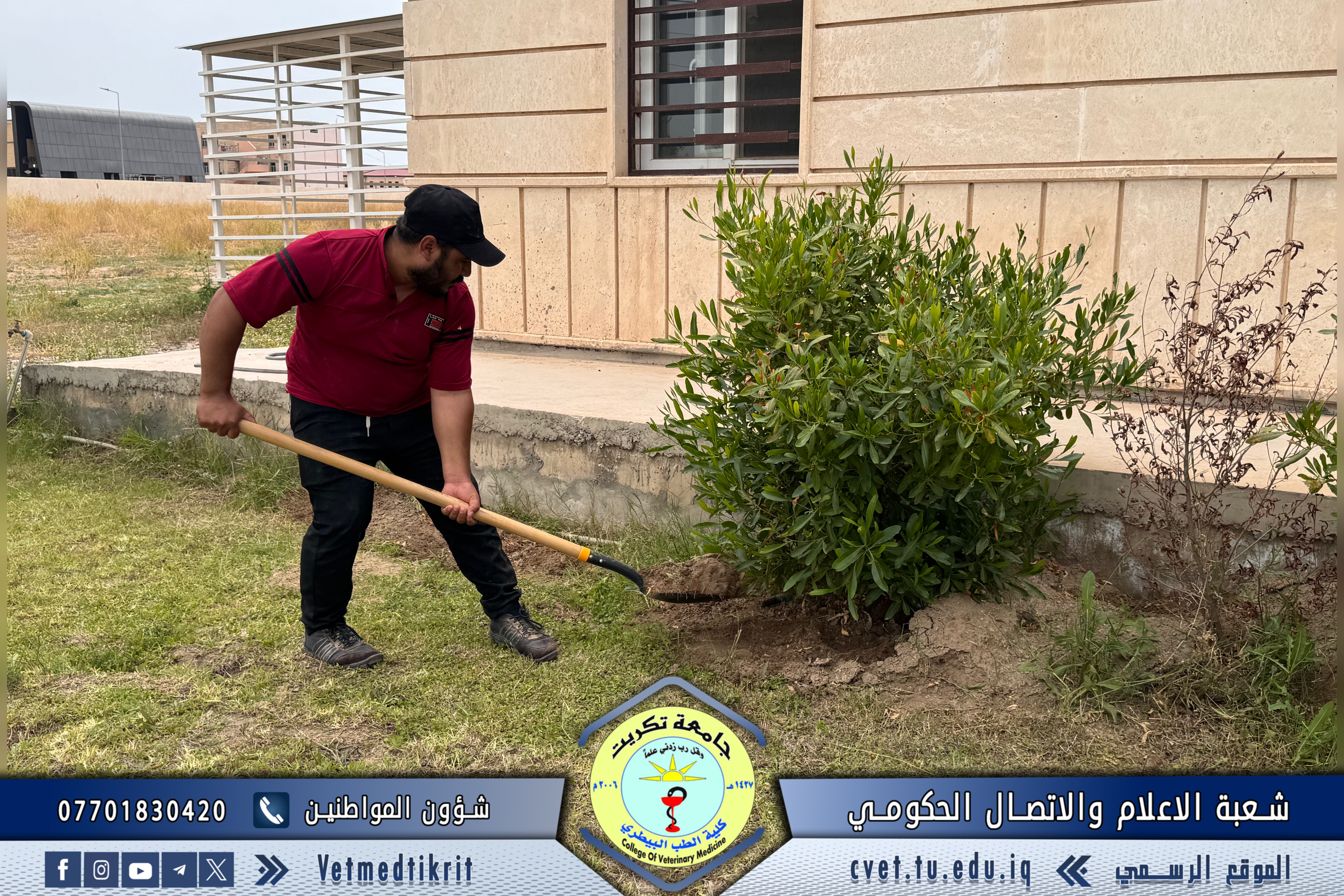 برعاية الأستاذ الدكتور بشار صادق نومي، عميد كلية الطب البيطري في جامعة تكريت، وبإشراف الأستاذ المساعد الدكتور أسامة حميد شهاب، معاون العميد للشؤون الإدارية، نفذت شعبة الحدائق والخدمات في الكلية حملة شاملة لإعادة تأهيل وصيانة حدائق البيت الحيواني ووحدة العيادة الخارجية التابعين للكلية.