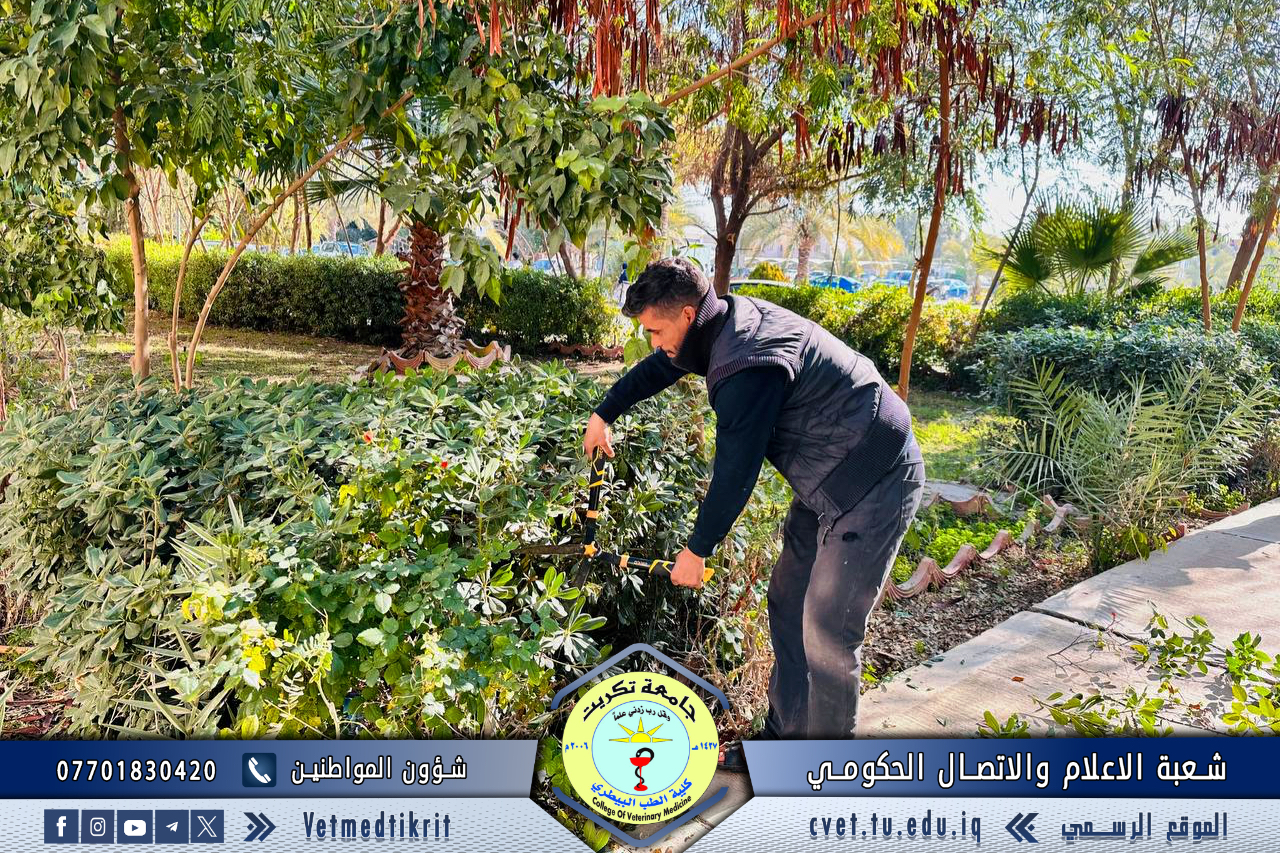 نفذت شعبة الخدمات في كلية الطب البيطري حملة لقص الأشجار وتنظيف الحدائق ضمن جهودها المستمرة للحفاظ على جمالية البيئة الجامعية. شملت الحملة تقليم الأشجار وإزالة الأعشاب الزائدة بهدف تحسين المظهر العام وتوفير بيئة نظيفة ومريحة للطلبة والكادر التدريسي.