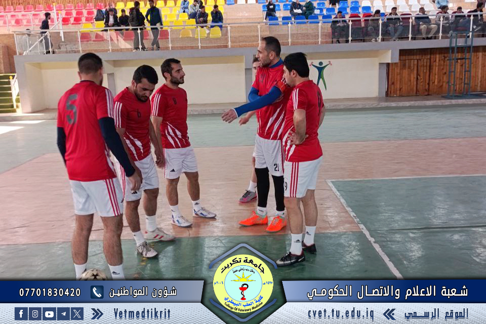 تحت أضواء الصالة المغلقة للألعاب الرياضية في مبنى كلية التربية الرياضية بجامعة تكريت، التقى اليوم مجموعة من أساتذة كلية الطب البيطري بنظرائهم من كلية القانون في مباراة استثنائية لكرة الصالات. وتجلت الروح الرياضية في أبهى صورها عندما خلع الأساتذة عباءة المحاضرات الأكاديمية ليرتدوا الزي الرياضي، في مشهد جمع بين الأداء الرياضي المتميز والزمالة المهنية. وشكلت المباراة، التي تأتي ضمن منافسات البطولة الداخلية لأساتذة الجامعة، حلقة جديدة في سلسلة النشاطات الرياضية التي تعزز أواصر العلاقات بين الكوادر التدريسية في مختلف كليات الجامعة.