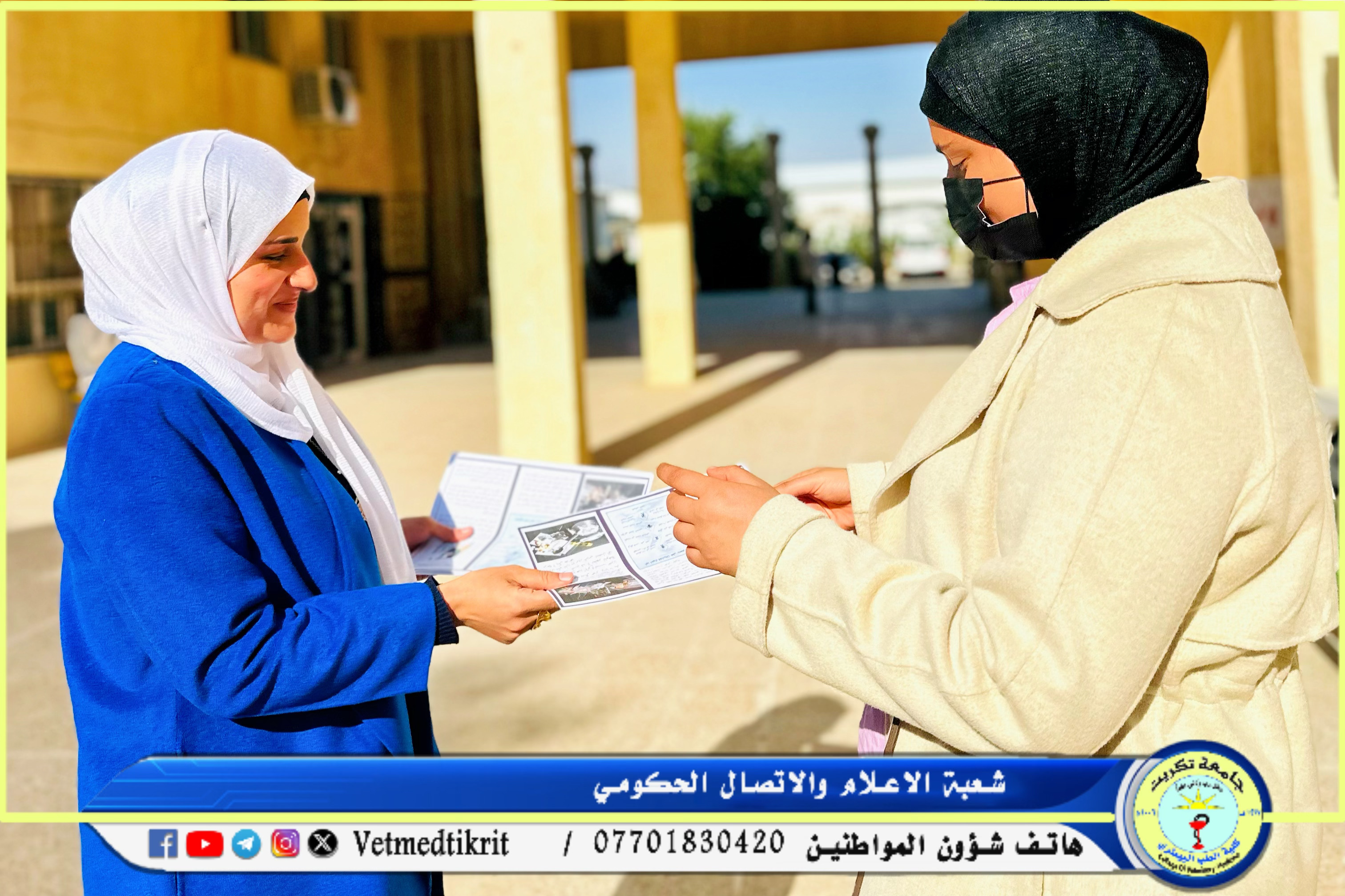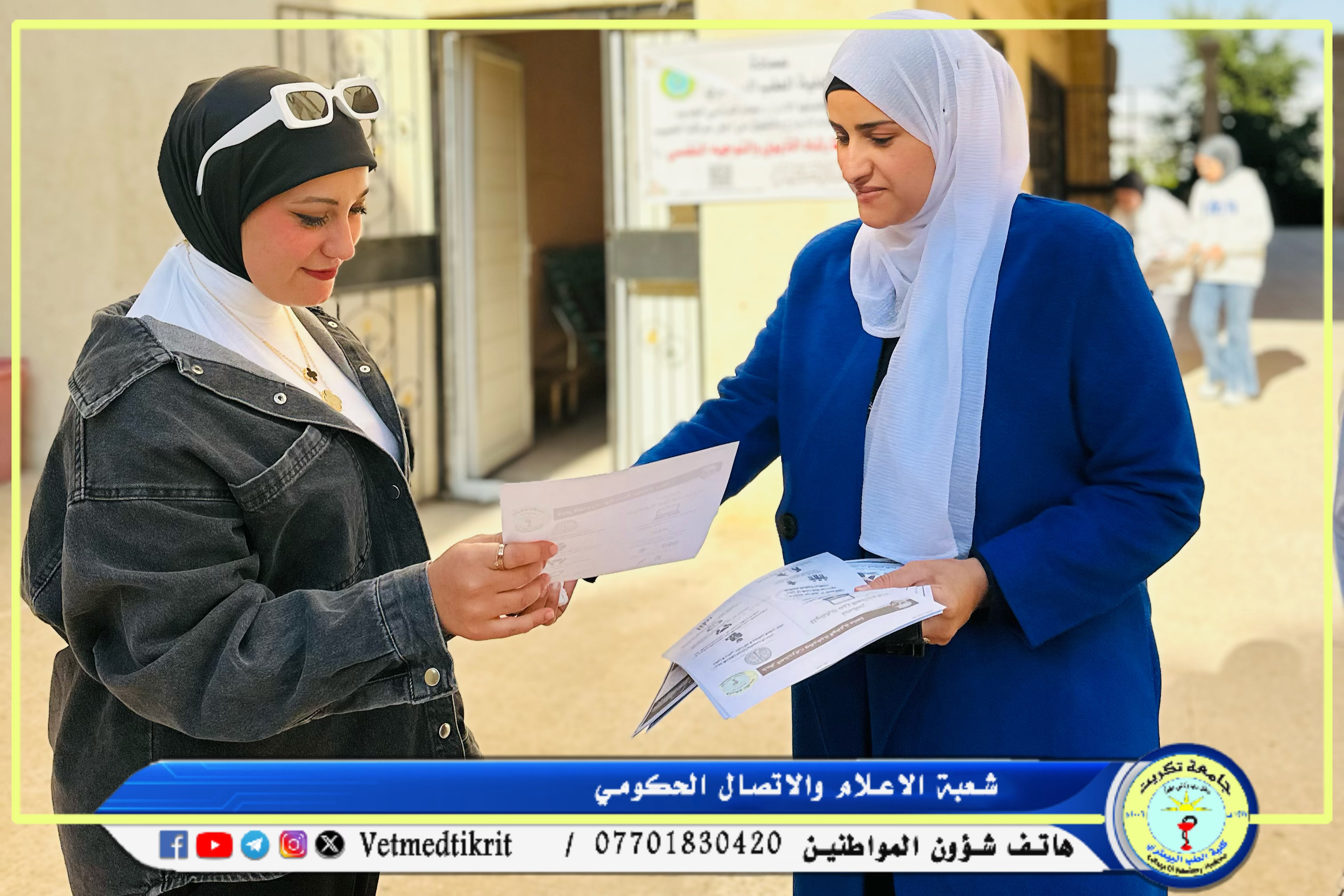 نفذت شعبة الإرشاد النفسي والتوجيه التربوي بالتعاون مع شعبة الإعلام والاتصال الحكومي في كلية الطب البيطري بجامعة تكريت حملة توعوية شاملة حول مخاطر المخدرات. هدفت الحملة الى نشر الوعي بين طلاب كلية الطب البيطري حول خطورة المخدرات، التعريف بالآثار الصحية والنفسية والاجتماعية للمخدرات وتقديم إرشادات وقائية للطلاب. حيث تم تشكيل فريق عمل مشترك من شعبتي الإرشاد النفسي والإعلام لإعداد محتوى علمي دقيق للبروشرات، تصميم بروشرات جذابة وملونة وطباعة البروشرات بجودة عالية. احتوت البروشورات على عدة نقاط اهمها التعريف العلمي بأنواع المخدرات، الآثار الصحية التفصيلية للمخدرات، التأثيرات النفسية والاجتماعية، طرق الوقاية والعلاج، شهادات وقصص واقعية و أرقام التواصل مع الجهات المختصة. تم توزيع البروشرات في القاعات الدراسية ونشرها في لوحات الإعلانات بالكلية وتوزيعها بشكل مباشر على الطلاب خلال فعاليات الكلية والنشر الإلكتروني عبر منصات التواصل الجامعية مما نتج عنه زيادة الوعي لدى الطلاب، نشر ثقافة الوقاية من المخدرات وتعزيز دور الجامعة في المسؤولية المجتمعية.​