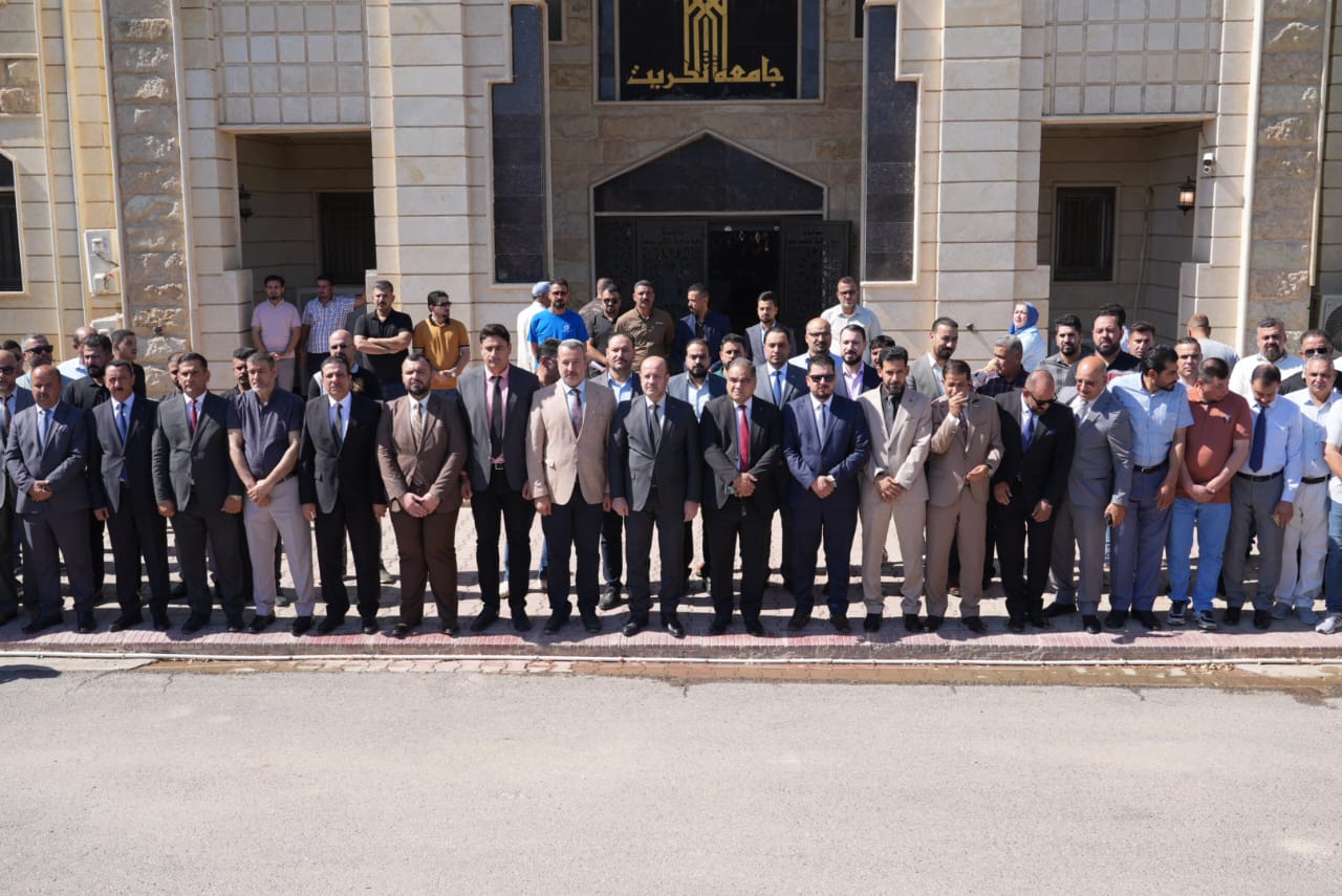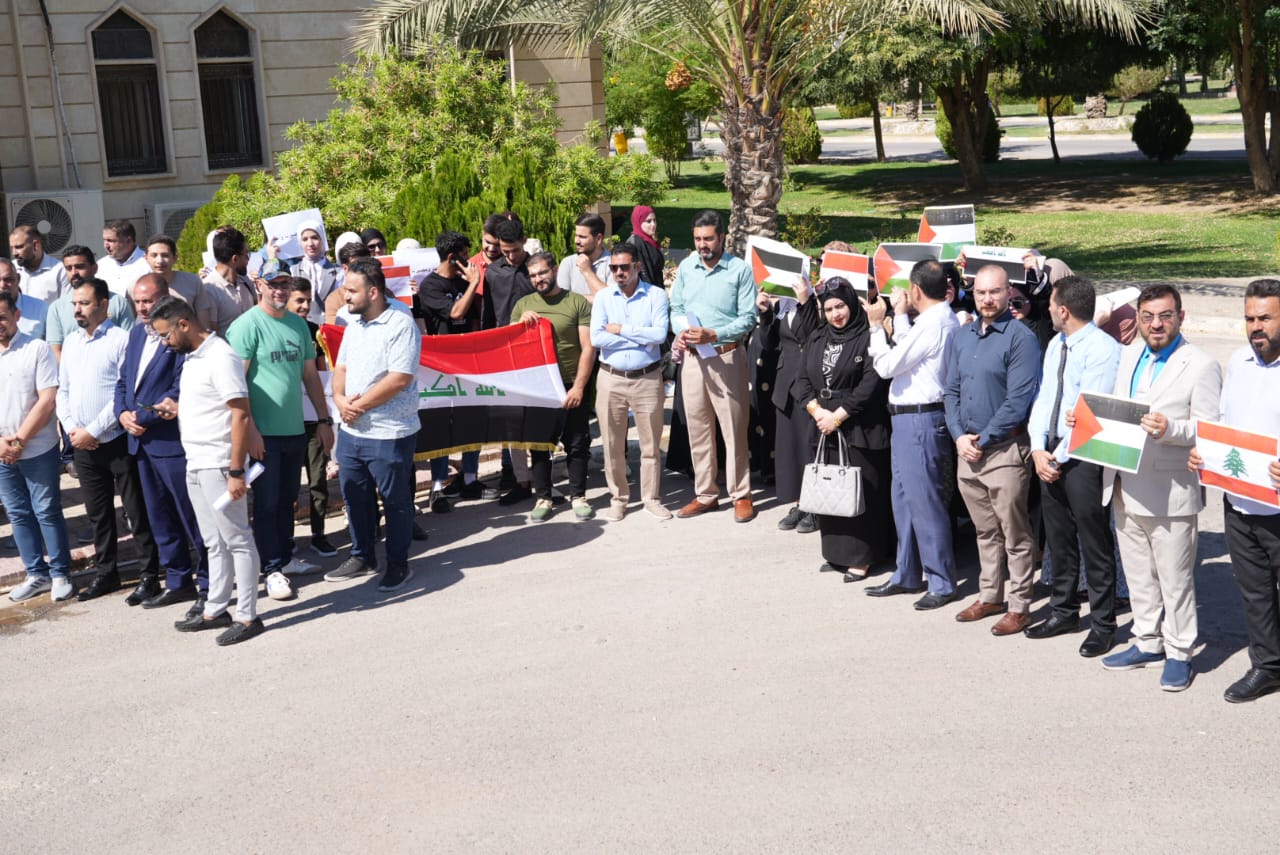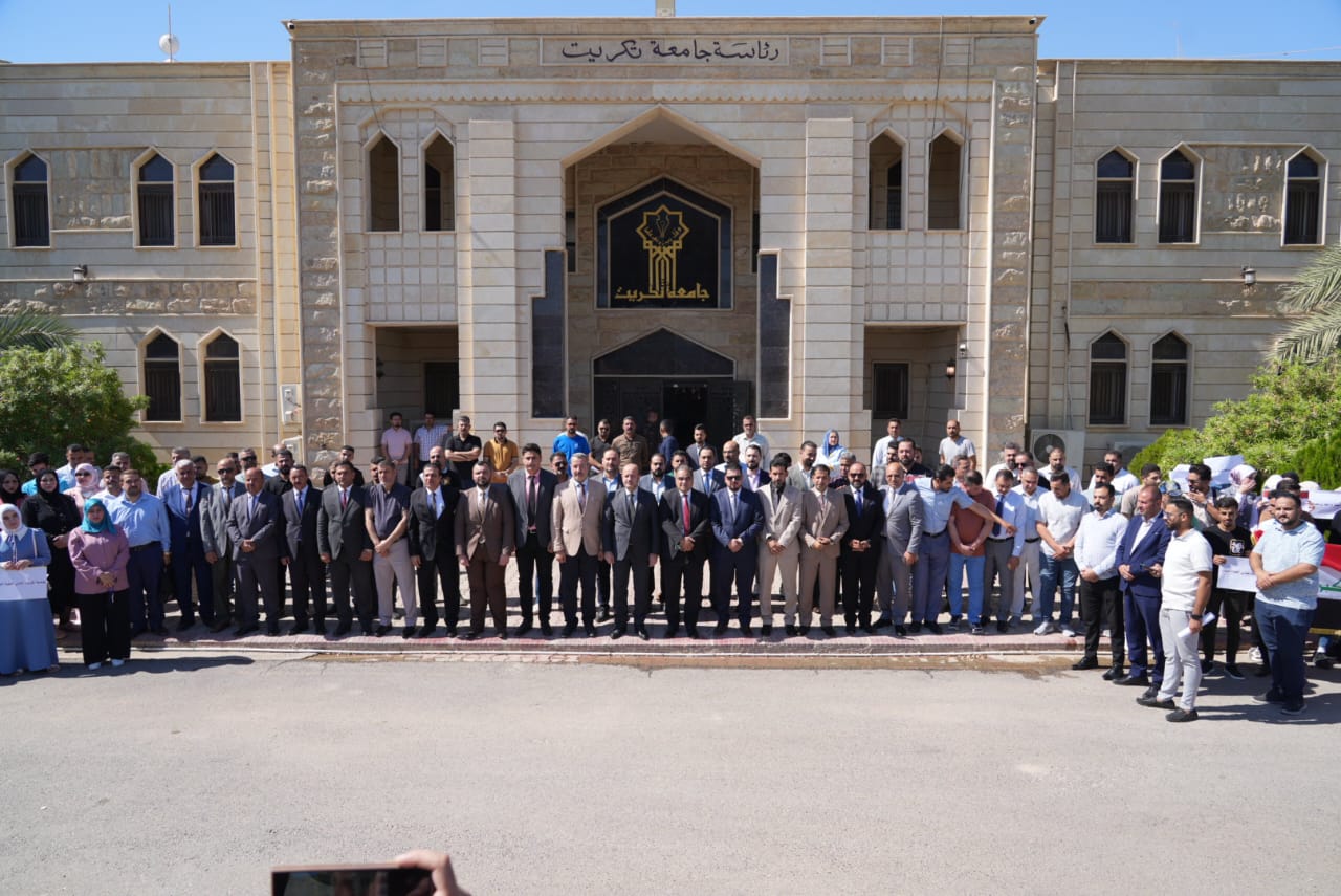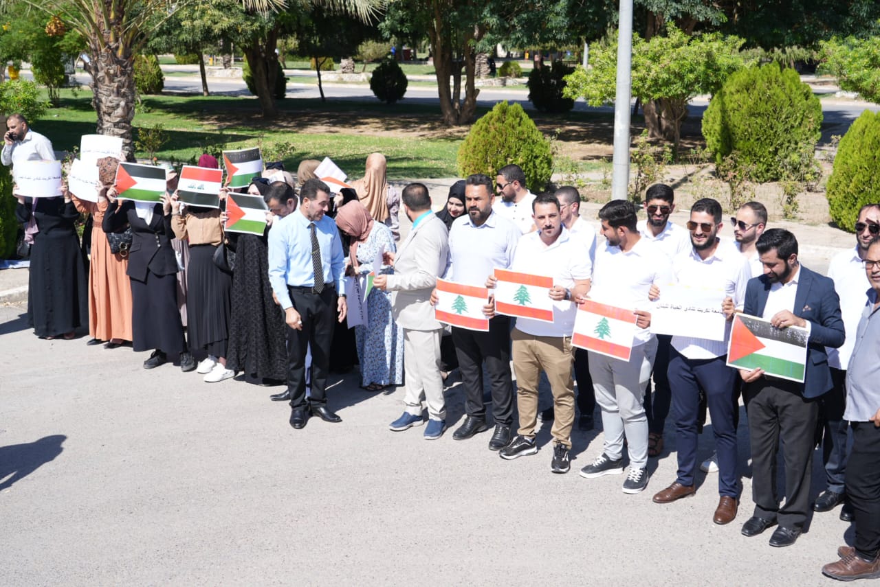 تنفيذا لتوجيهات وزارة التعليم العالي والبحث العلمي وبحضور الاستاذ الدكتور وعد محمود رؤوف رئيس جامعة تكريت نظمت جامعة تكريت وقفة استنكارية واحتجاجية ضد العدوان الهمجي الذي يتعرض له الشعبين الفلسطيني واللبناني الشقيقيين على يد قوى الاحتلال والظلام. شارك في الوقفة الاستاذ الدكتور بشار صادق نومي عميد كلية الطب البيطري بالاضافة الى عدد من طلبة ومنتسبي الكلية. وشهدت الوقفة حمل الاعلام العراقية والعلمين الفلسطيني واللبناني وشعارات التنديد والاستنكار لجرائم العدو الذي زاد في طغيانه وهمجيته وتجاهله لكافة الاعراف والمواثيق الدولية والانسانية واقترافه الجرائم ضد العرب والمسلمين، هذا ودان الحاضرون الانتهاكات الكبيرة لحقوق الإنسان التي يتعرض لها الشعبين الشقيقين كما وتمت الدعوة الى ضرورة وقوف المجتمع الدولي والمنظمات الحقوقية في العالم لاخذ دورها لصد مثل هذه الاعتداءات الغاشمة.