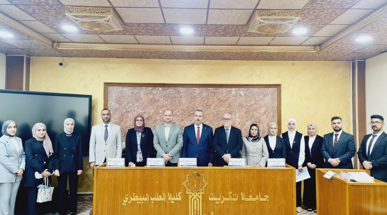 بحضور الاستاذ الدكتور وعد محمود رؤوف رئيس جامعة تكريت والاستاذ الدكتور حسن حسين ابراهيم مساعد رئيس الجامعة للشؤون العلمية استضافت كلية الطب البيطري مؤتمر بحوث التخرج لكليات المجموعة الطبية والذي يناقش بحوث التخرج الفائزة بالمرتبة الاولى في كليات (الطب، طب الاسنان، الصيدلة، التمريض، والطب البيطري) من قبل لجنة المناقشة المؤلفة من كل من: