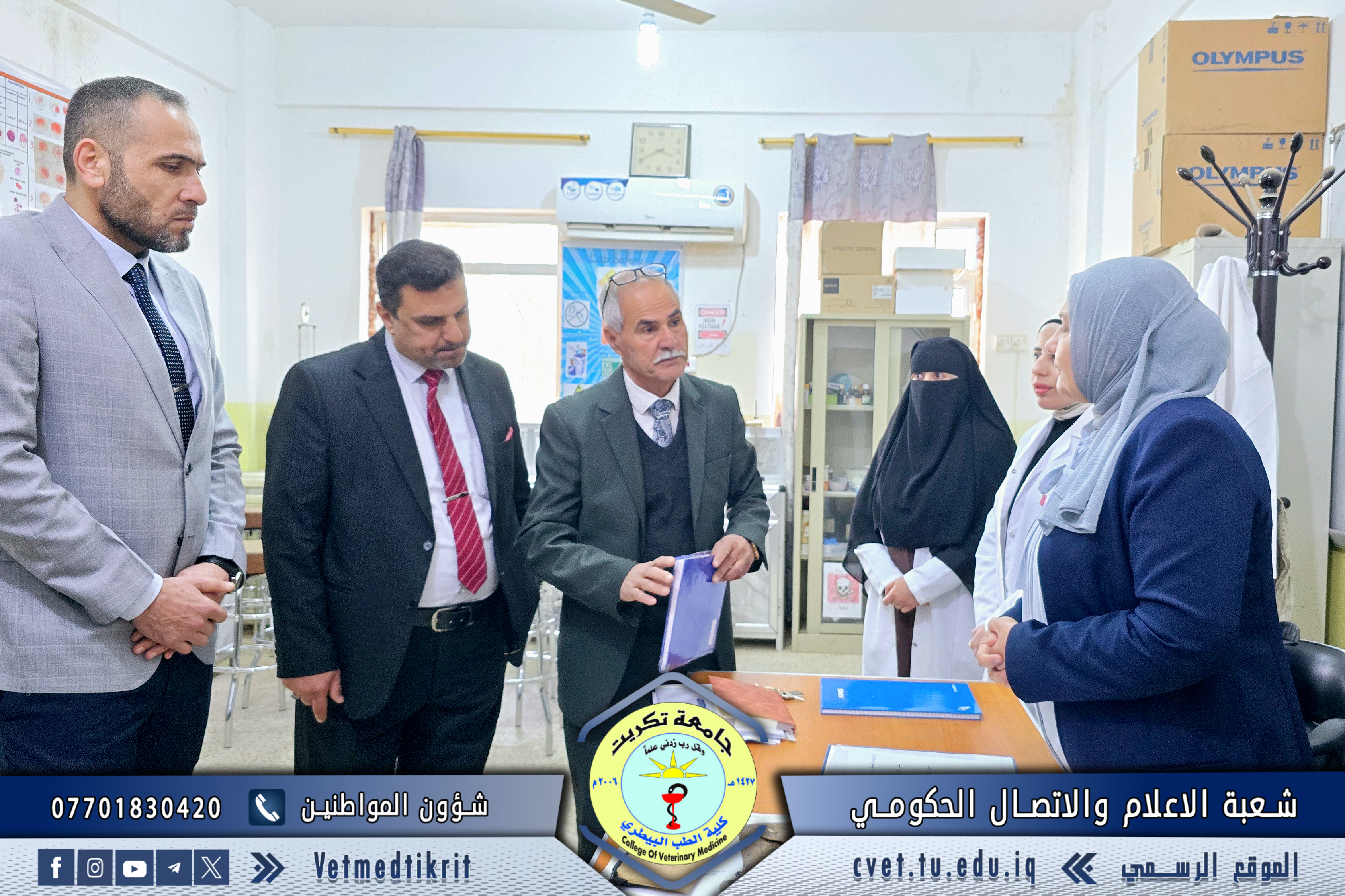 أجرى فريق المُقيم الوطني الخاص باعتماد برامج كليات الطب البيطري في العراق جولة تفقدية داخل أروقة كلية الطب البيطري بجامعة تكريت، للاطلاع على المرافق الأكاديمية والتدريبية ومدى تلبيتها لمتطلبات الجودة والاعتماد.