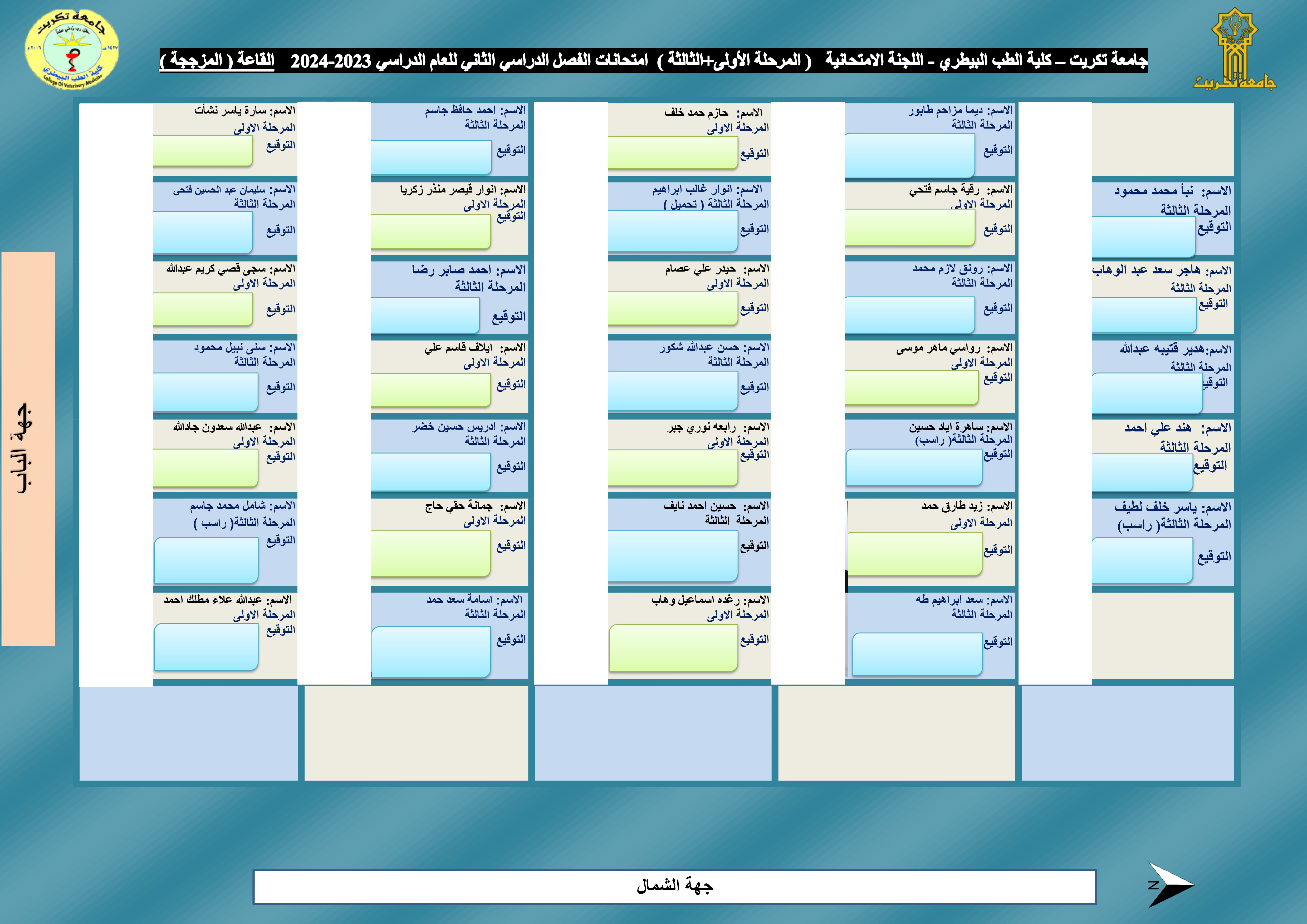 خارطة جلوس المرحلة الاولى + المرحلة الثالثة - قاعة رقم (1) - بناية الكلية