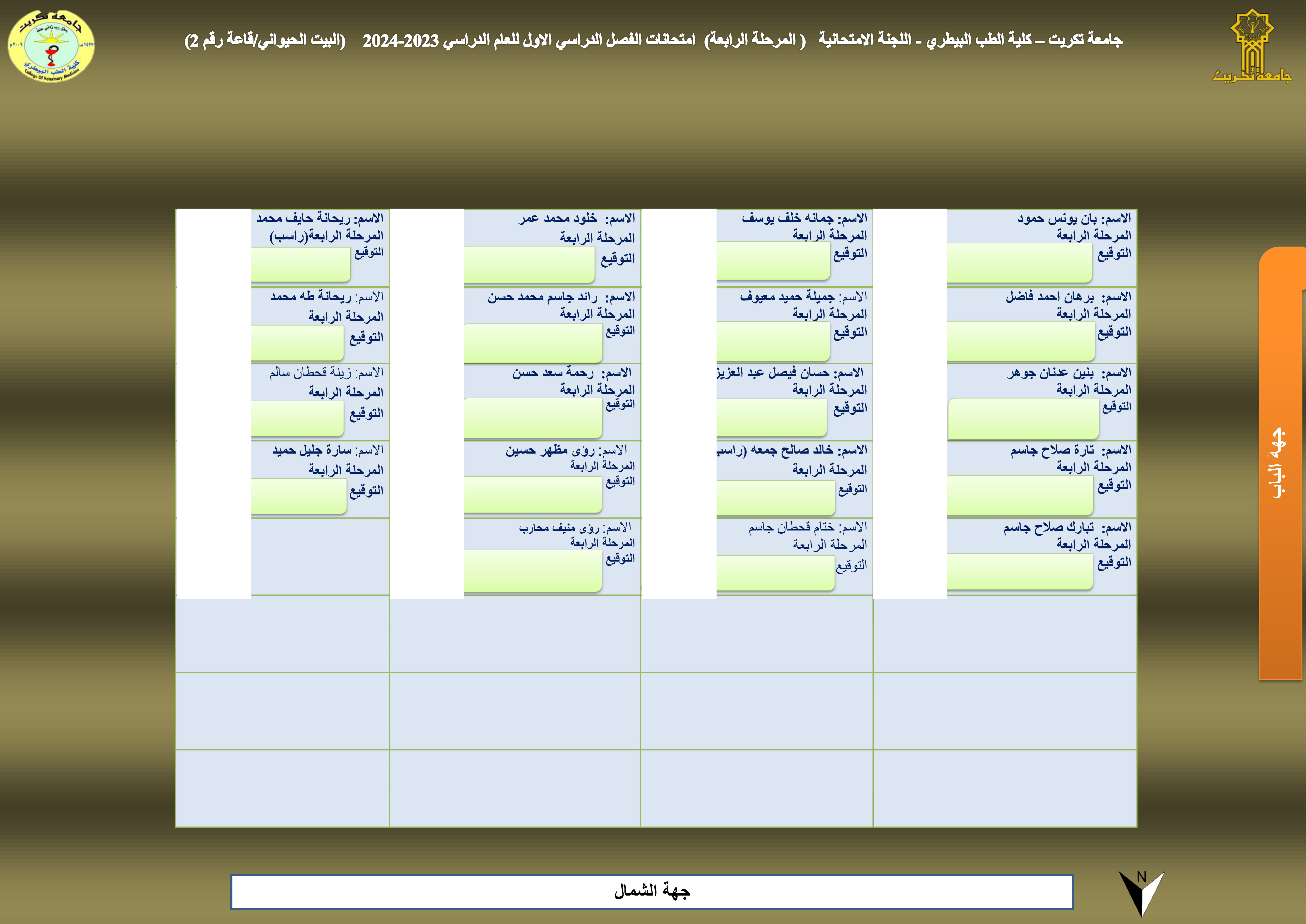 خارطة جلوس المرحلة الرابعة - قاعة رقم (2) - البيت الحيواني