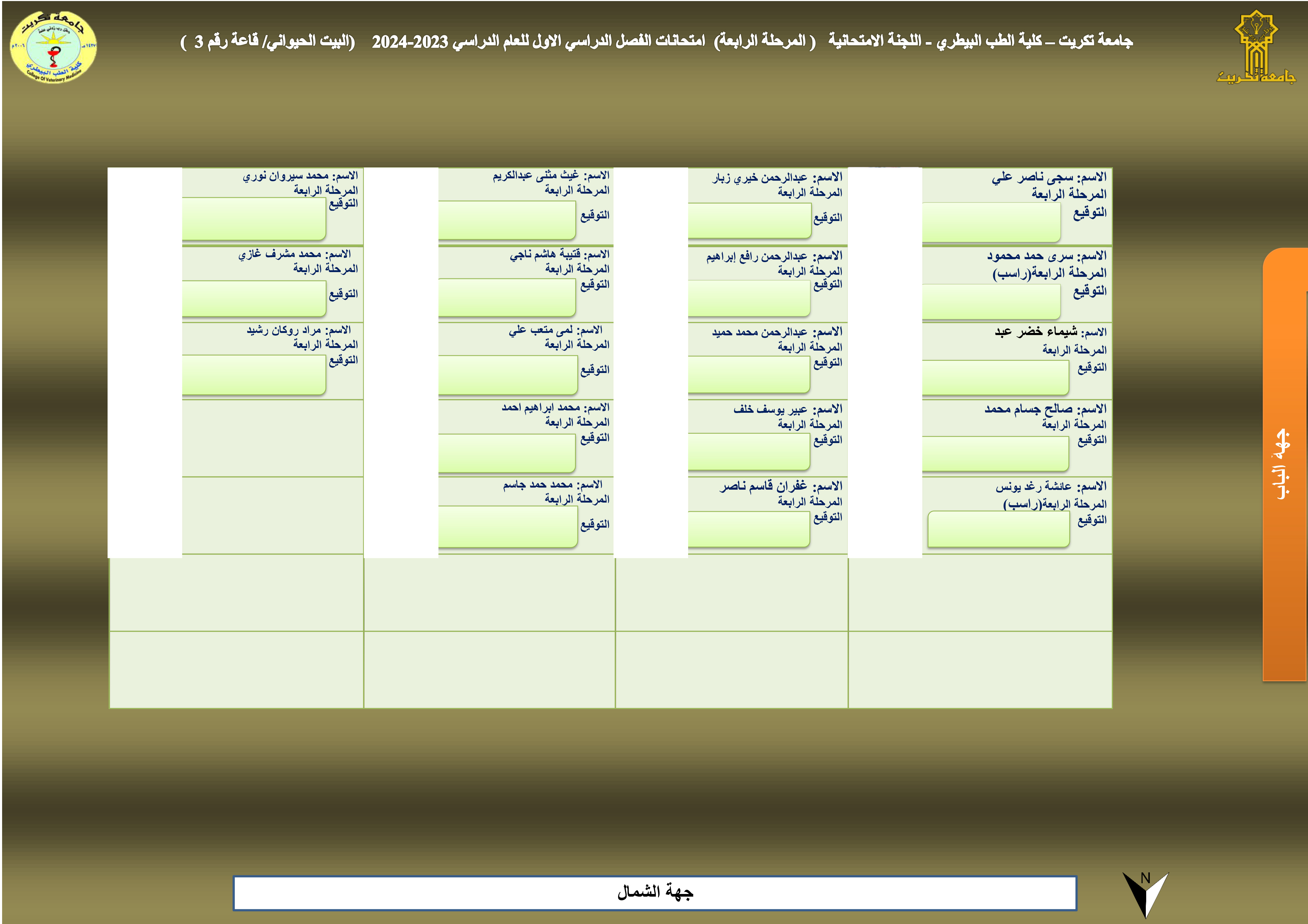 خارطة جلوس المرحلة الرابعة - قاعة رقم (3) - البيت الحيواني